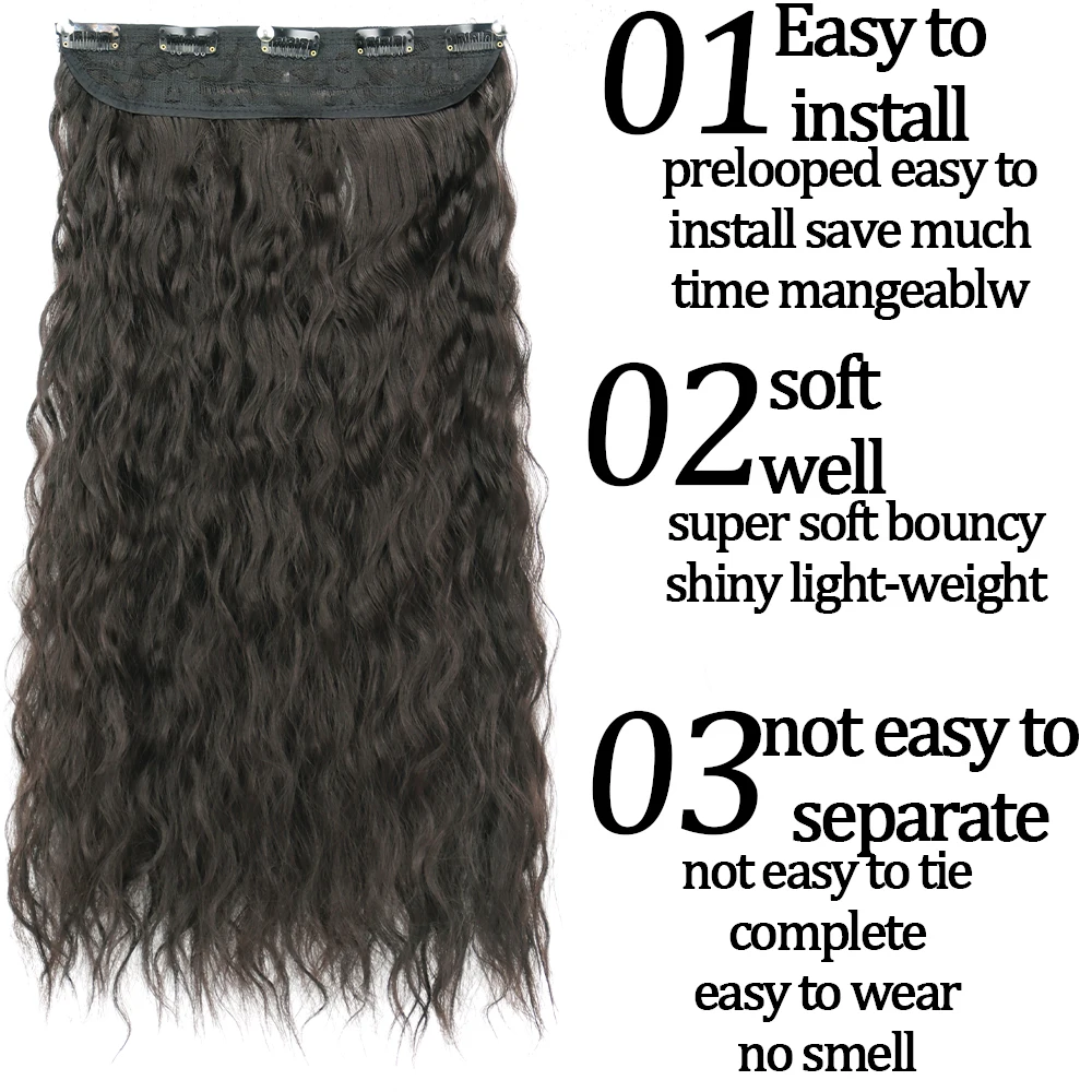Length: Approx 22"; Package included: 1 piece of wavy hair extensions (5 clips attached per piece)