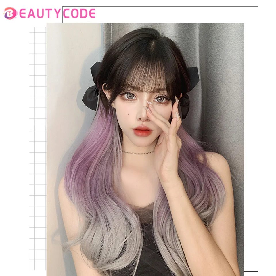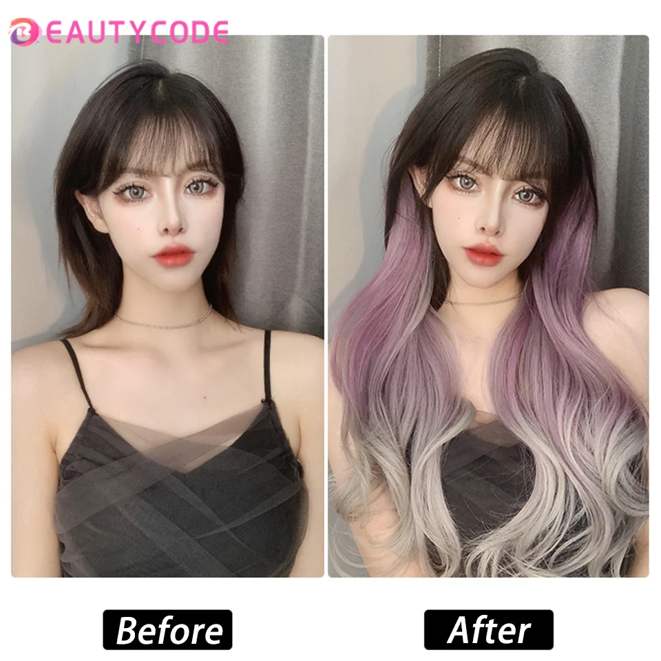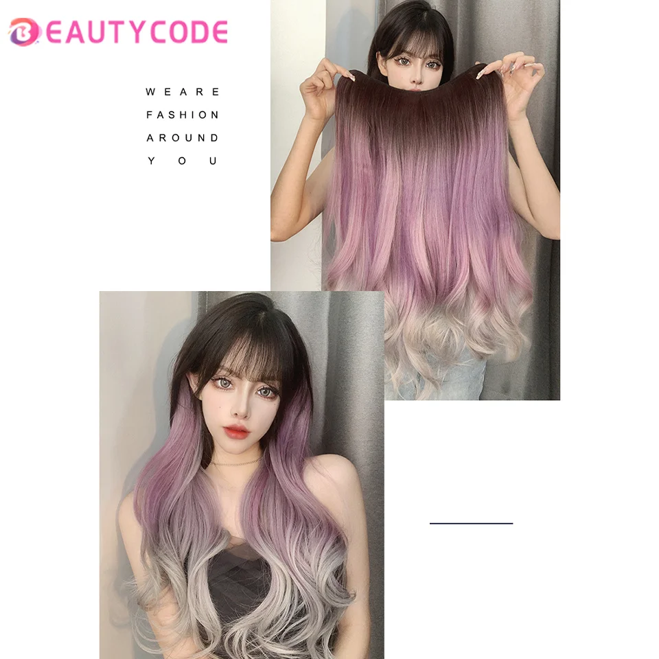 BEAUTYCODE Synthetic Clips In Hair Long Wave Clip In Hair Extension Synthetic Wig Hair Extensions Ombre Purple Hairpieces