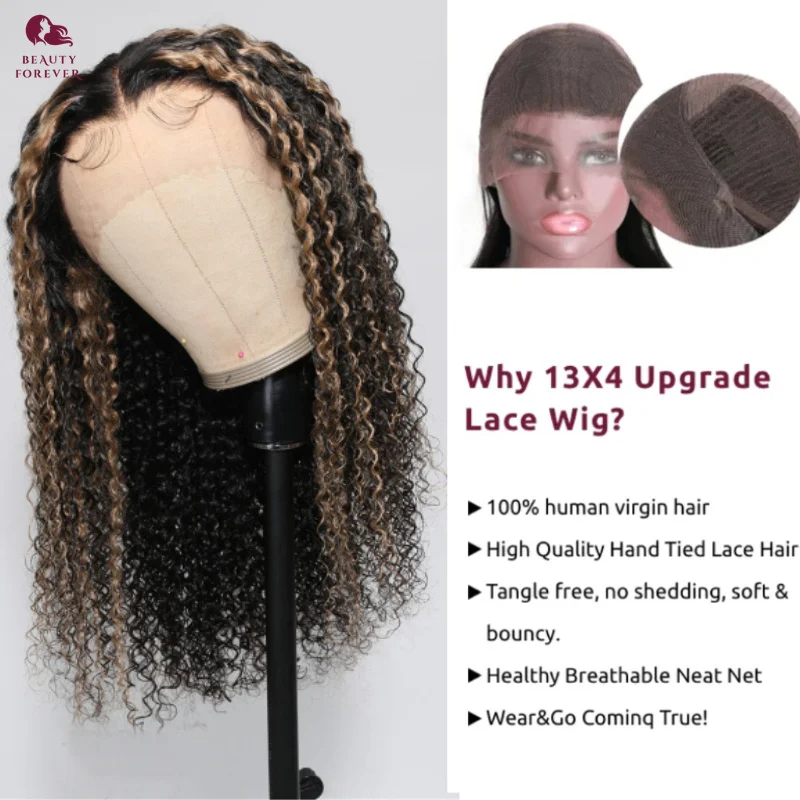 Beautyforever Bye Bye Knots Glueless Human Hair Wig Ready to Wear Highlights Color Curly Lace Front Human Hair Wig Virgin Hair