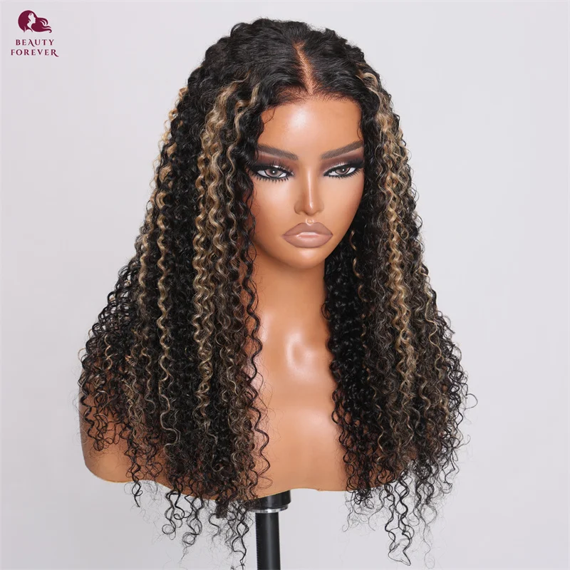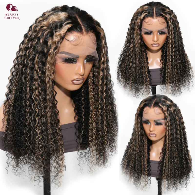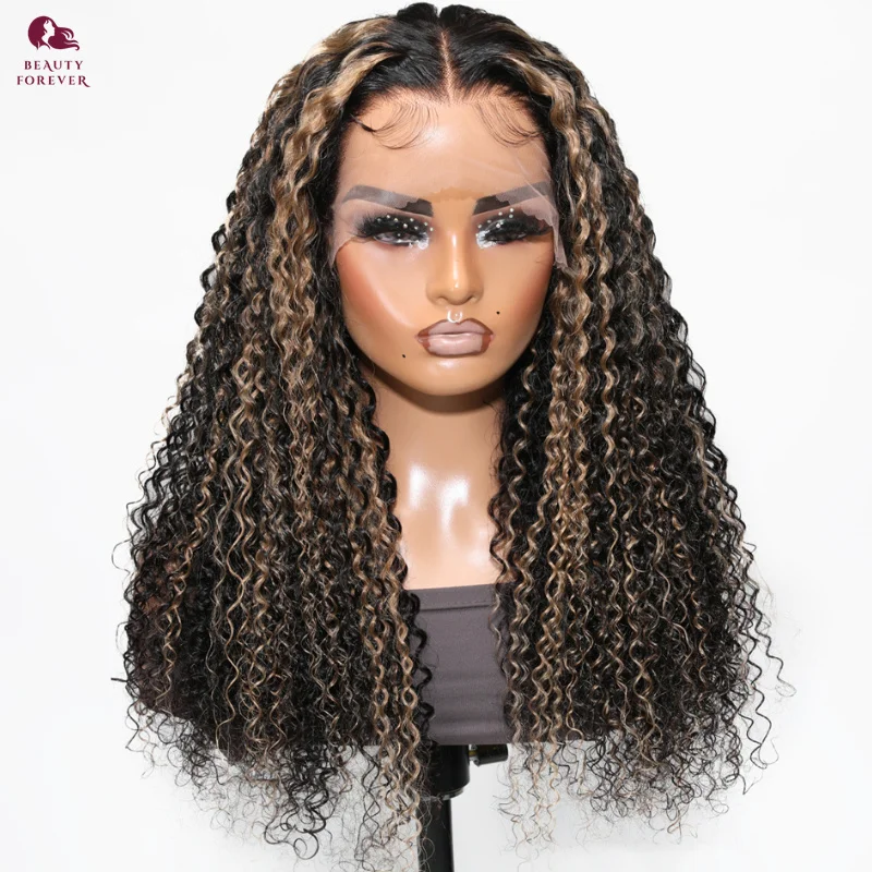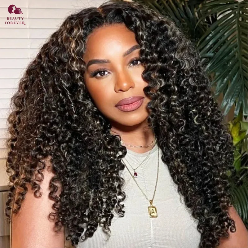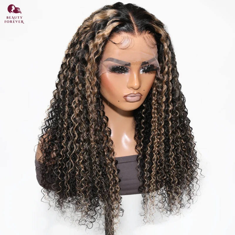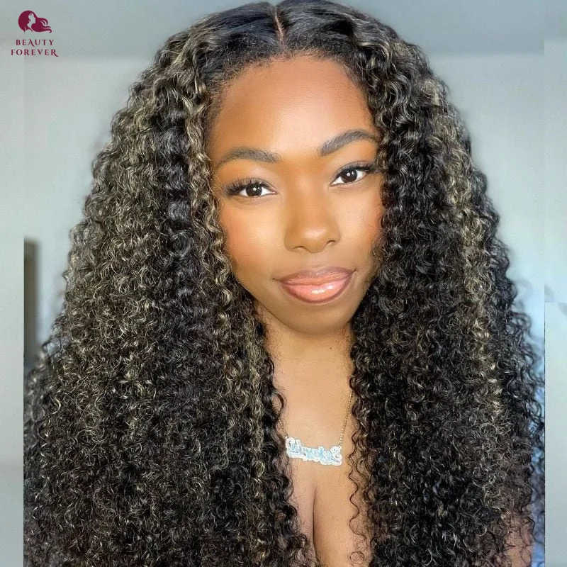 Beautyforever Bye Bye Knots Glueless Human Hair Wig Ready to Wear Highlights Color Curly Lace Front Human Hair Wig Precut Lace Density 180%