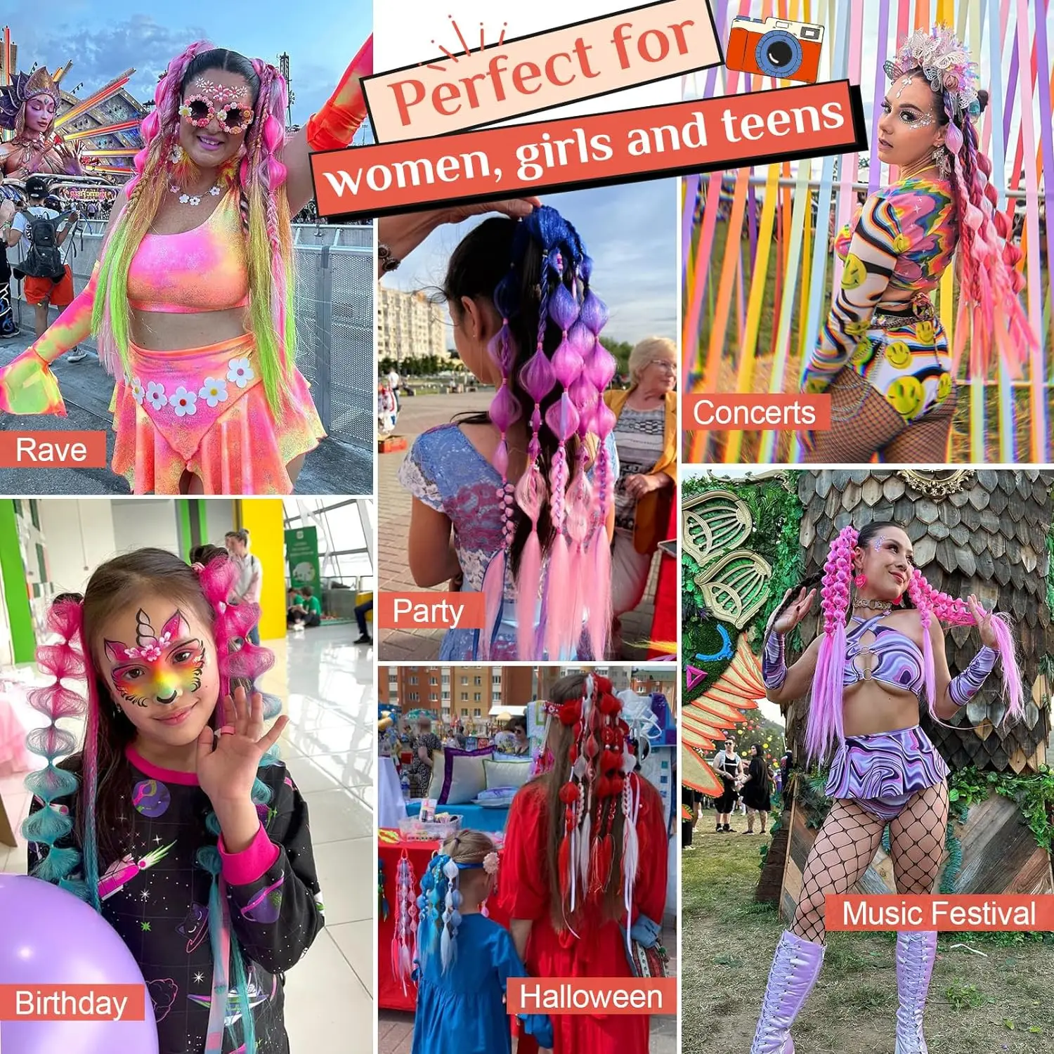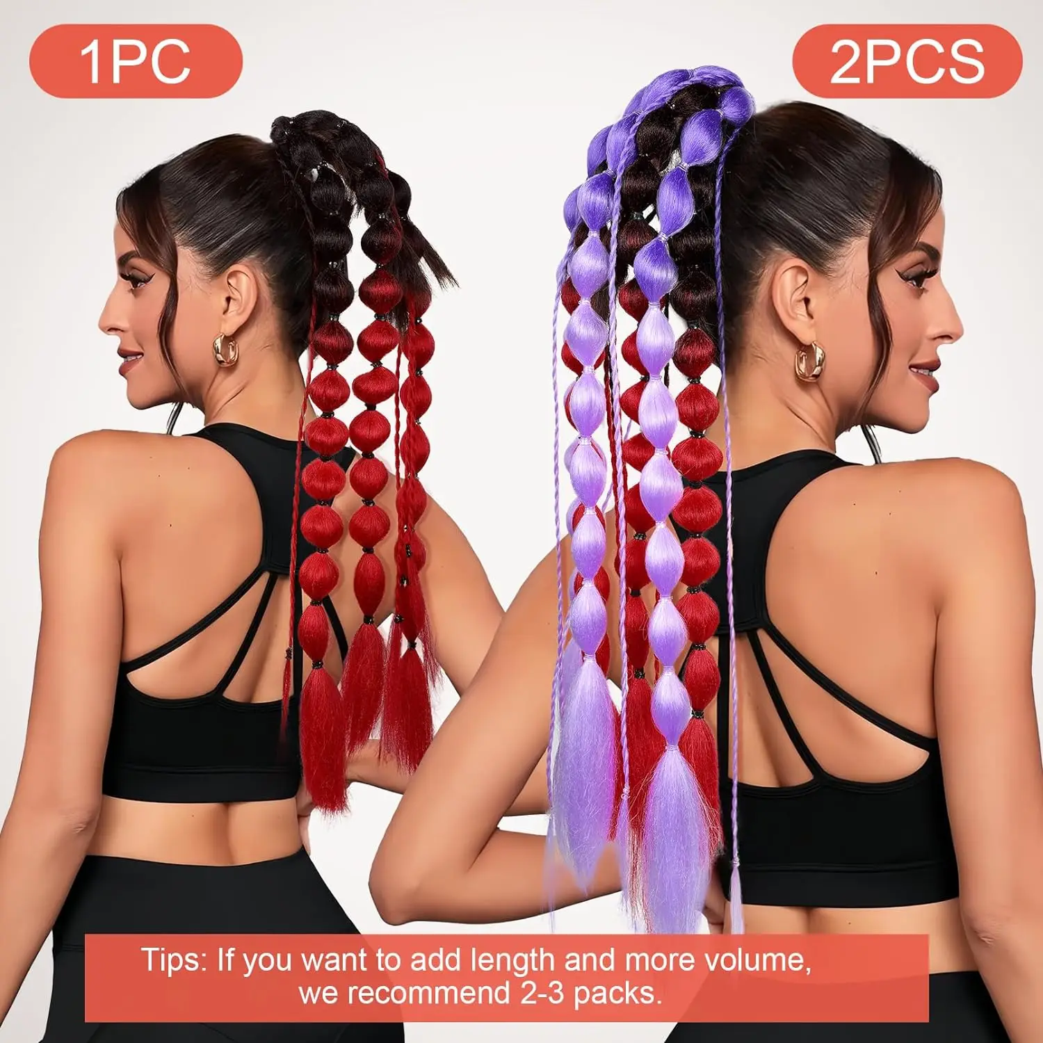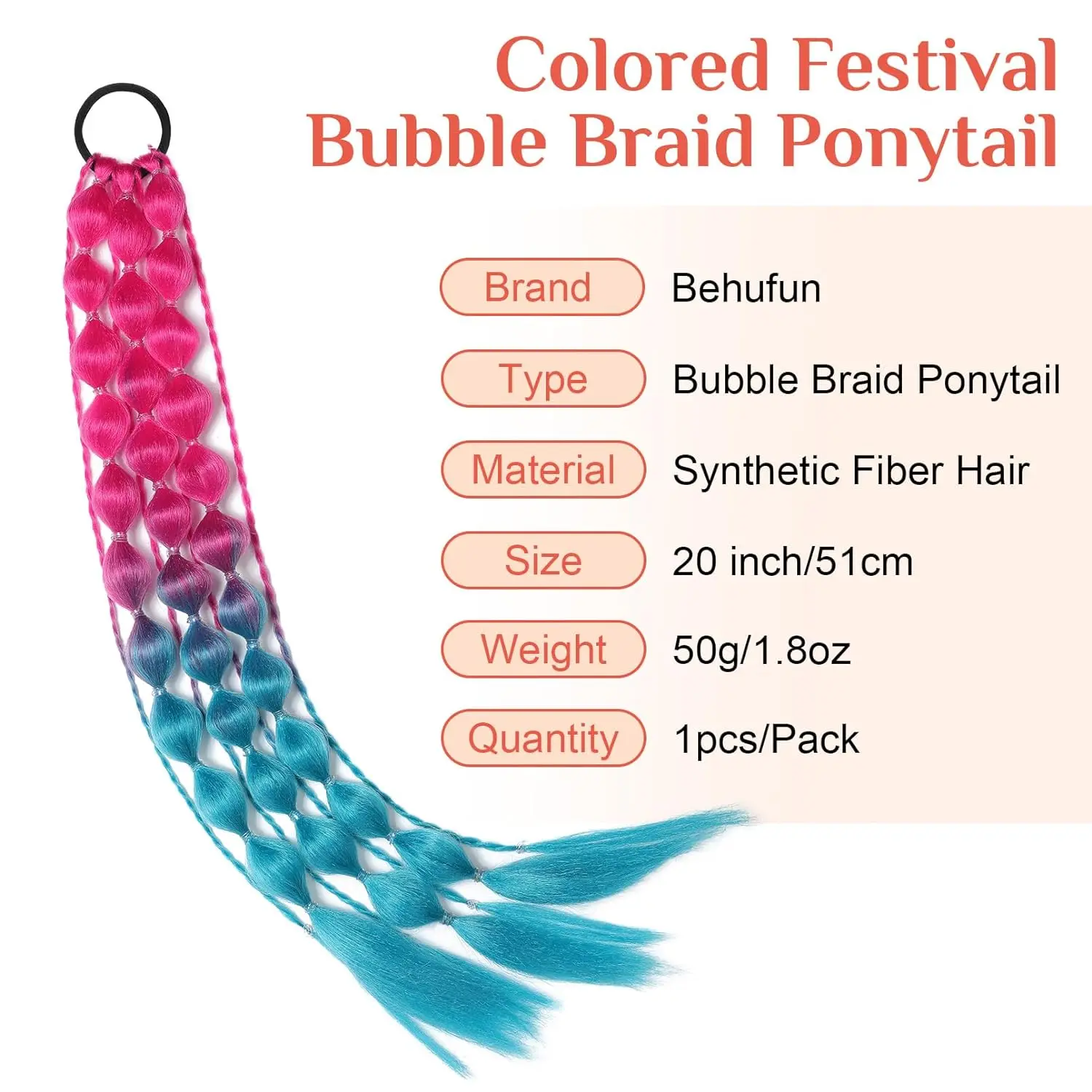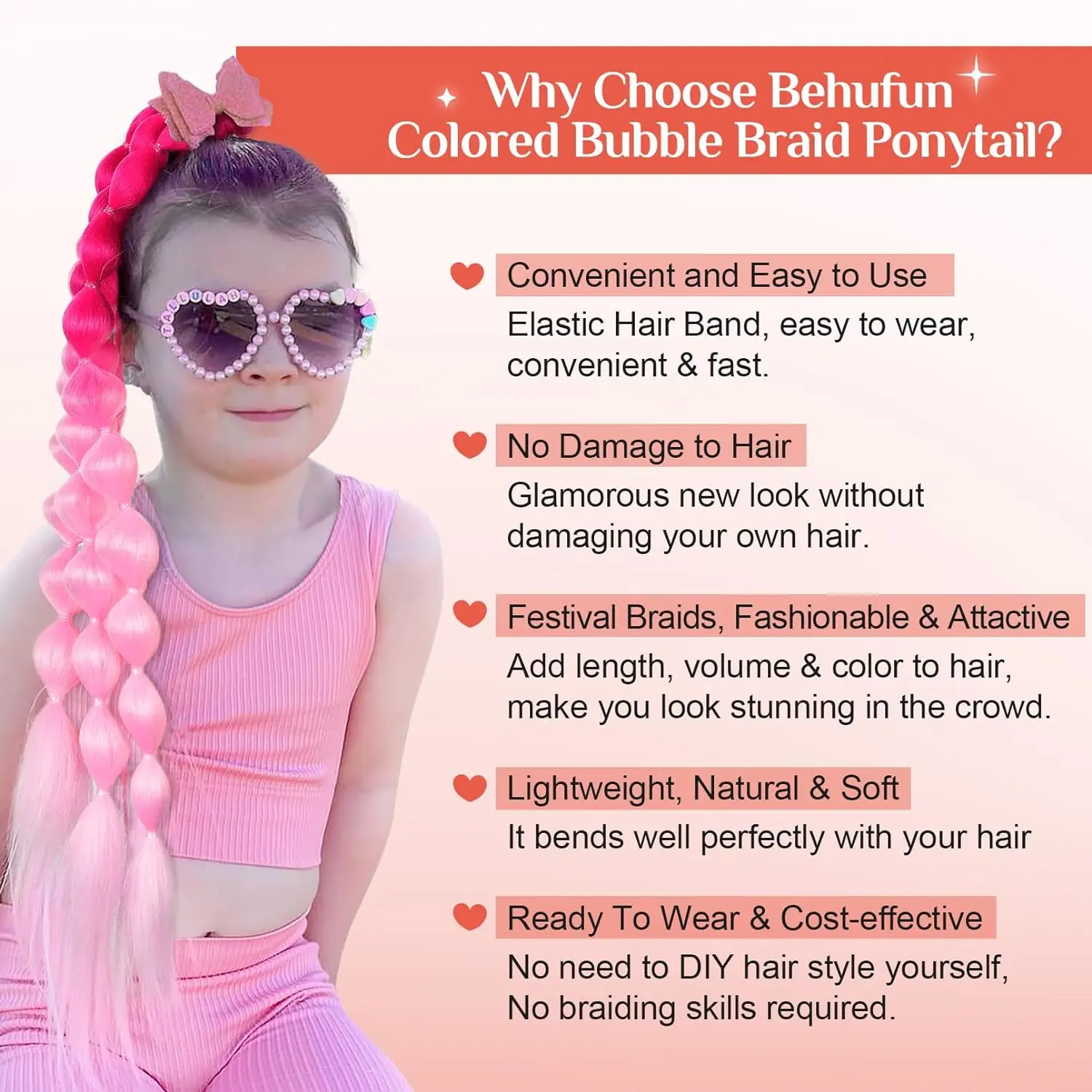 Behufun-Colored Ponytail Extensions for Kids, Lightweight, Bubble Ponytail Extension with Hair Tie, Ombre, Crazy Day Accessories
