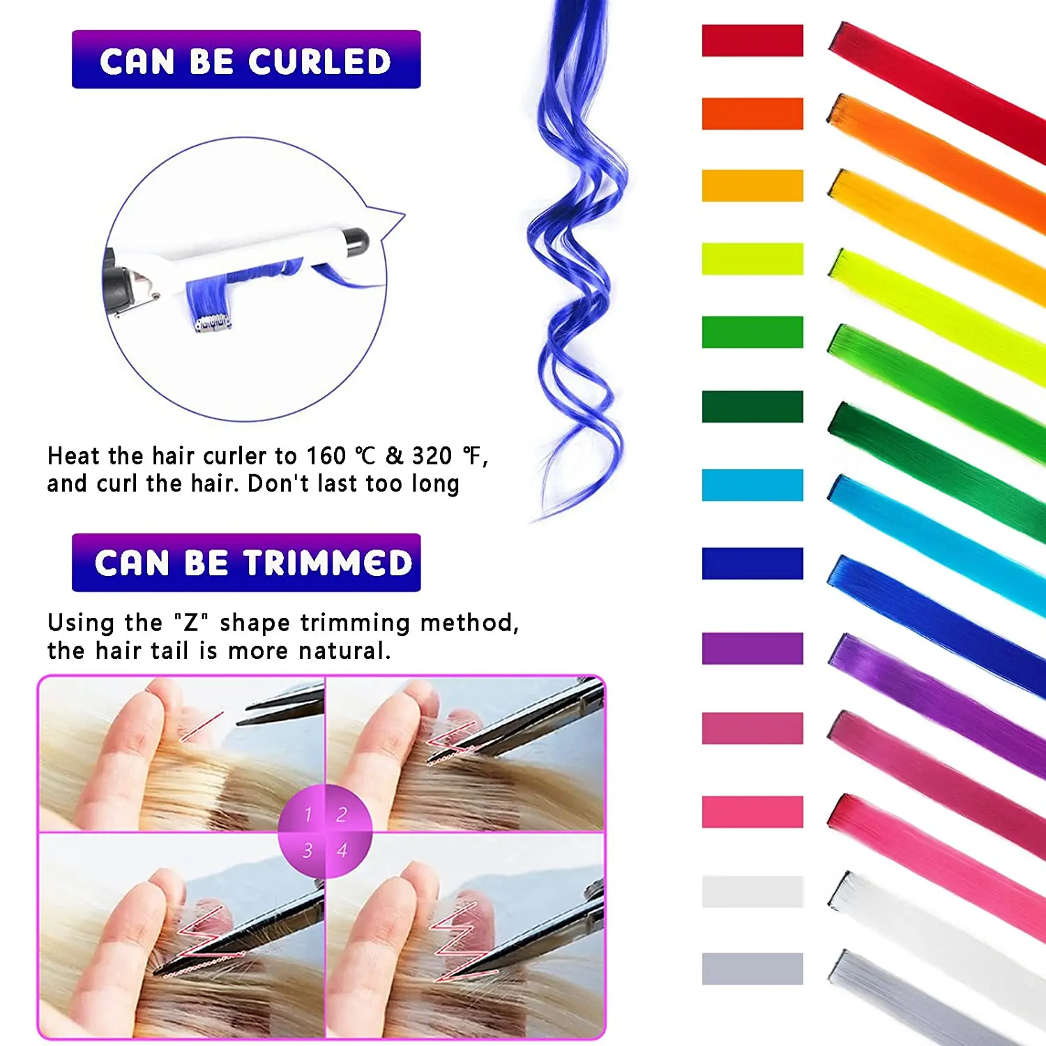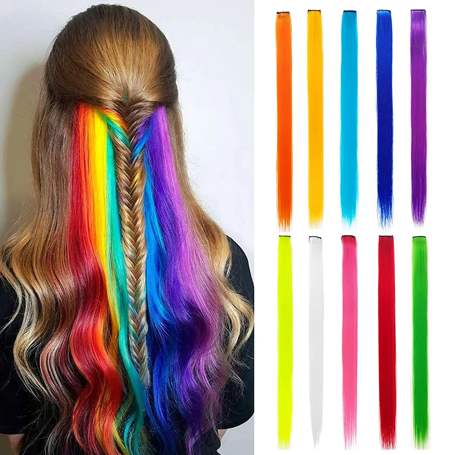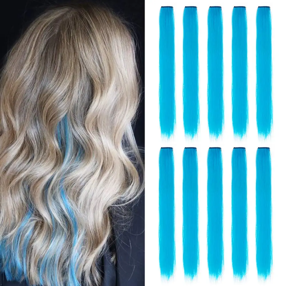BlackStar 20inch Party Highlights Clip in One Piece Hair Extensions for Girls Multi-colors Straight Hair Synthetic Hairpieces