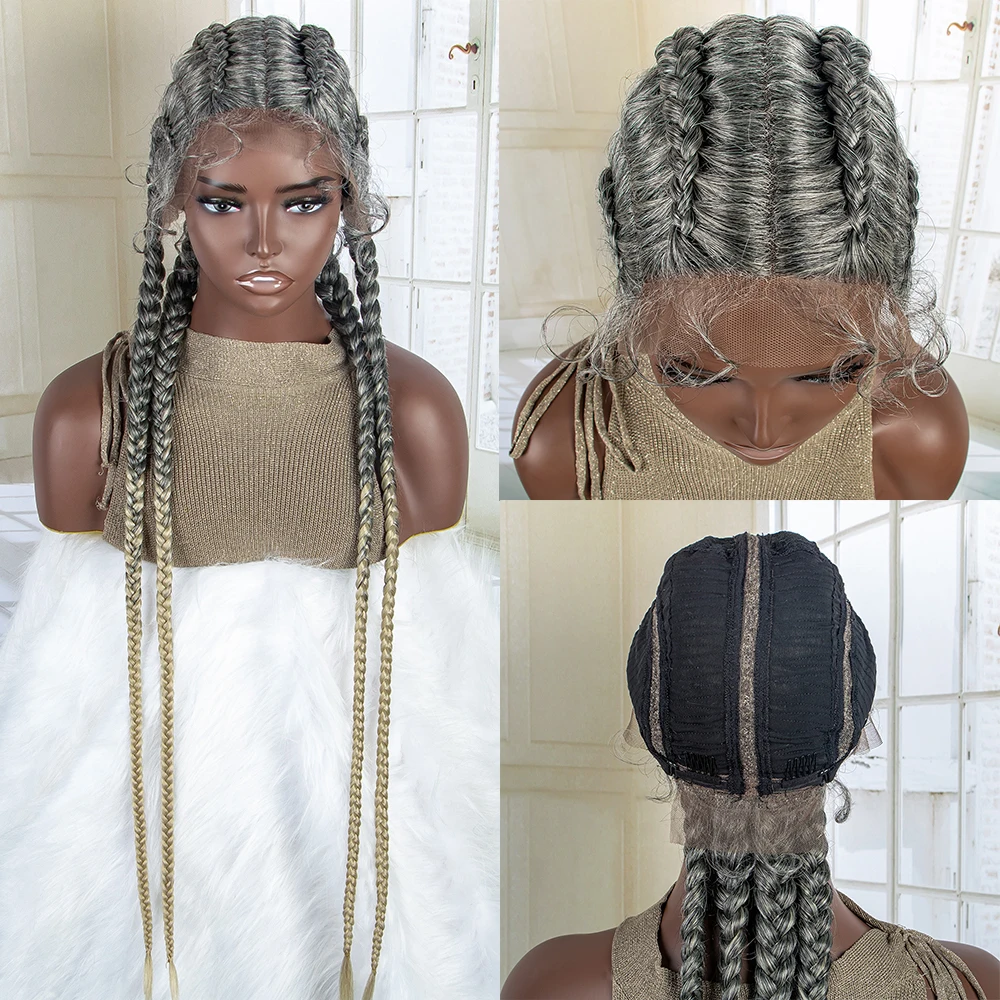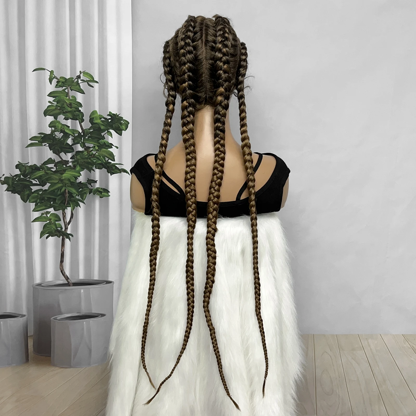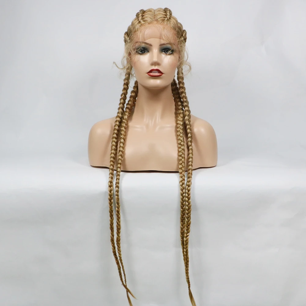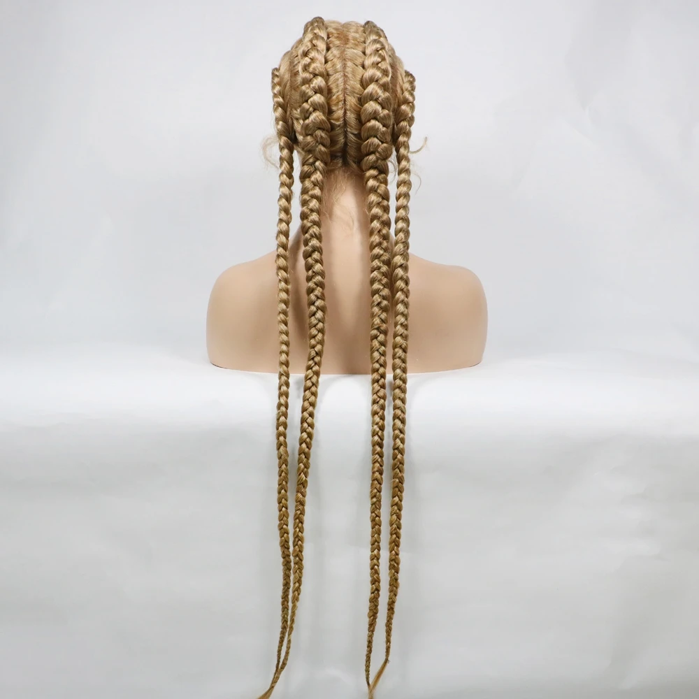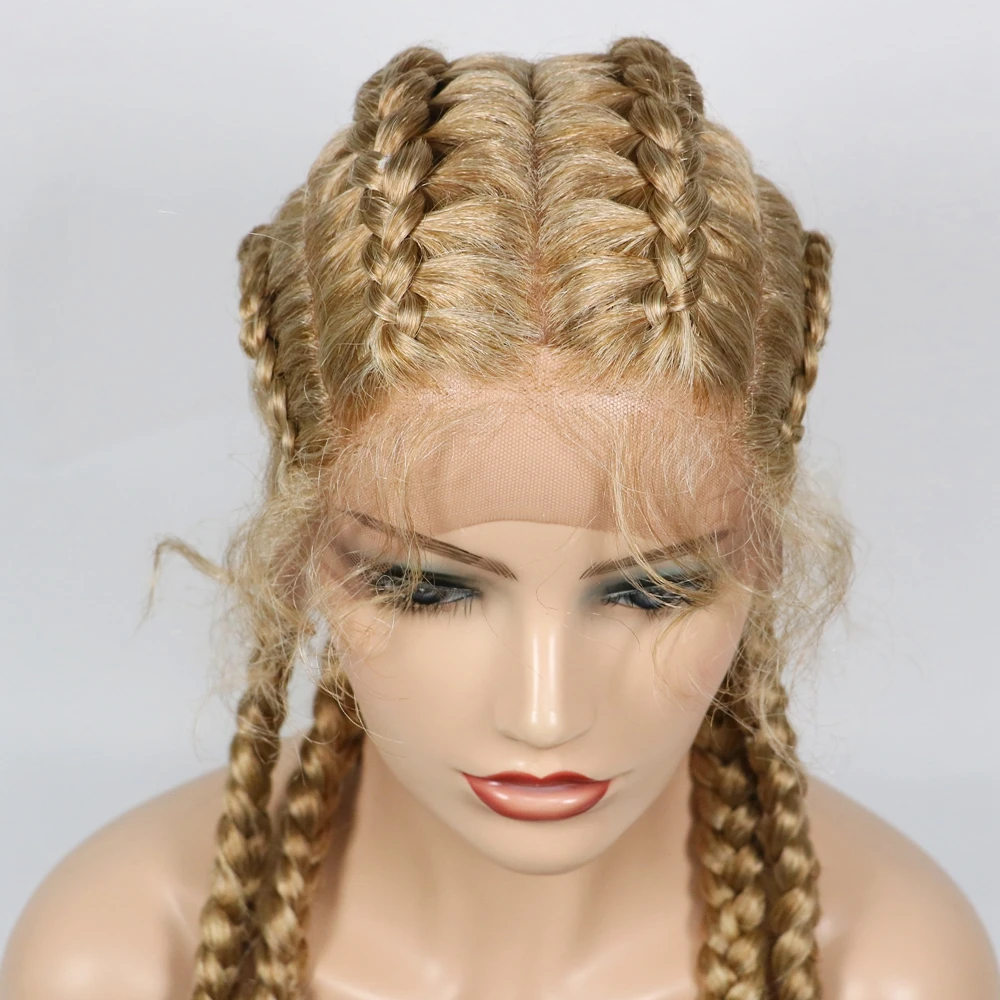 Blonde Braided Wig Extra Long Braided Lace Front Double Dutch Braided Wigs with Baby Hair for Women Heat Resistant