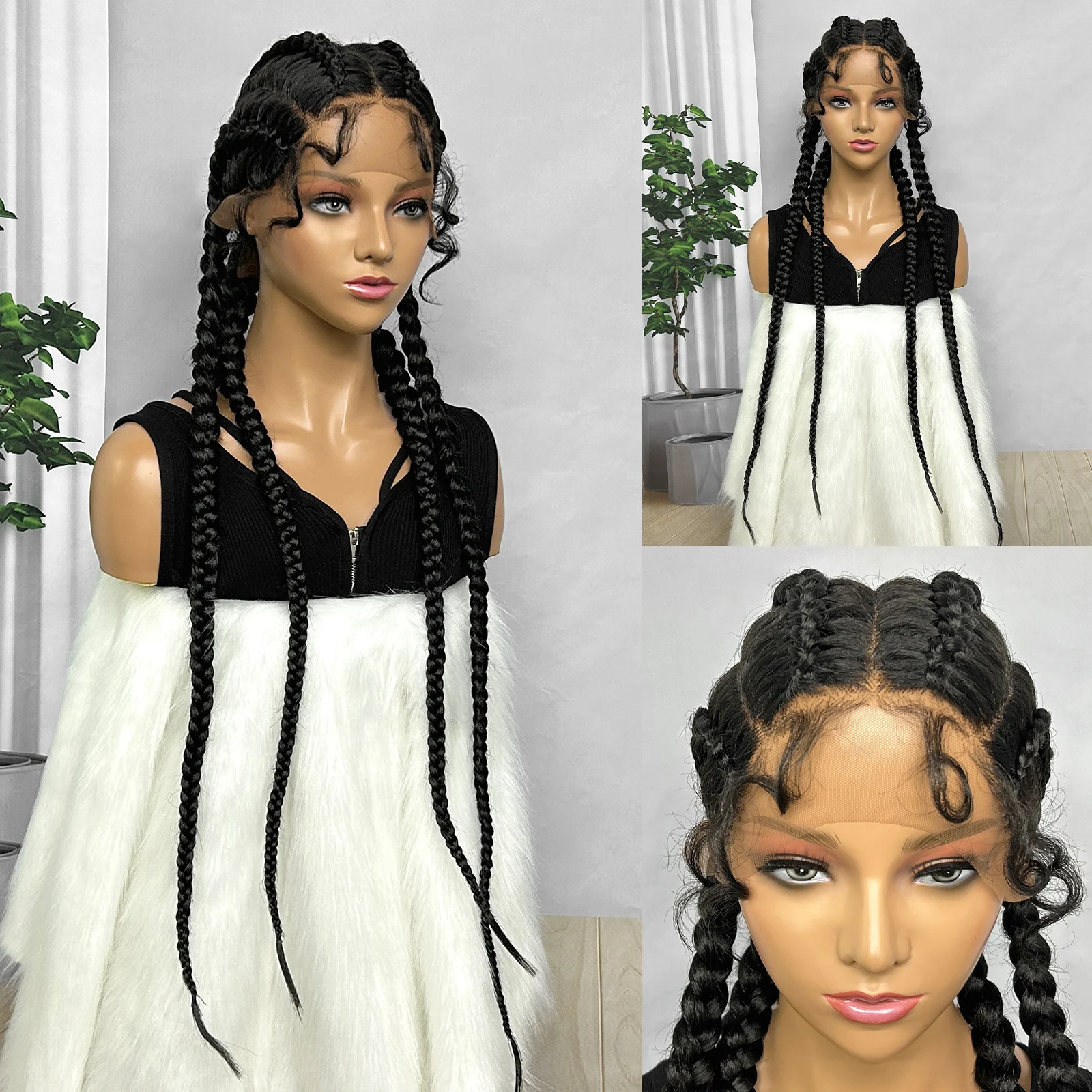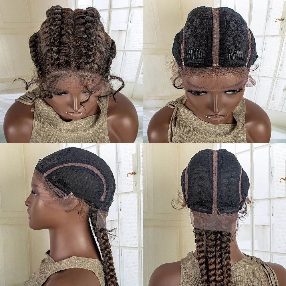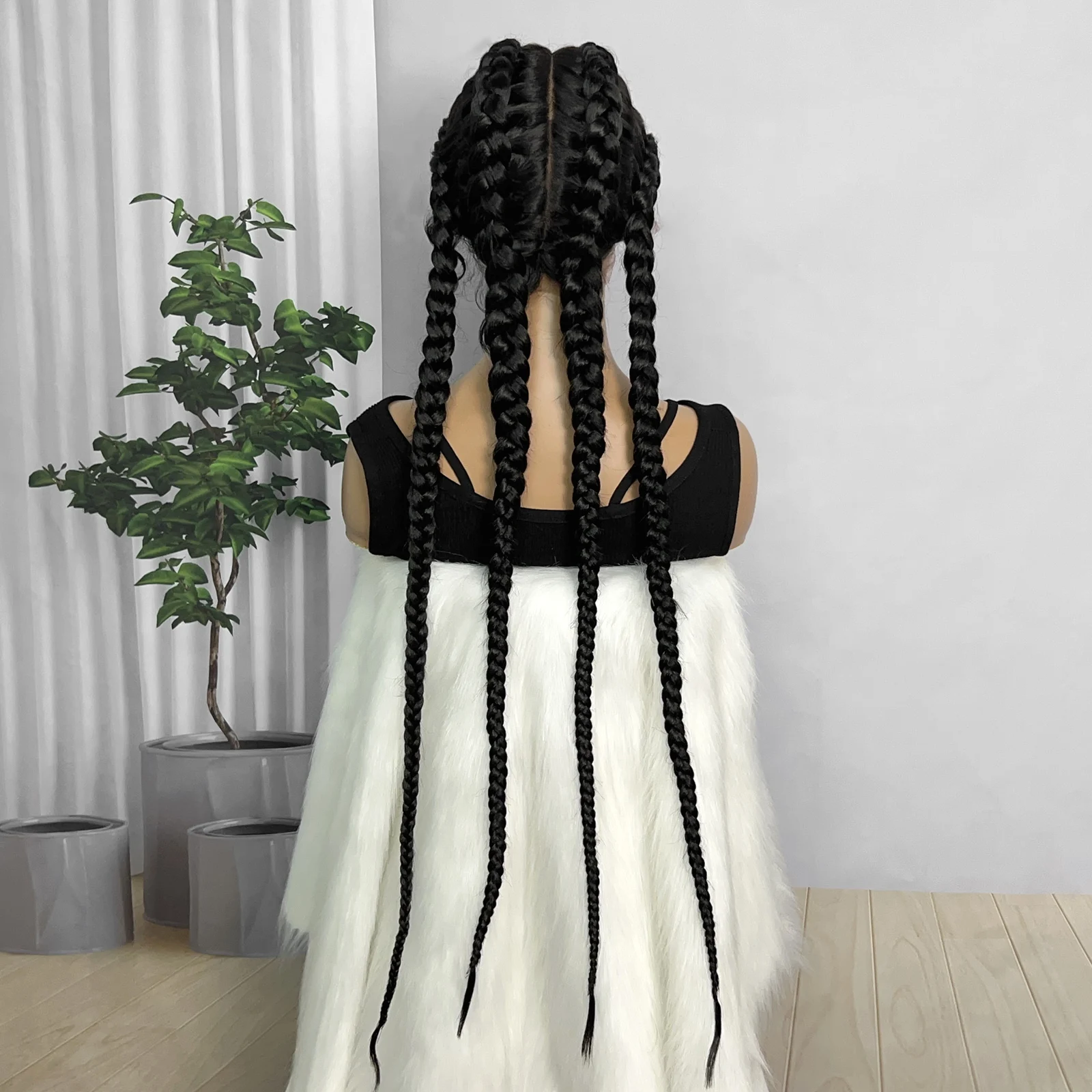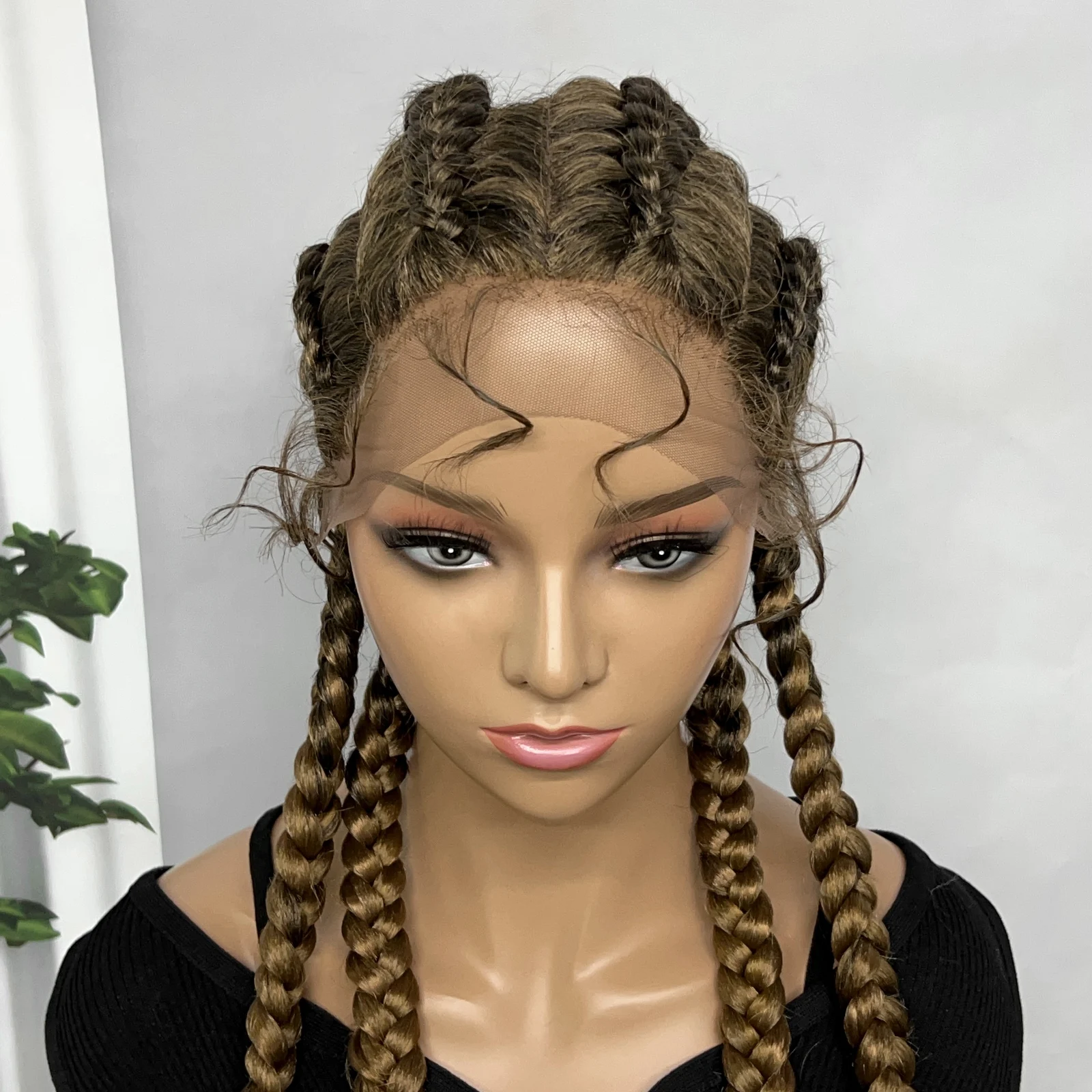Blonde Braided Wig Extra Long Braided Lace Front Double Dutch Braided Wigs with Baby Hair for Women Heat Resistant