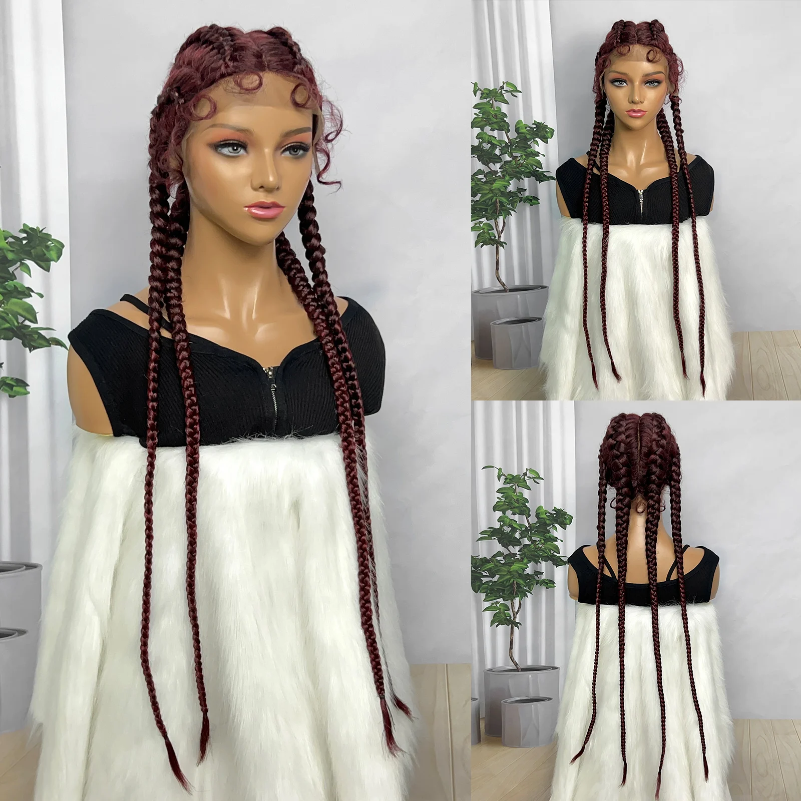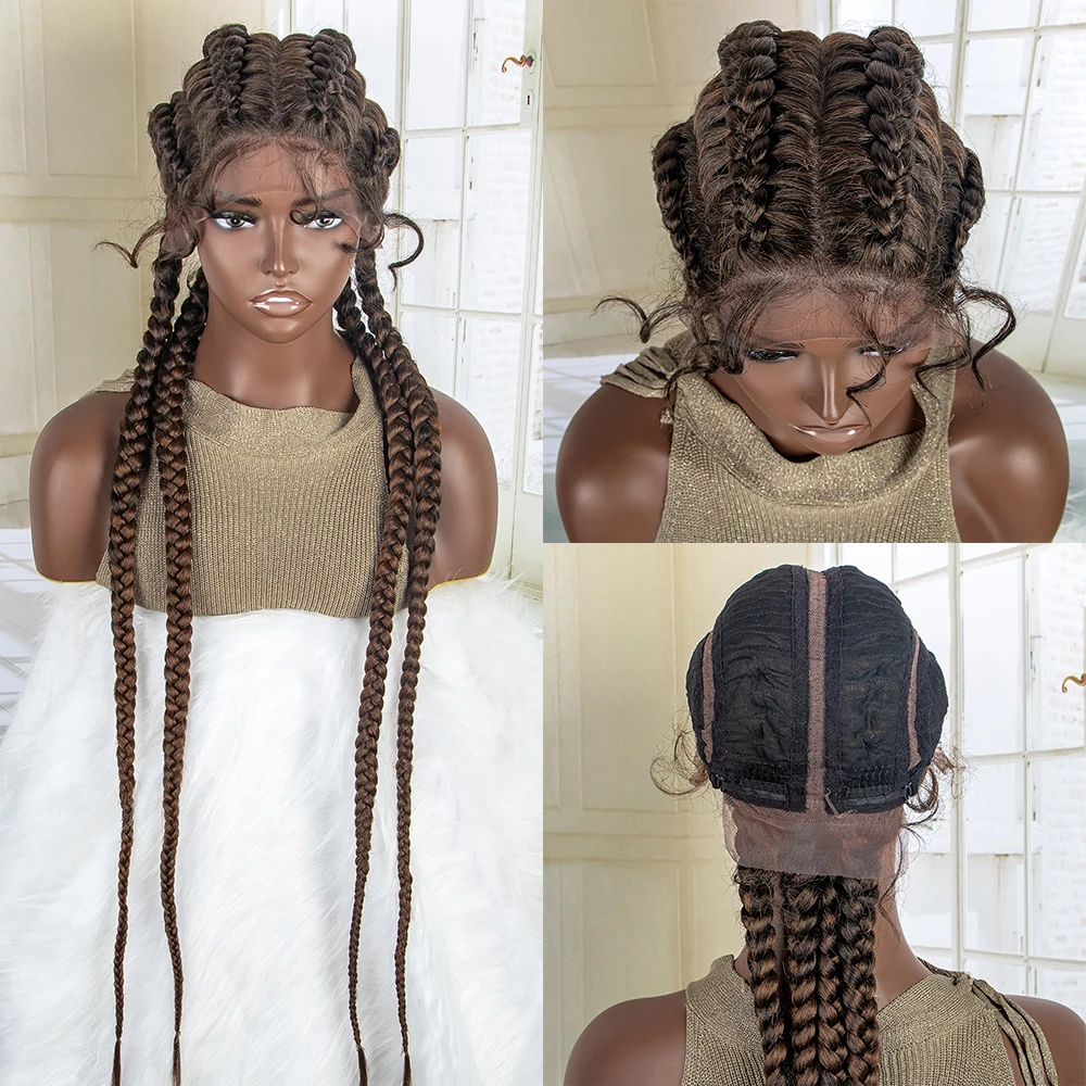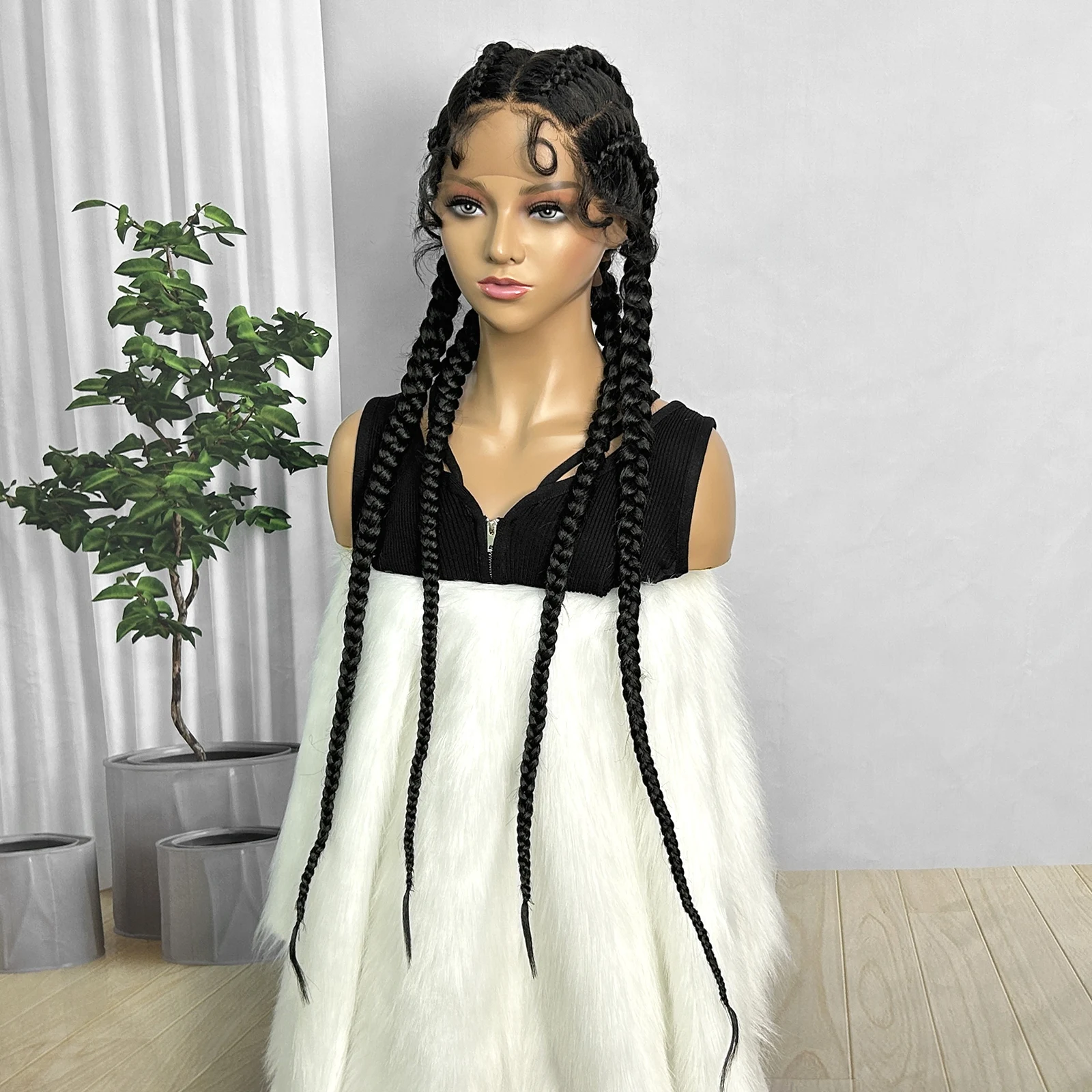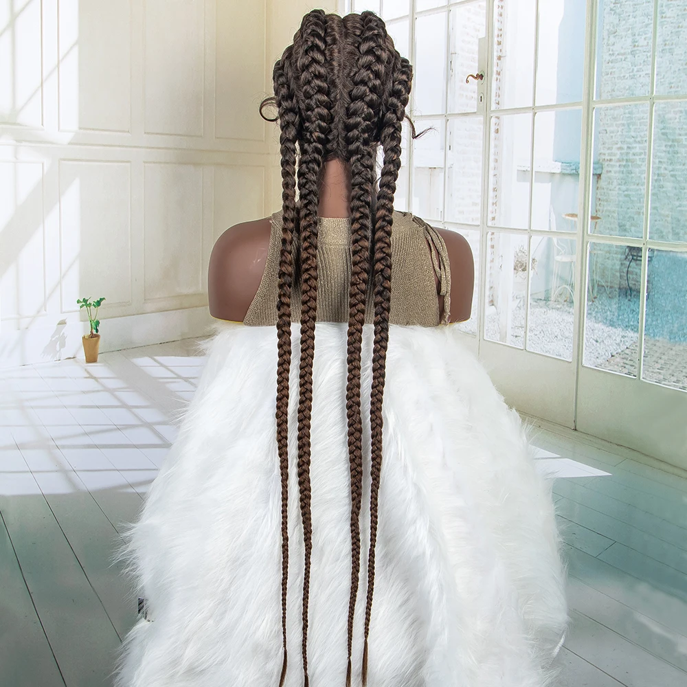 Blonde Braided Wig Extra Long Braided Lace Front Double Dutch Braided Wigs with Baby Hair for Women Heat Resistant