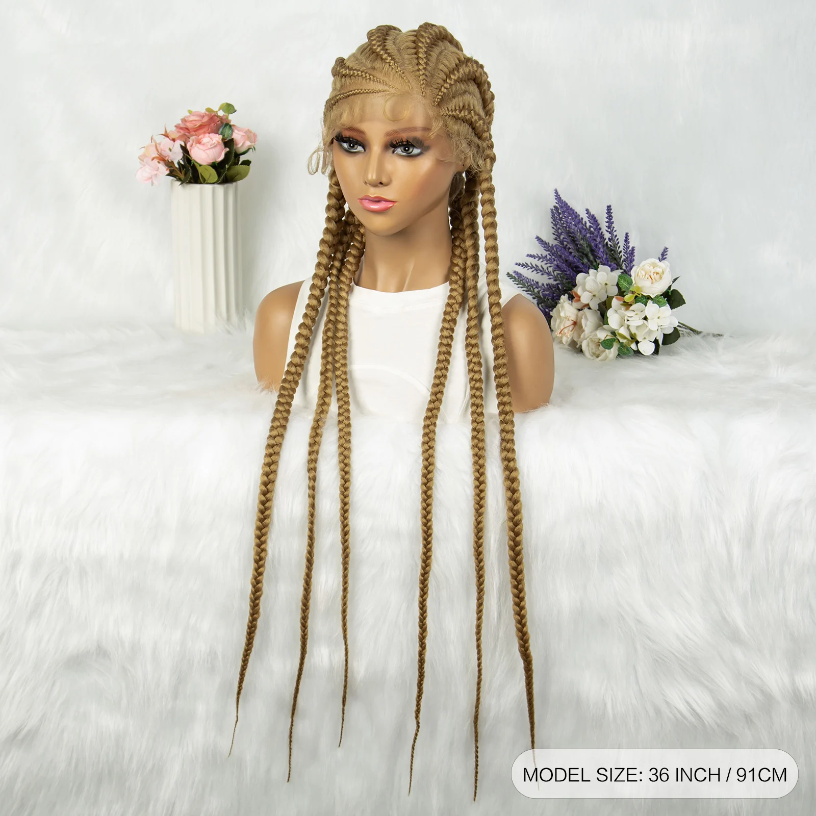 Blonde Color Synthetic Cornrow Braids Wig Lace Front Knotless Box Braided Wig 36 Inches African American Braiding Hair For Women