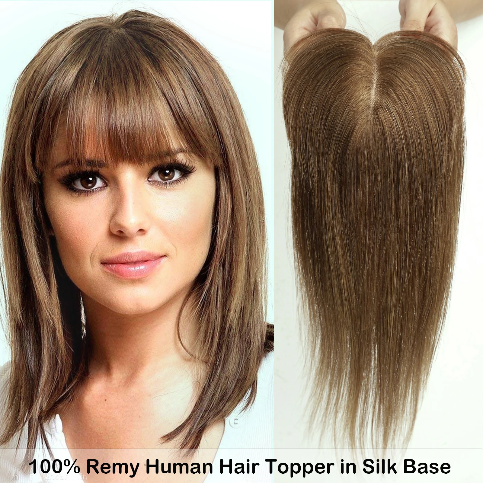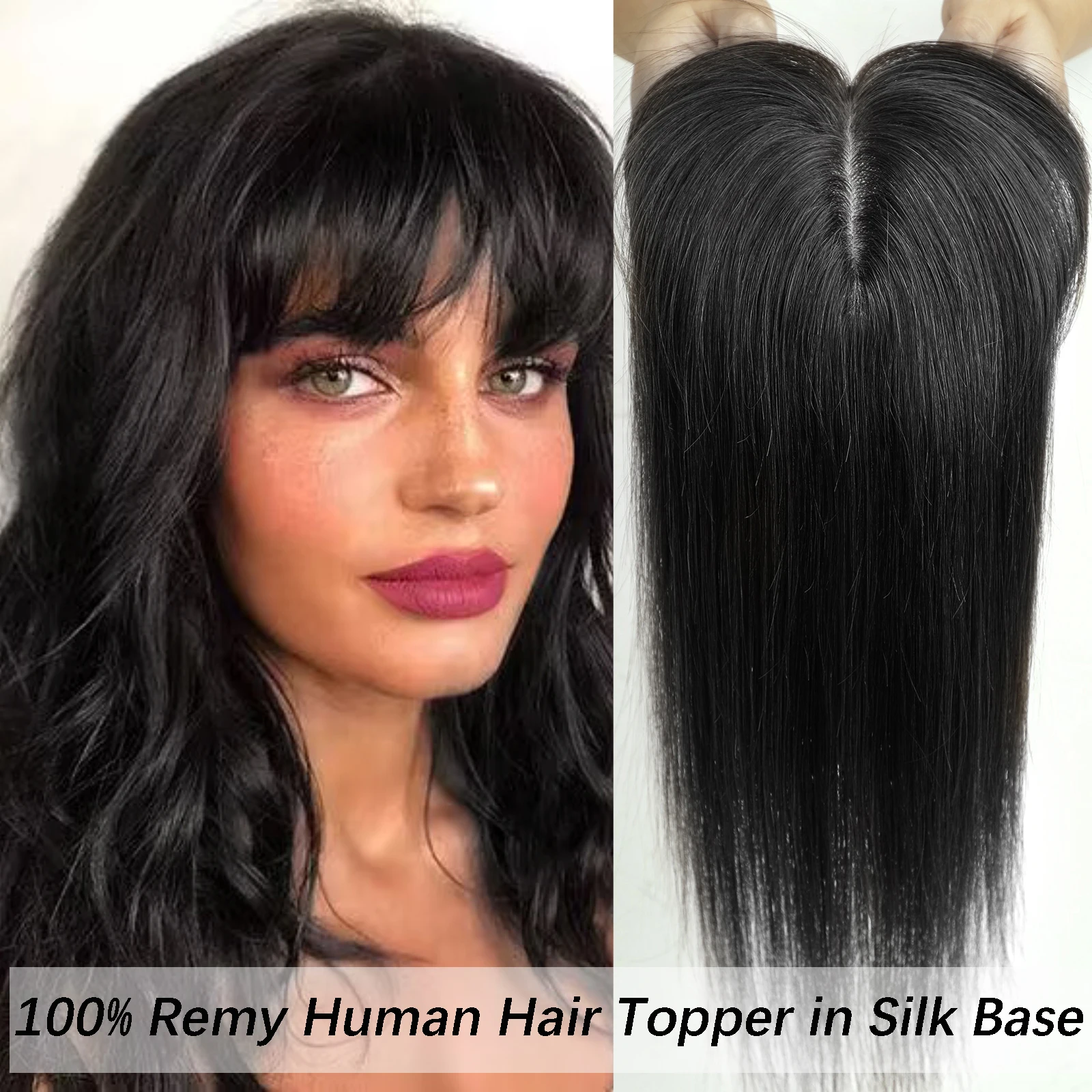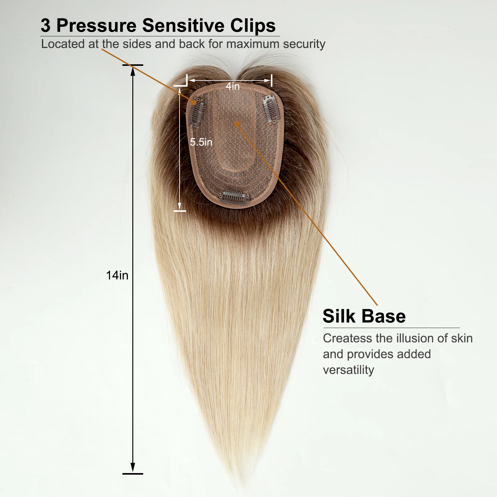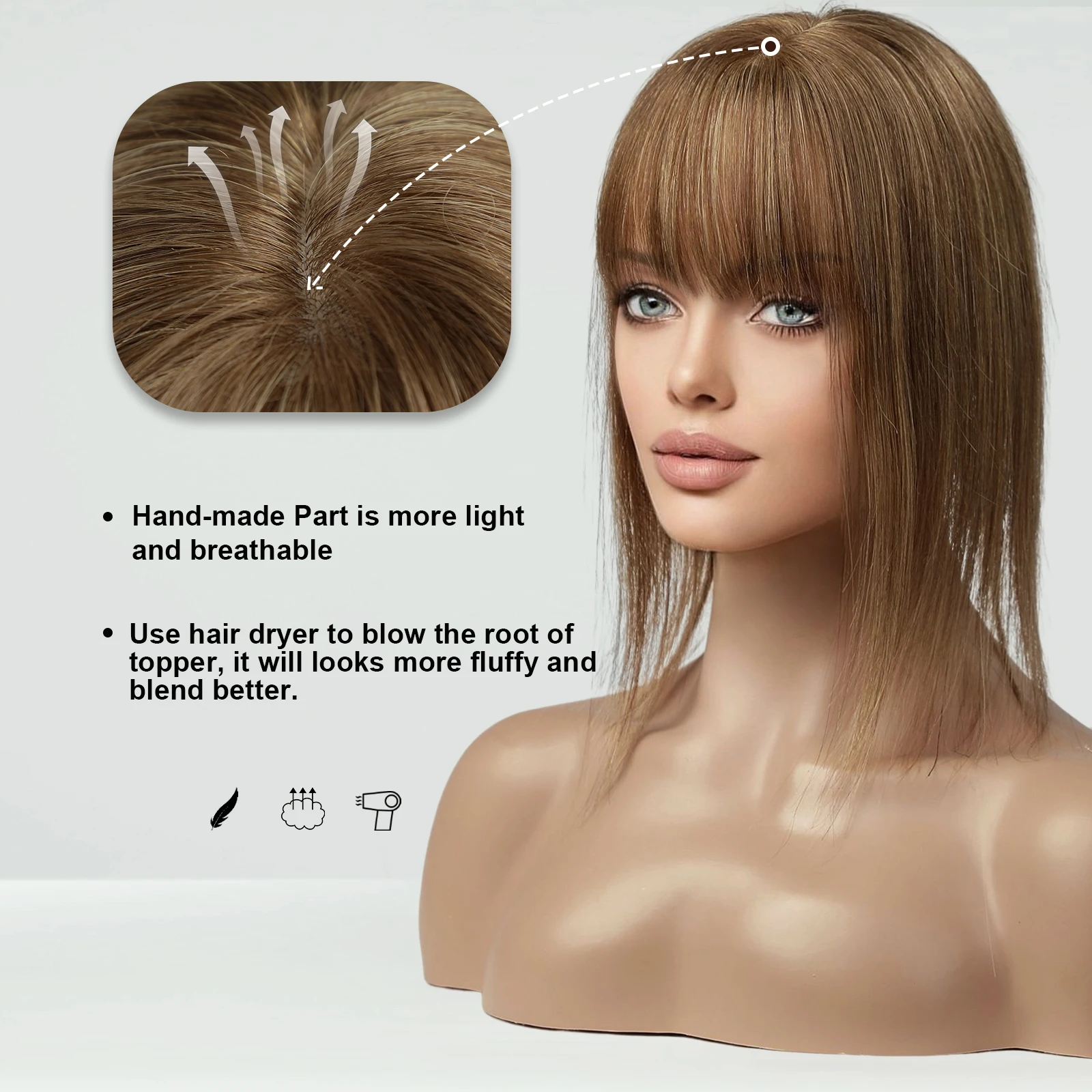 Blonde Human Hair Toppers with Bangs Dark Root Straight Remy Human Hair Silk Base Topper Clip in Hair Extensions for Women Daily