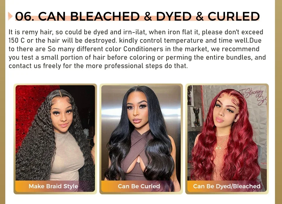A6: Yes, our hairs are 100% human hairs can be dyed, bleached and permed. However, frequently dyed and permed will do harm on hairs, even destroy hairs. Please do not do this frequently.