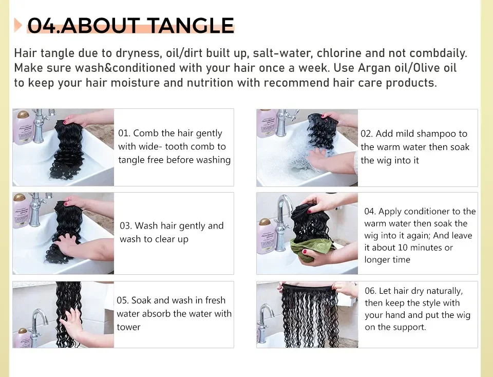 A4: Generally the hair need to be cared 2-3 times a week, so that the hair can keep clean and shiny, the proper way need to be used, please choose quality hair shampoo to provide sustenance in warm water, and let it air dry after deep conditioned,After wash pls nurse the hair with some hair oil, then the hair will be silk and soft.Additionally please choose the wide-toot comb to comb it gently, so as to prevent shedding.And too much heat may damage the hair, so please try start by a lower heat .