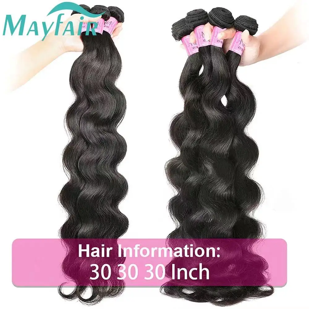 Body Wave Bundles Human Hair Brazilian Weaving Natural Black 3 4 Bundles Deal Virgin Hair 30 32Inch Raw Hair Extensions