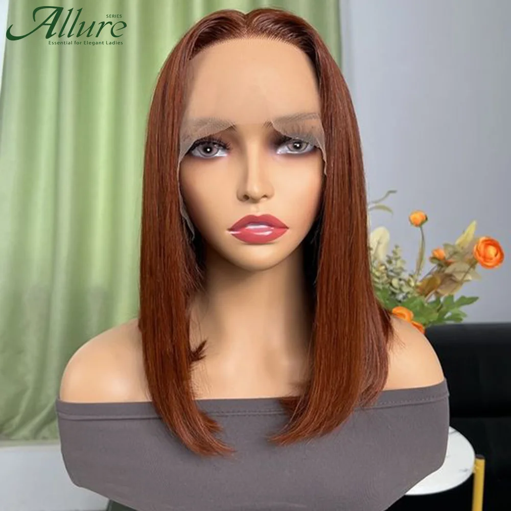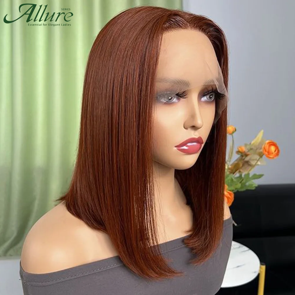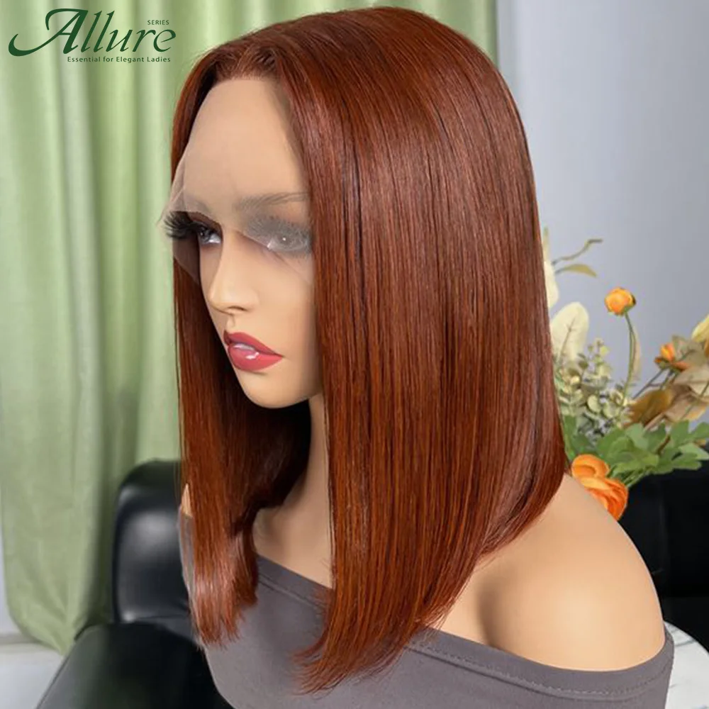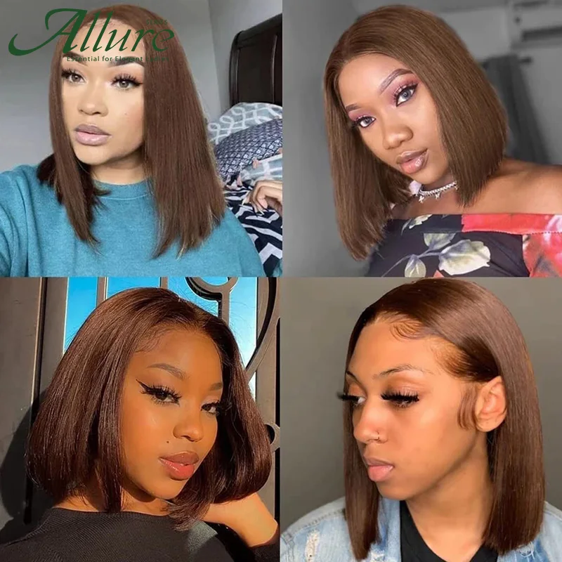 Bone Straight Bob Wig Lace Front Human Hair Wigs For Women Short Bob Wig HD Lace Frontal Wig Brown Color Glueless Wigs Allure