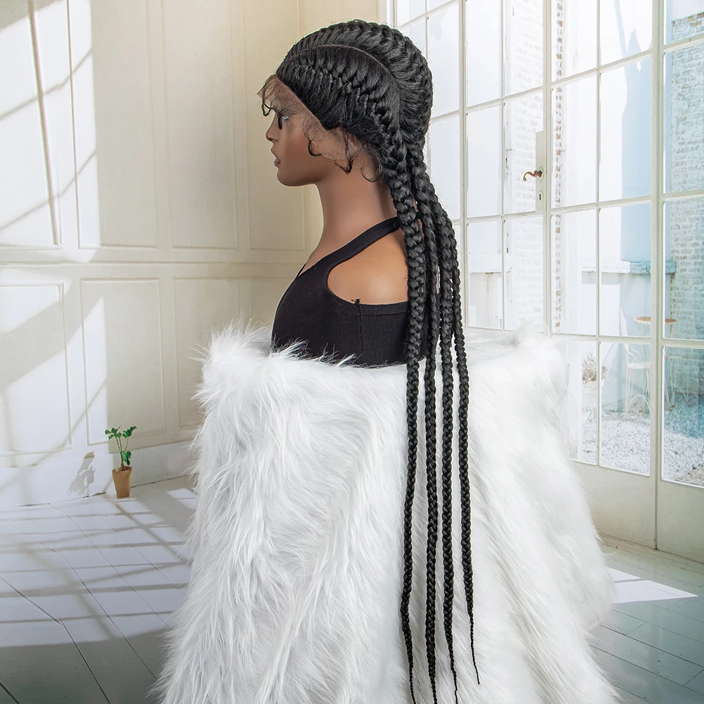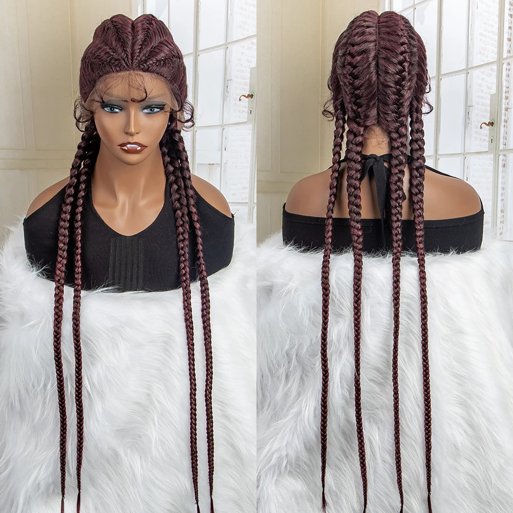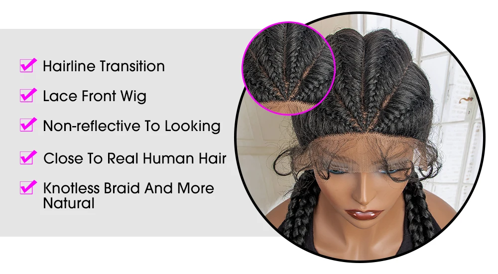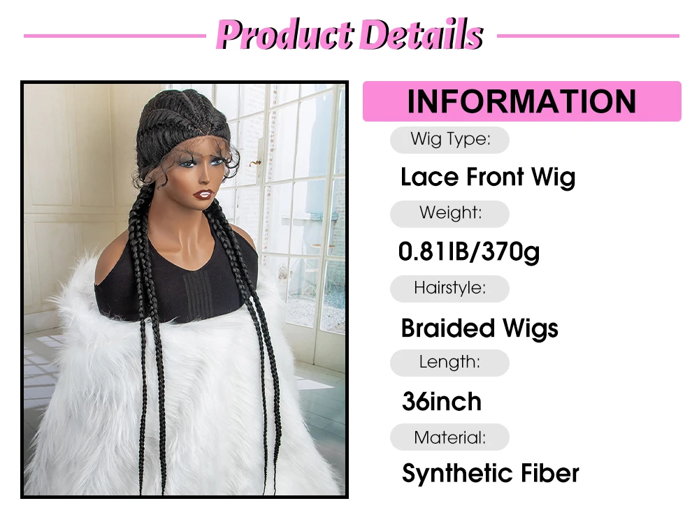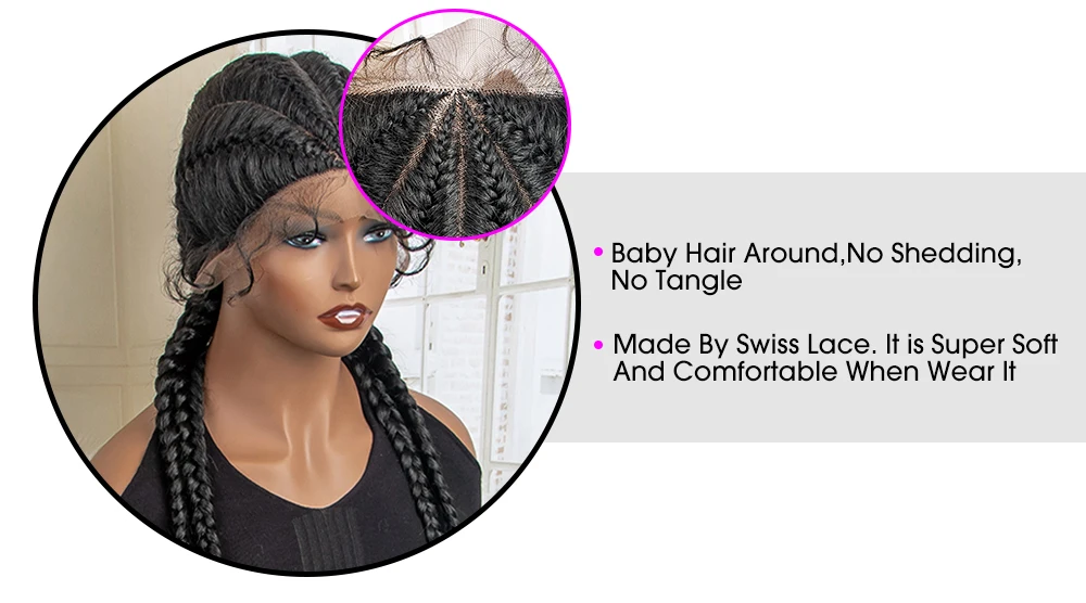 Box Braided Lace Frontal Wig 36 Inches Long Dutch Braided Synthetic Wigs with Baby Hair for Black Women Box Braid Wigs