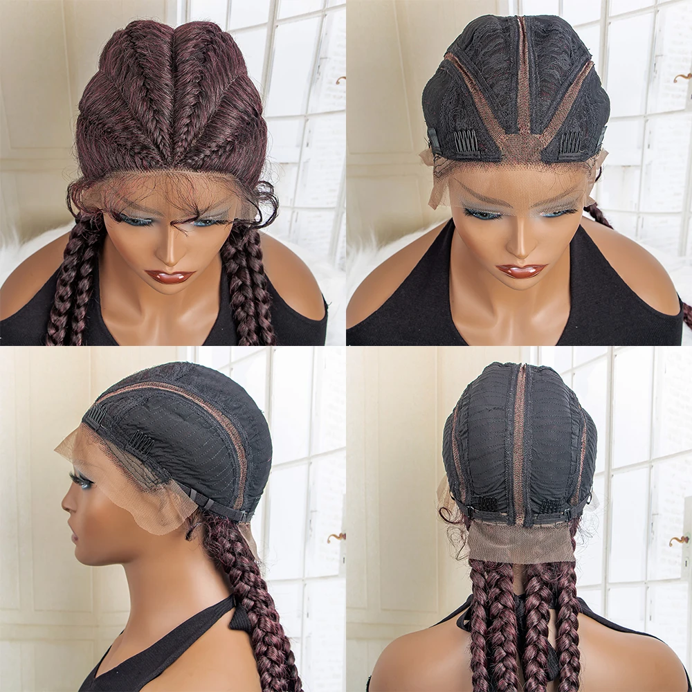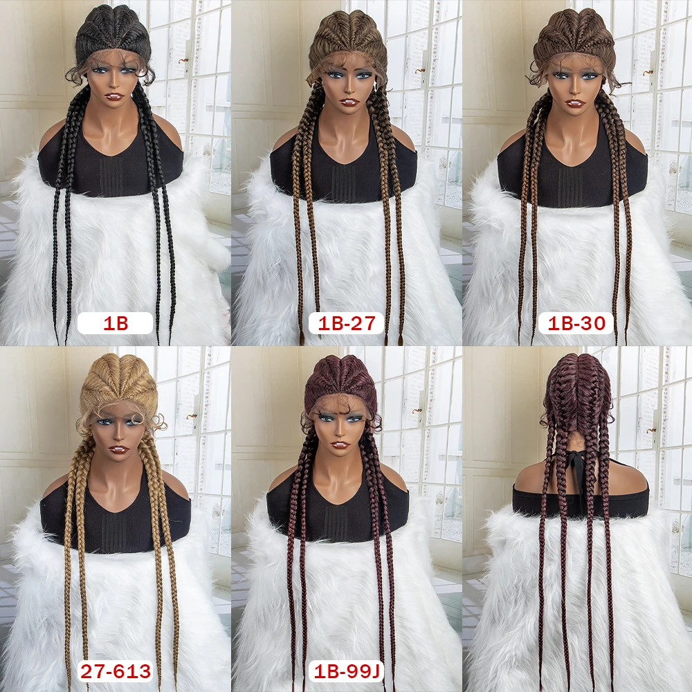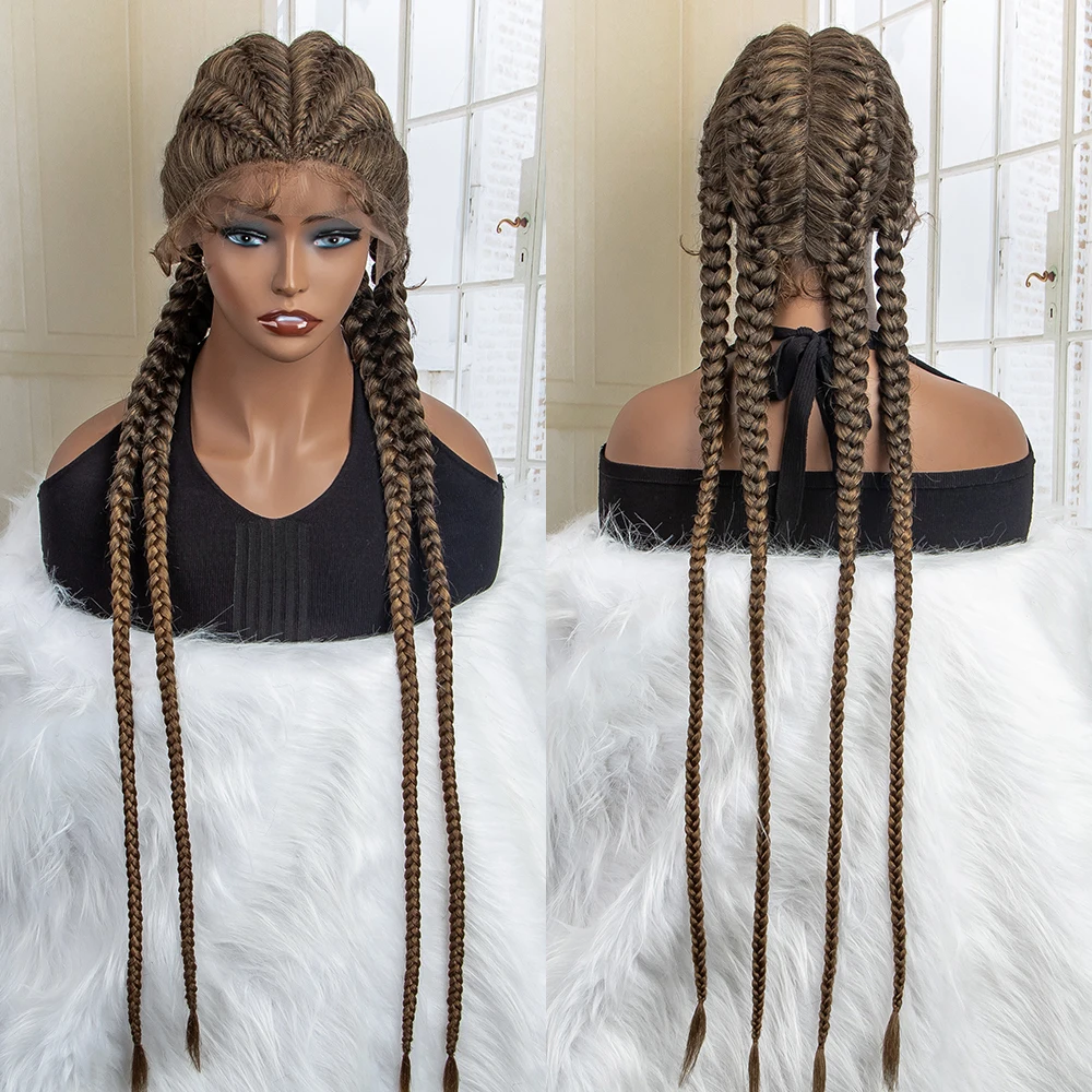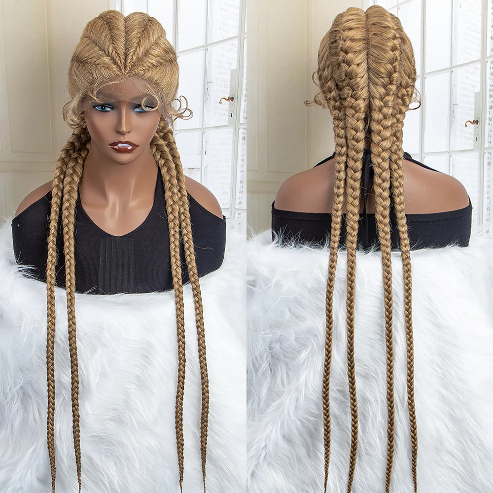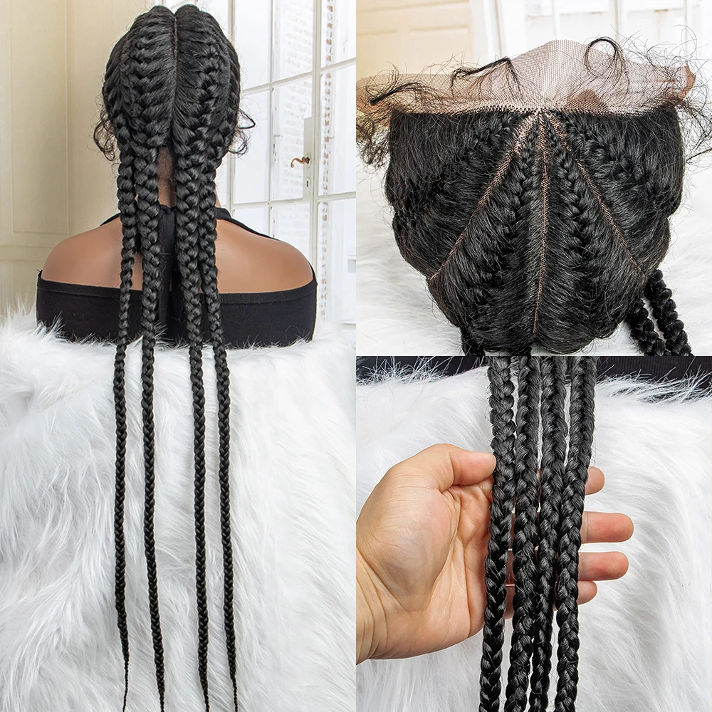 Box Braided Lace Frontal Wig 36 Inches Long Dutch Braided Synthetic Wigs with Baby Hair for Black Women Box Braid Wigs