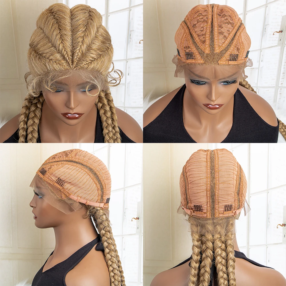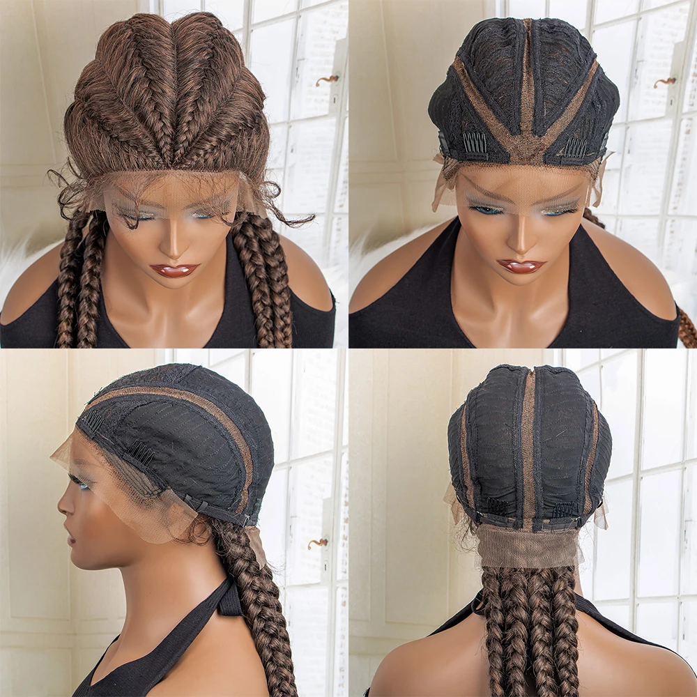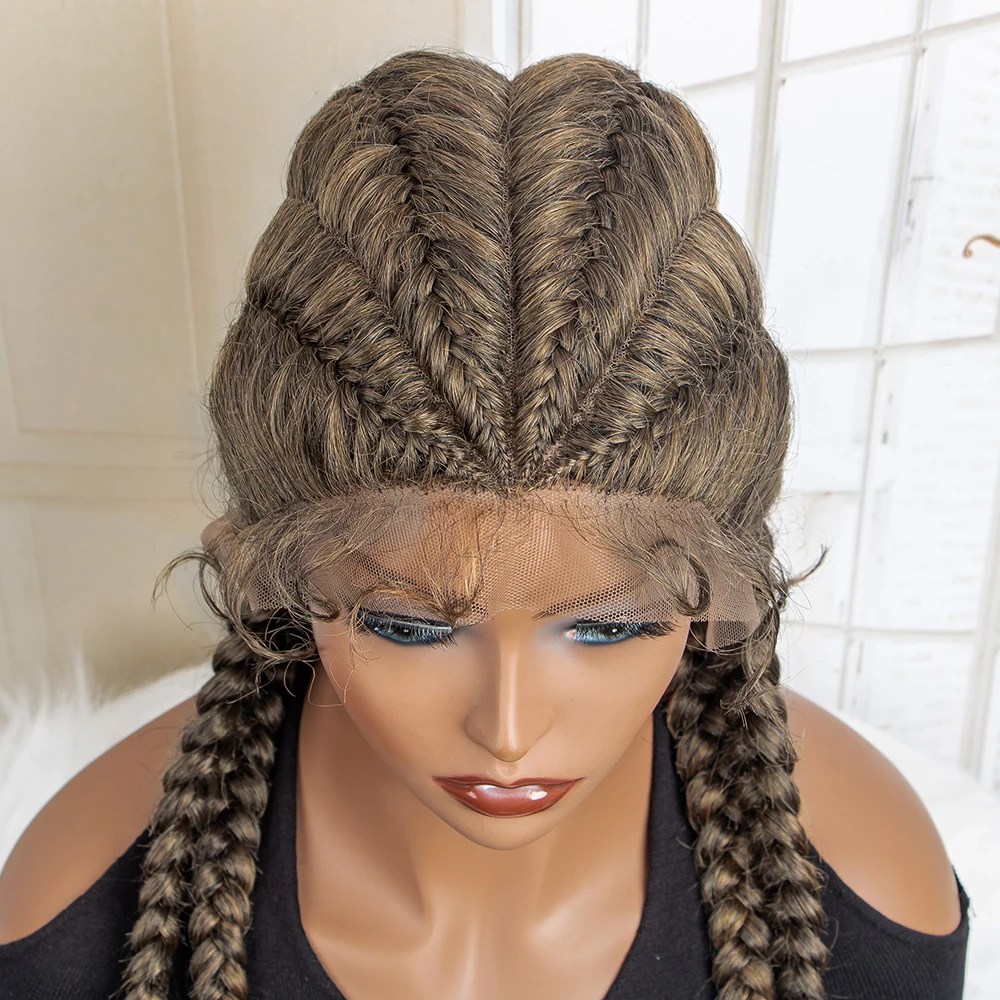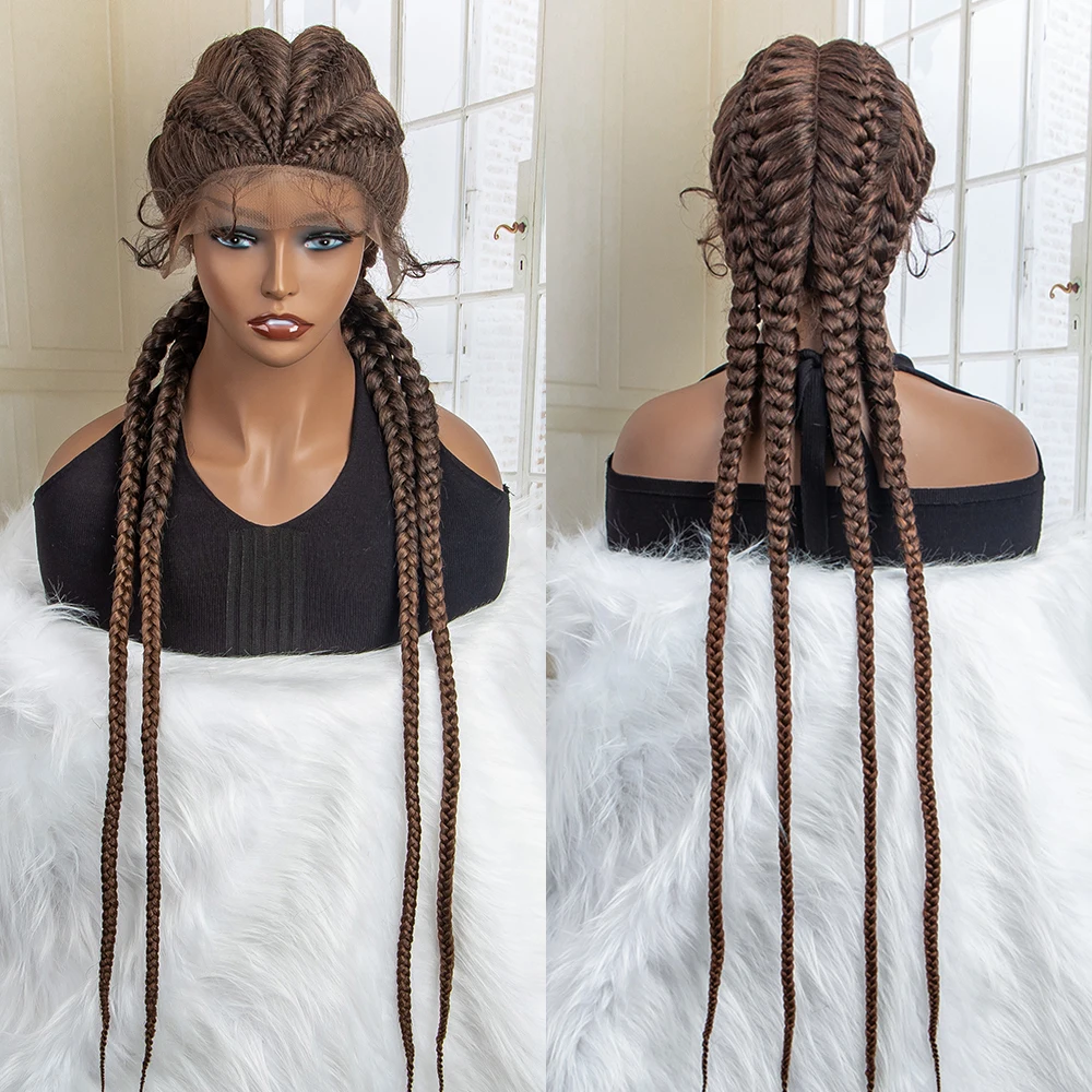 Box Braided Lace Frontal Wig 36 Inches Long Dutch Braided Synthetic Wigs with Baby Hair for Black Women Box Braid Wigs