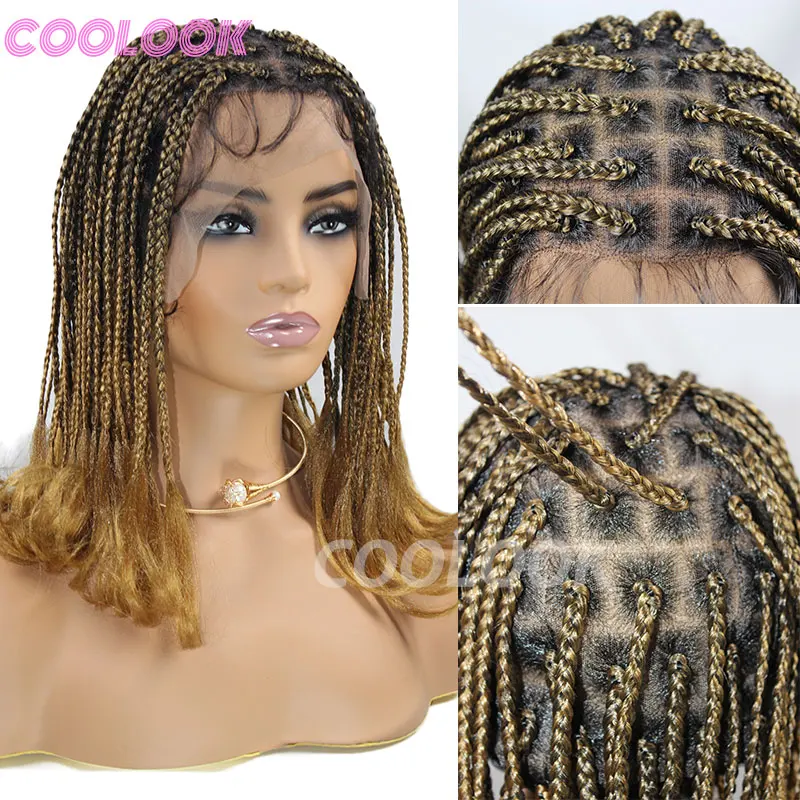 Box Braided Wigs For Black Women Crochet Hair Full Lace Wigs Cornrow Ombre Blonde African Synthetic Short Bob Braiding Hair Wig