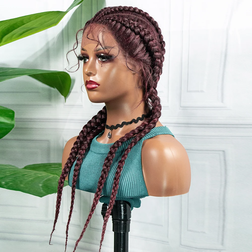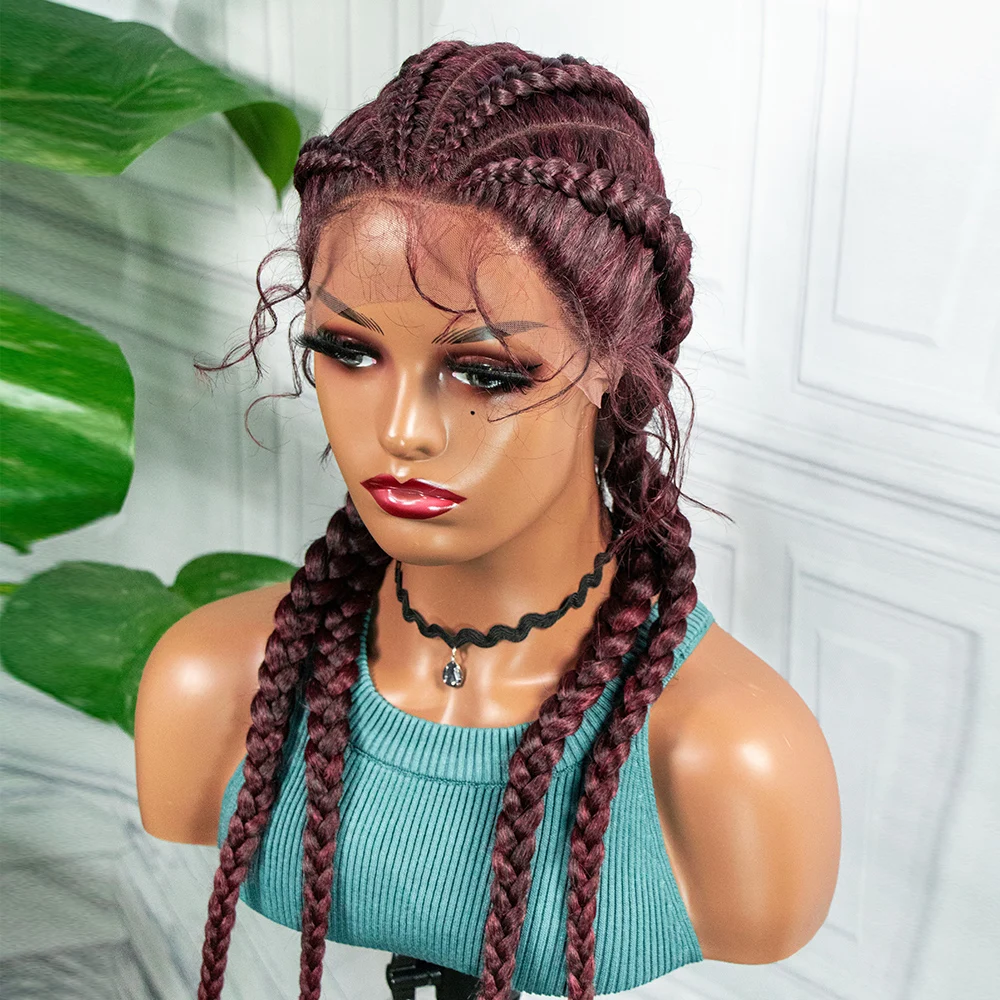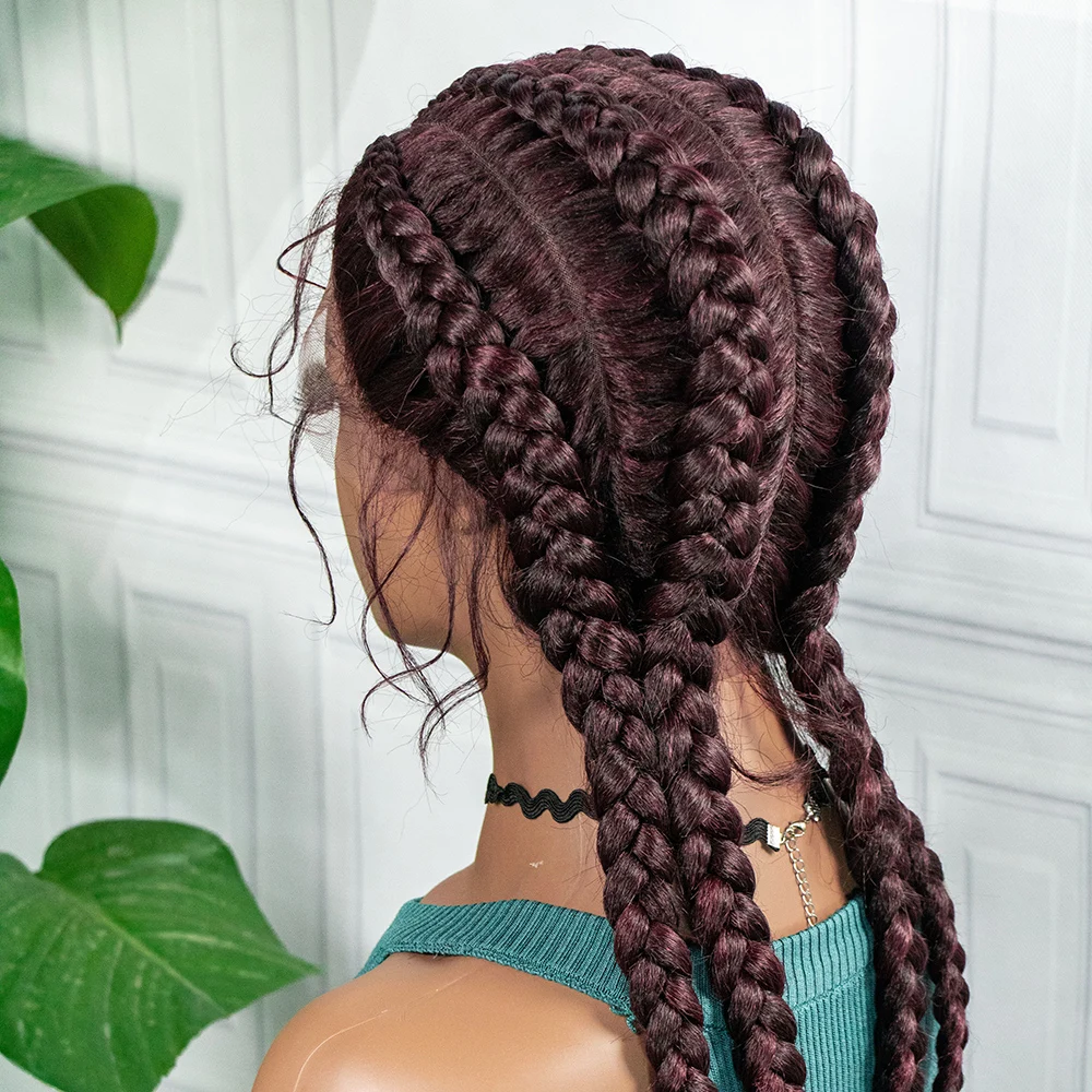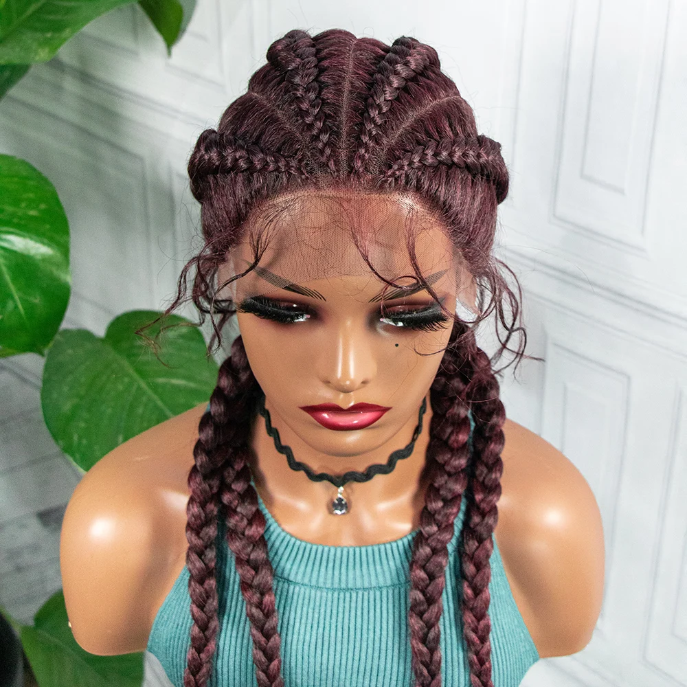 Box Braided Wigs With Baby Hair Medium Long Synthetic 26 Inches Heat Resistant Braiding Hair WigFor Black Women Afro Wig