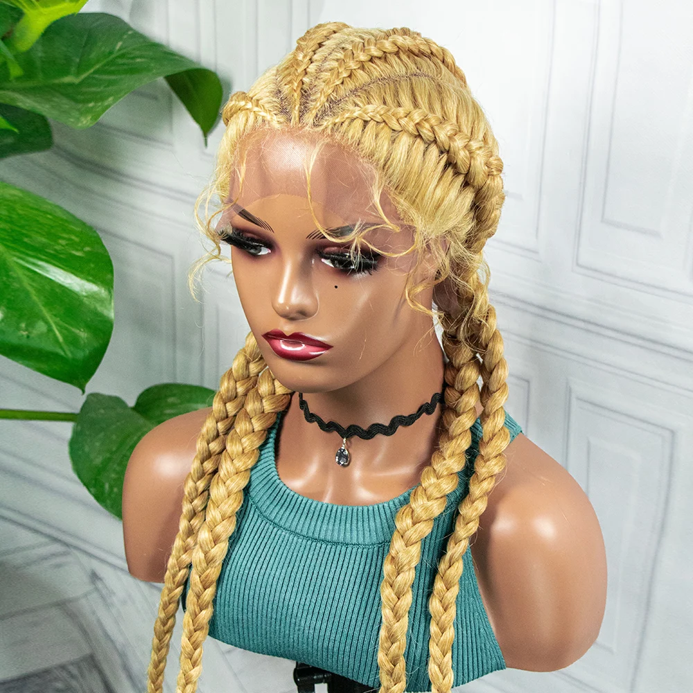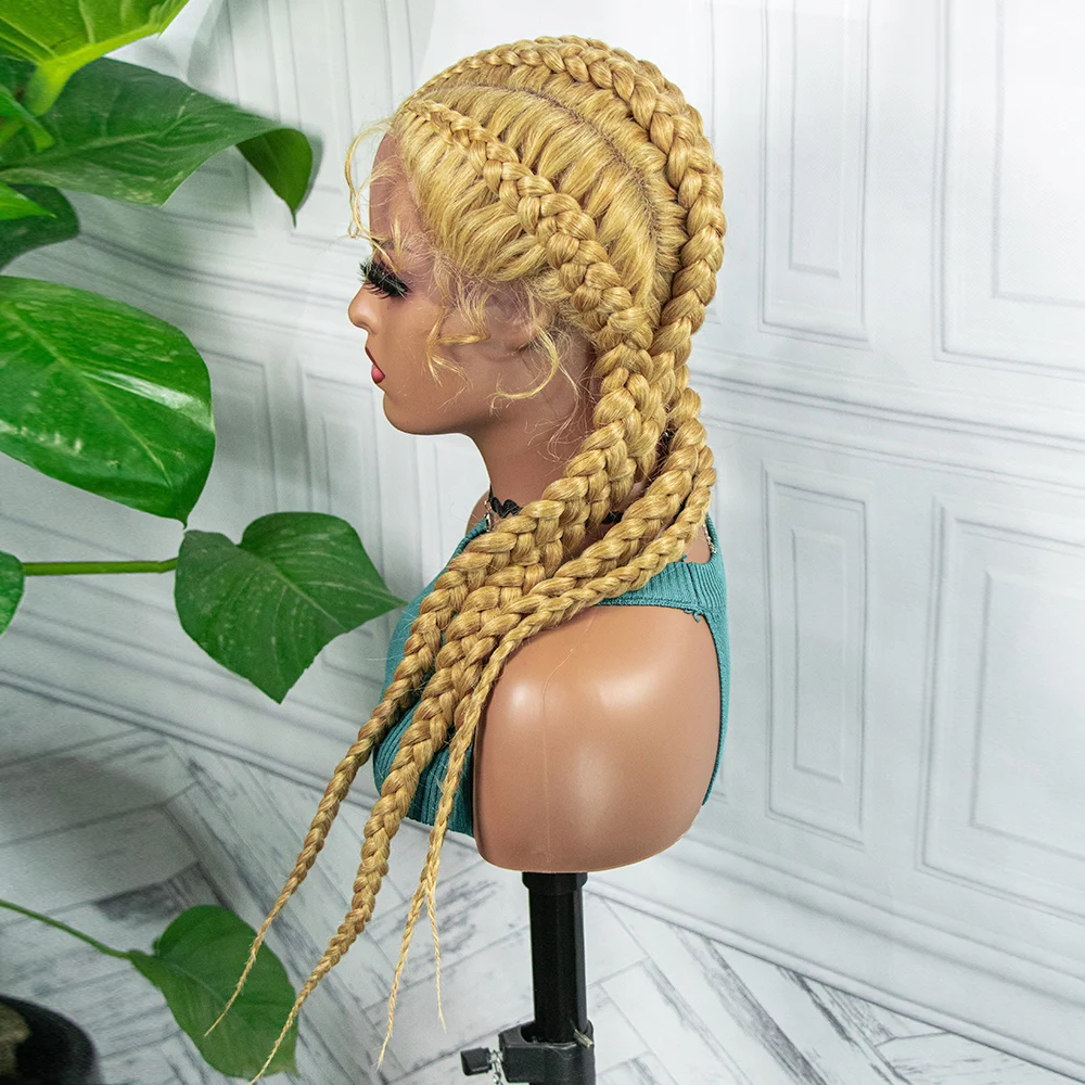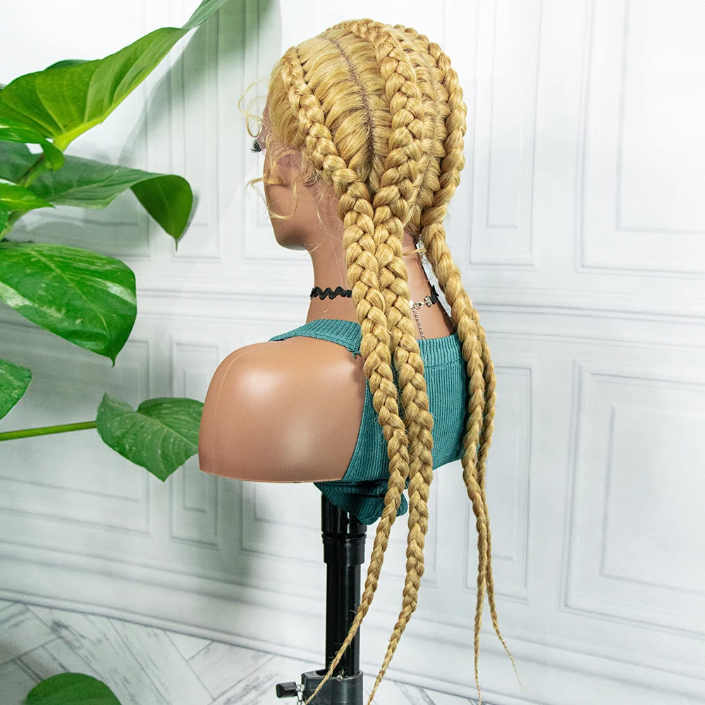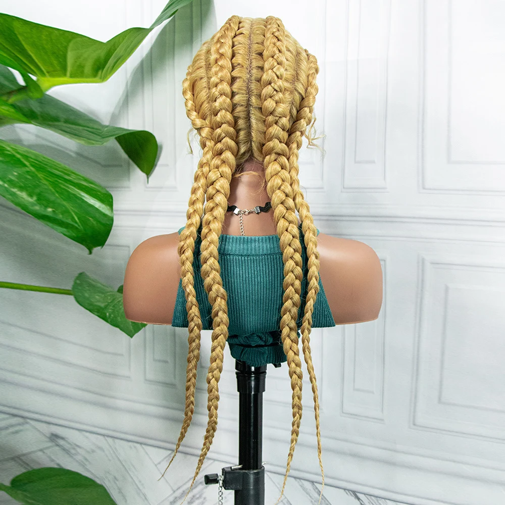 Box Braided Wigs With Baby Hair Medium Long Synthetic 26 Inches Heat Resistant Braiding Hair WigFor Black Women Afro Wig