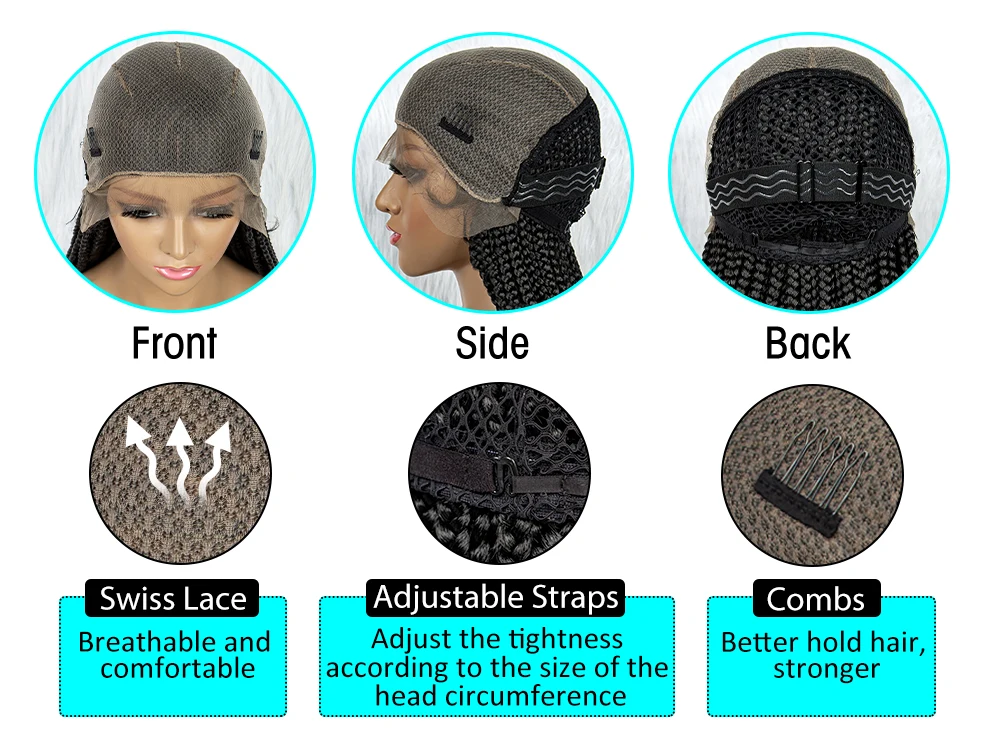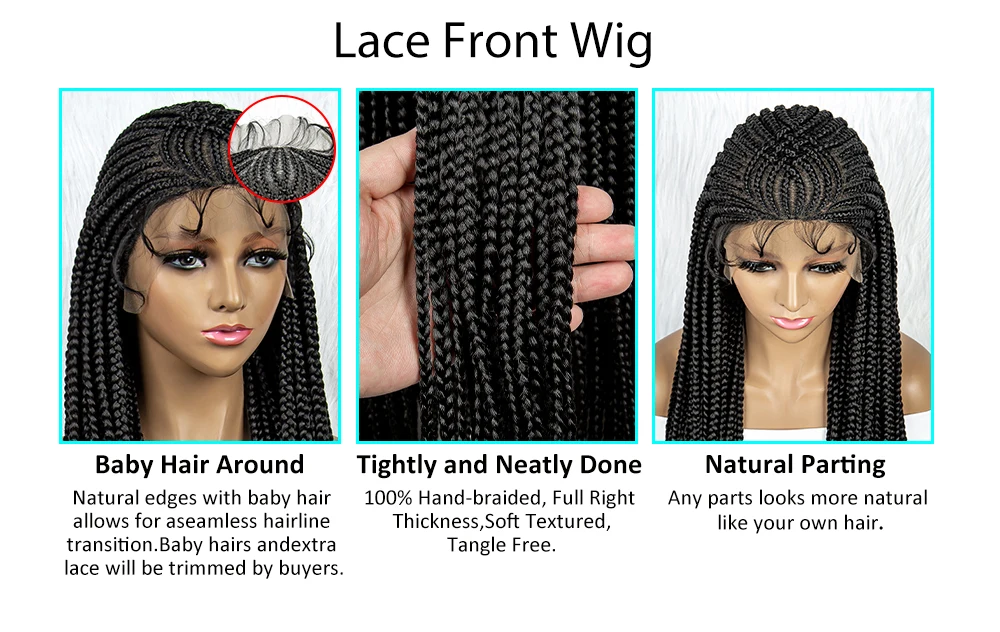 Braided Wigs For Black Women Cornrow Box Braids Wig With Baby Hair Synthetic Lace Front Wig Braid African