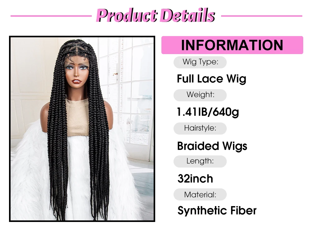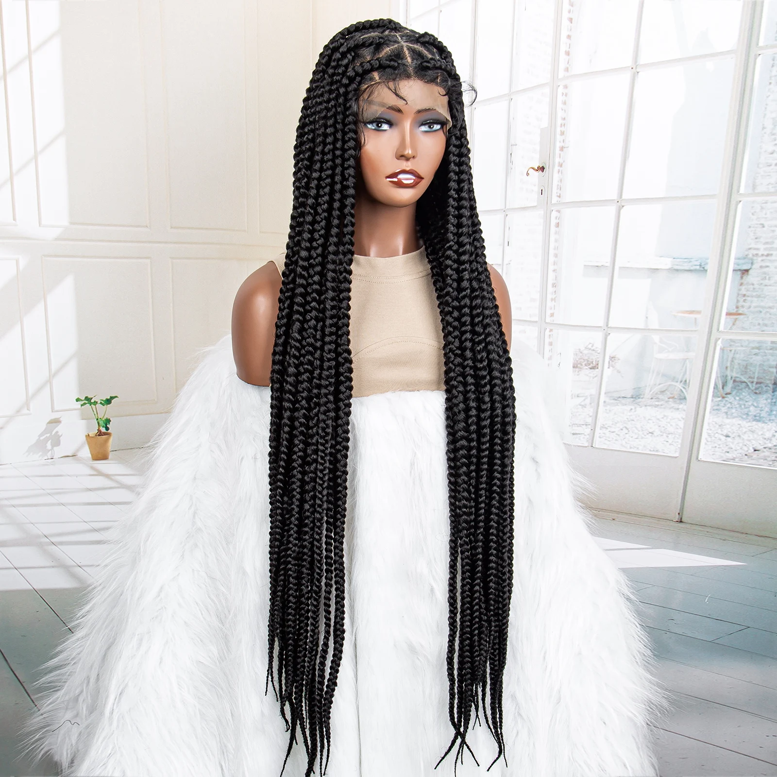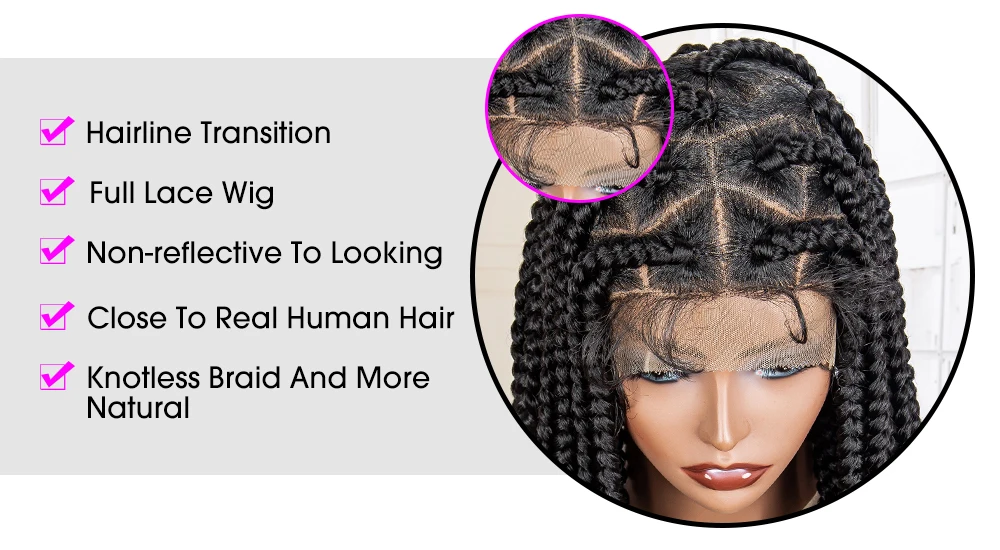 Braided Wigs for Black Women Synthetic Full Lace Wig Knotless Box Braids Wig Lace Frontal Cornrow Braided Wigs with Baby Hair