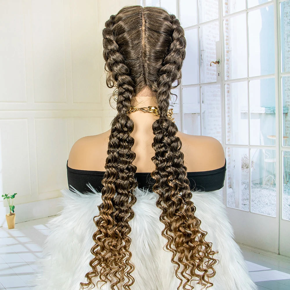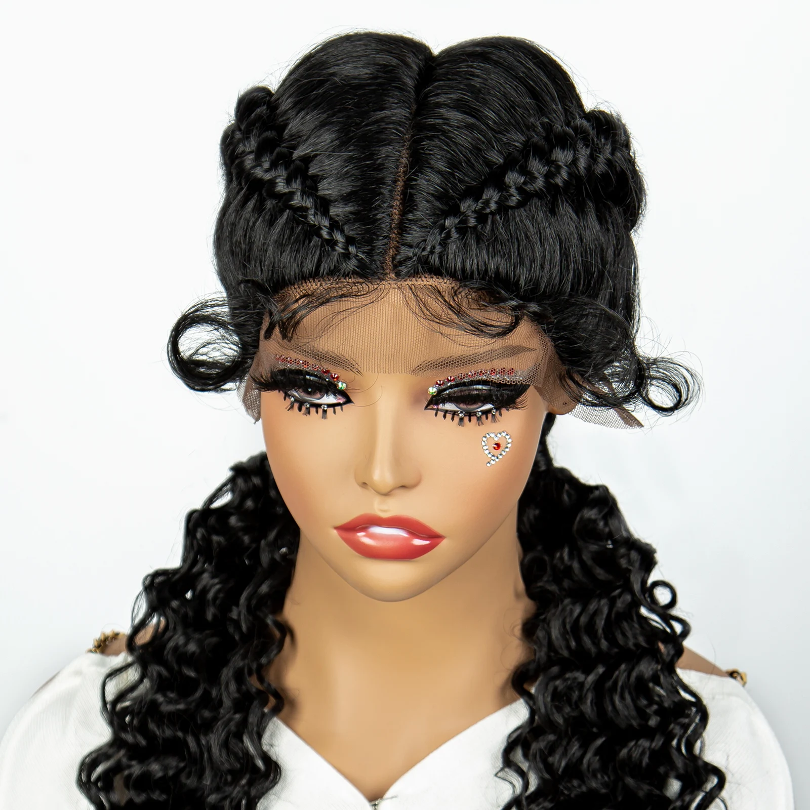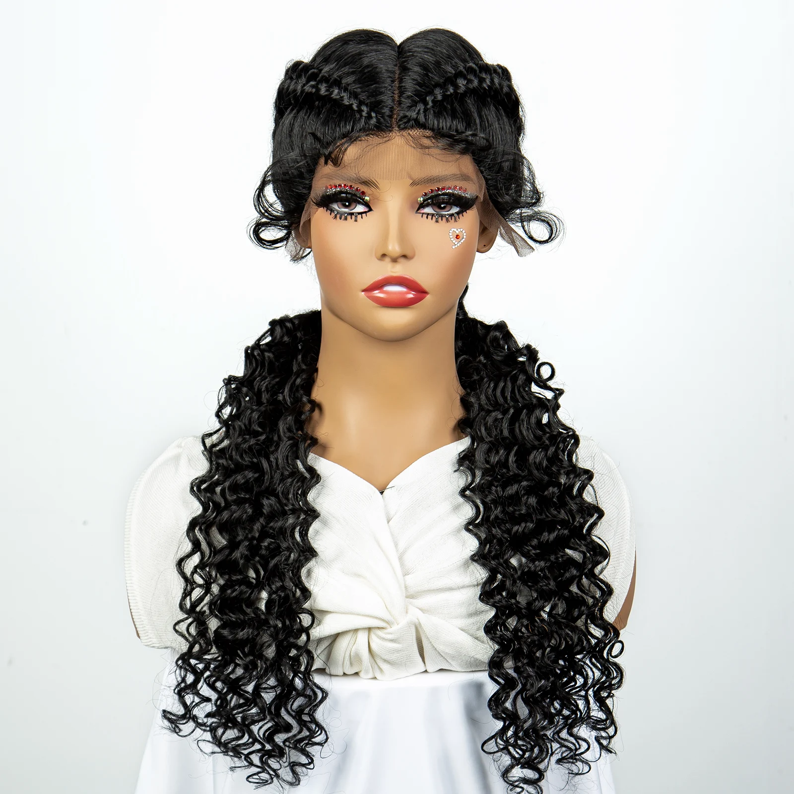 Braided Wigs Synthetic Lace Front Hair Wig Curly Water Wave Wig Afro Frontal Cornrow Twist Boxing Braided Wigs for African Woman