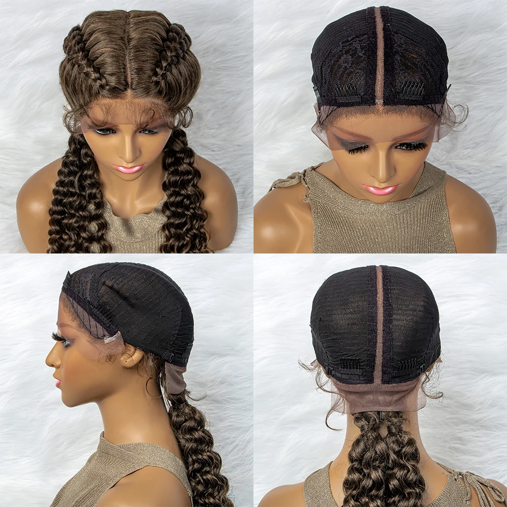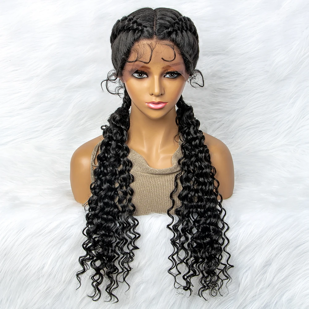 Braided Wigs Synthetic Lace Front Hair Wig Curly Water Wave Wig For African Woman Afro Frontal Cornrow Twist Boxing Braided Wigs