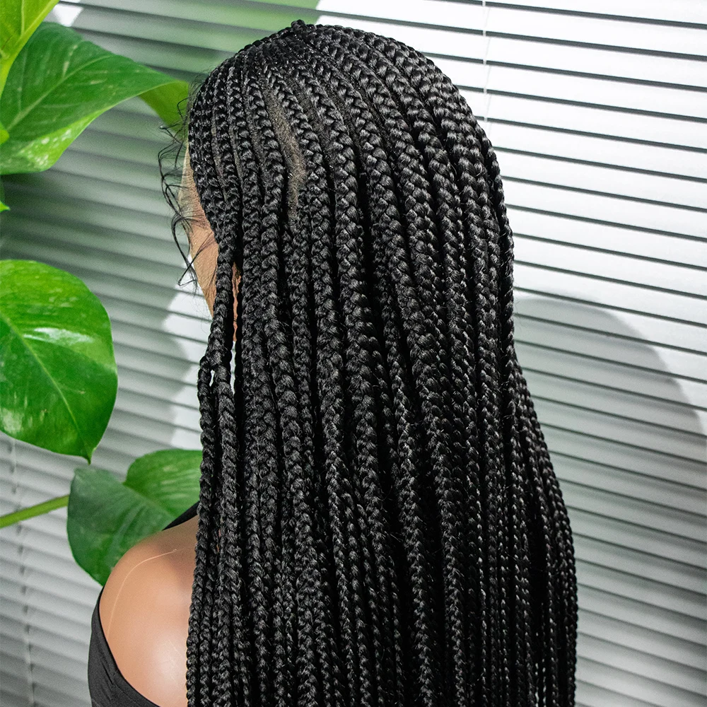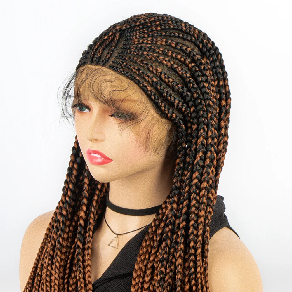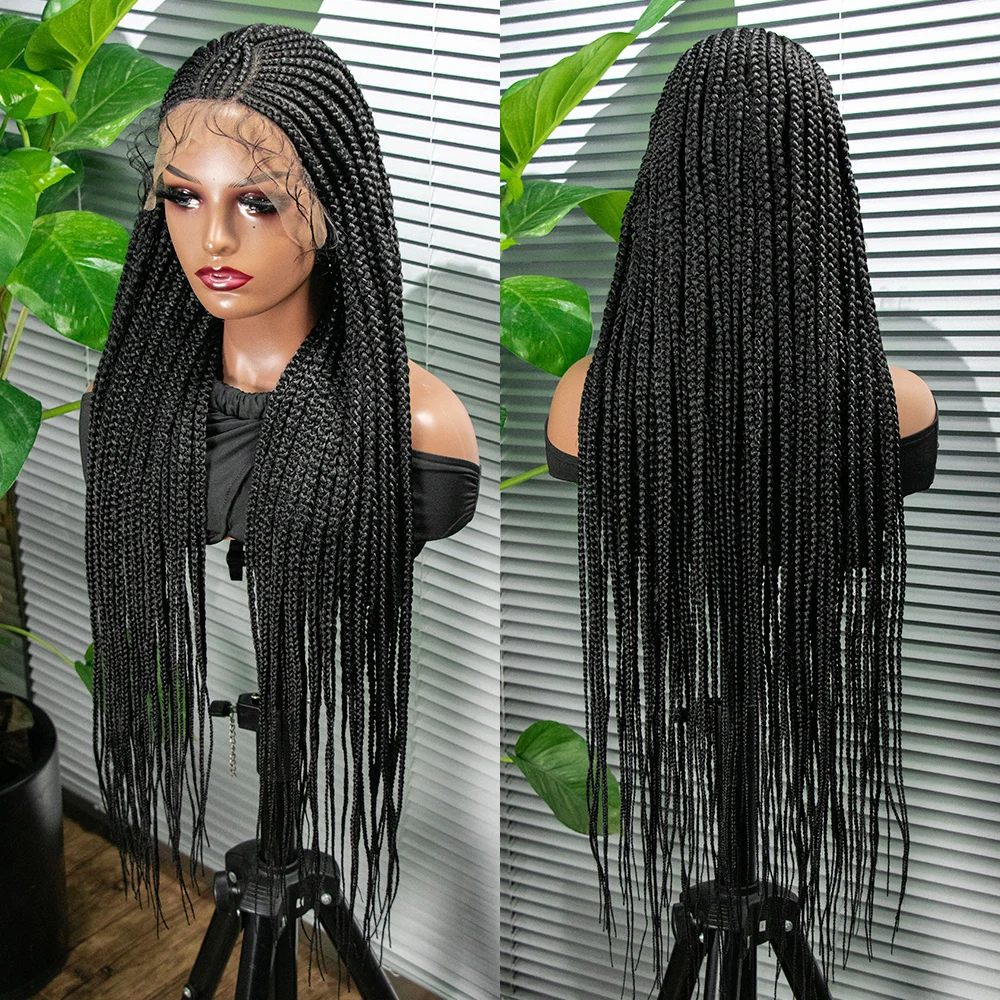 Braided Wigs Synthetic Lace Front Wig For Woman 34 Inches Box Braid Wig With Baby Hair Daily Wear Full Lace Frontal Wig