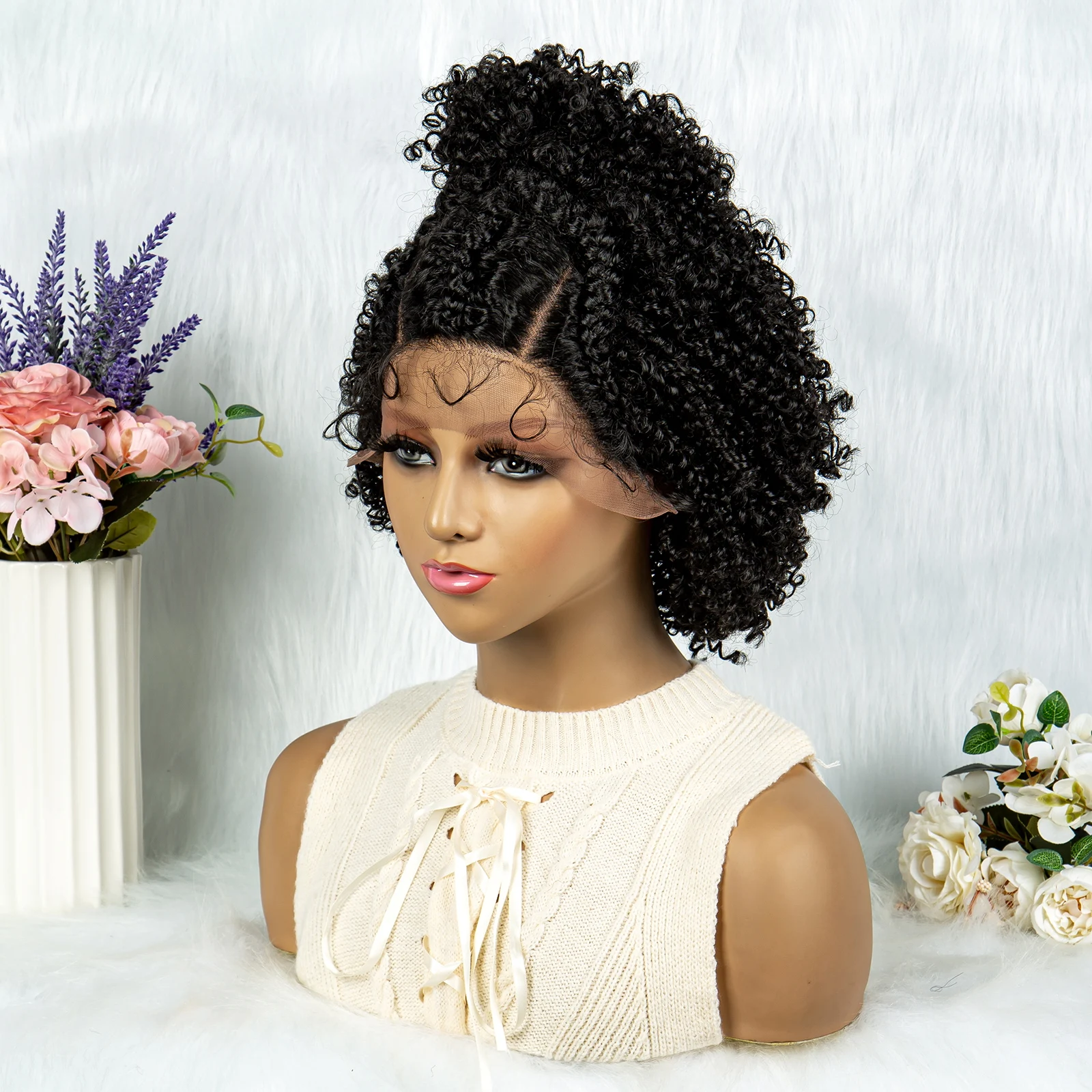 Braided Wigs Synthetic Lace Wig Braided Wigs With Baby Hair For Black Women Wig Jerry Curly Hair Wigs Curly Bob Wig