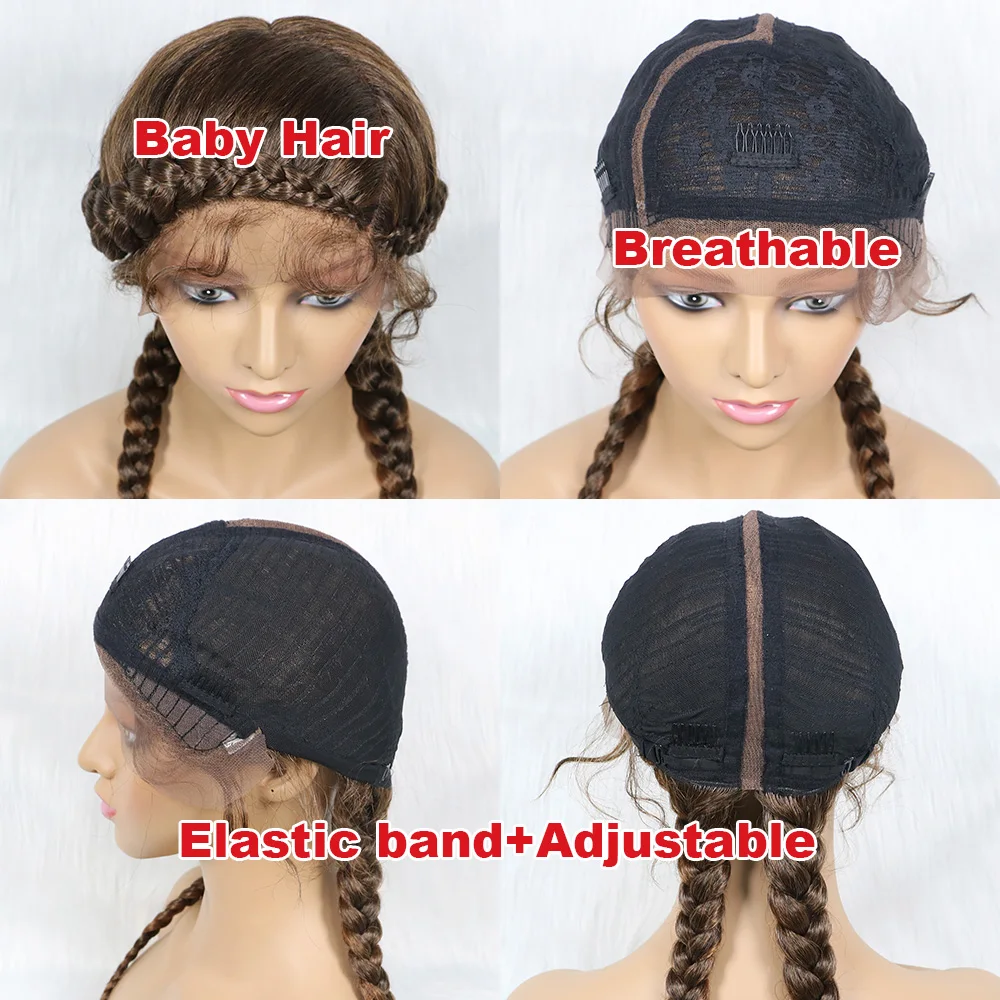 Braided Wigs With Baby Hair 24 Inches Dutch Cornrow Box Braid Wigs For Black Women Lace Front Synthetic Wigs Afro Wig