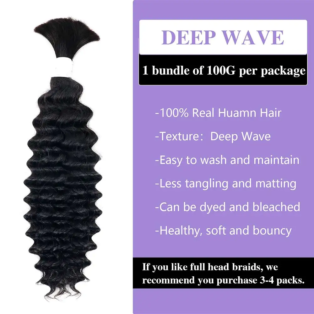 Braiding Hair Human Bulk Hair Deep Wave Bulk Human Braiding Hair for Braids Hair No Weft Deep Wave Human Hair Extension 50-80cm