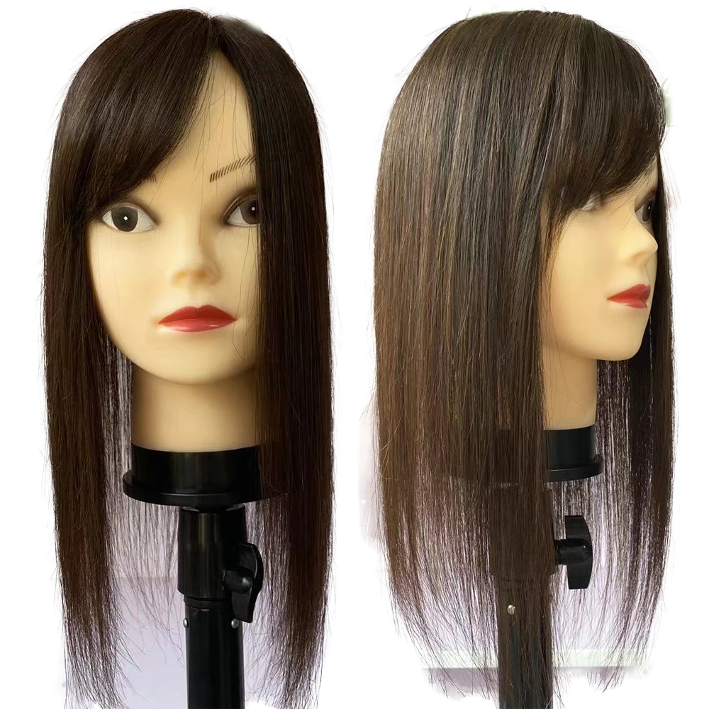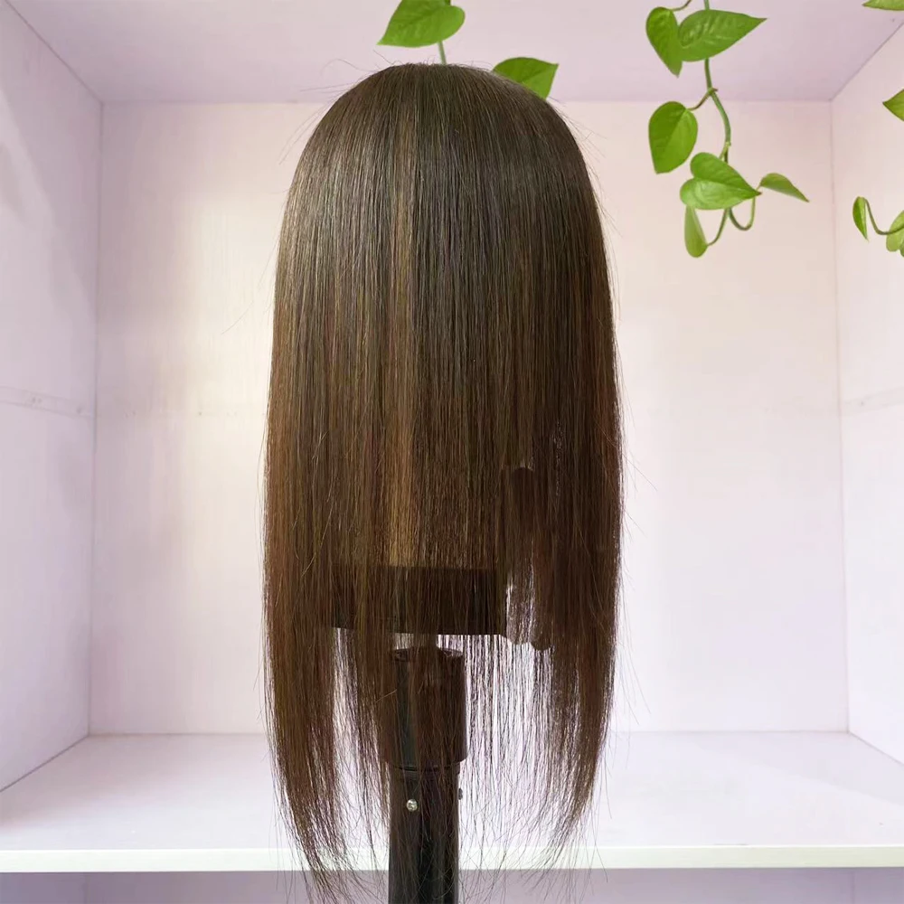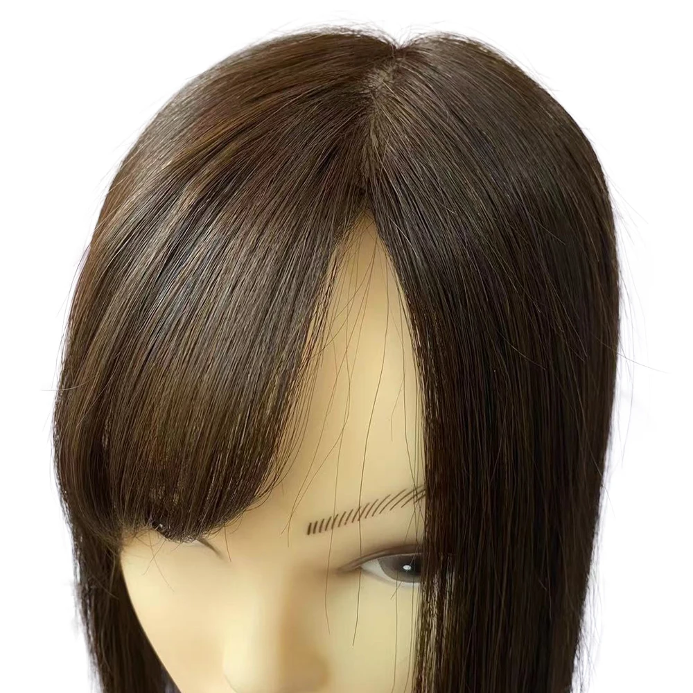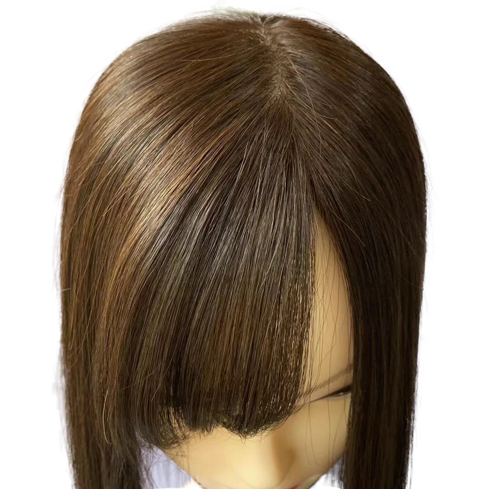Brown Human Hair Topper with Side Bangs for Women Overlays Skin Base Toupee 5X5inch Scalp Top 4D Fringe Clip In Hairpieces