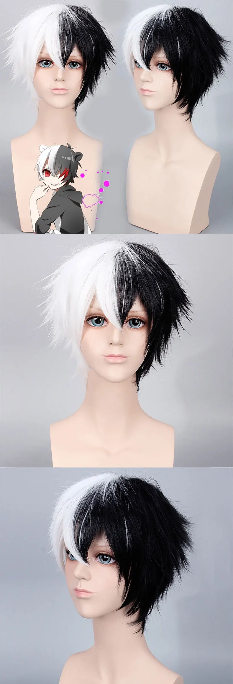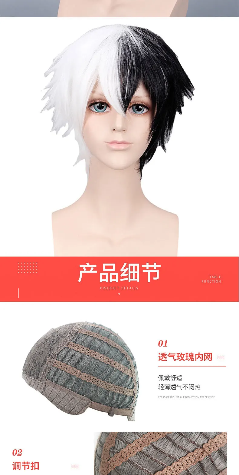 Bullet Theory Breaks COS Wig Manufacturer Direct Sales Black & White Bear Gradient Short Hair Men's Anime Wig