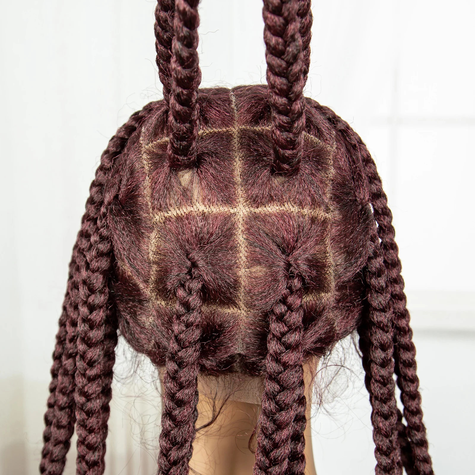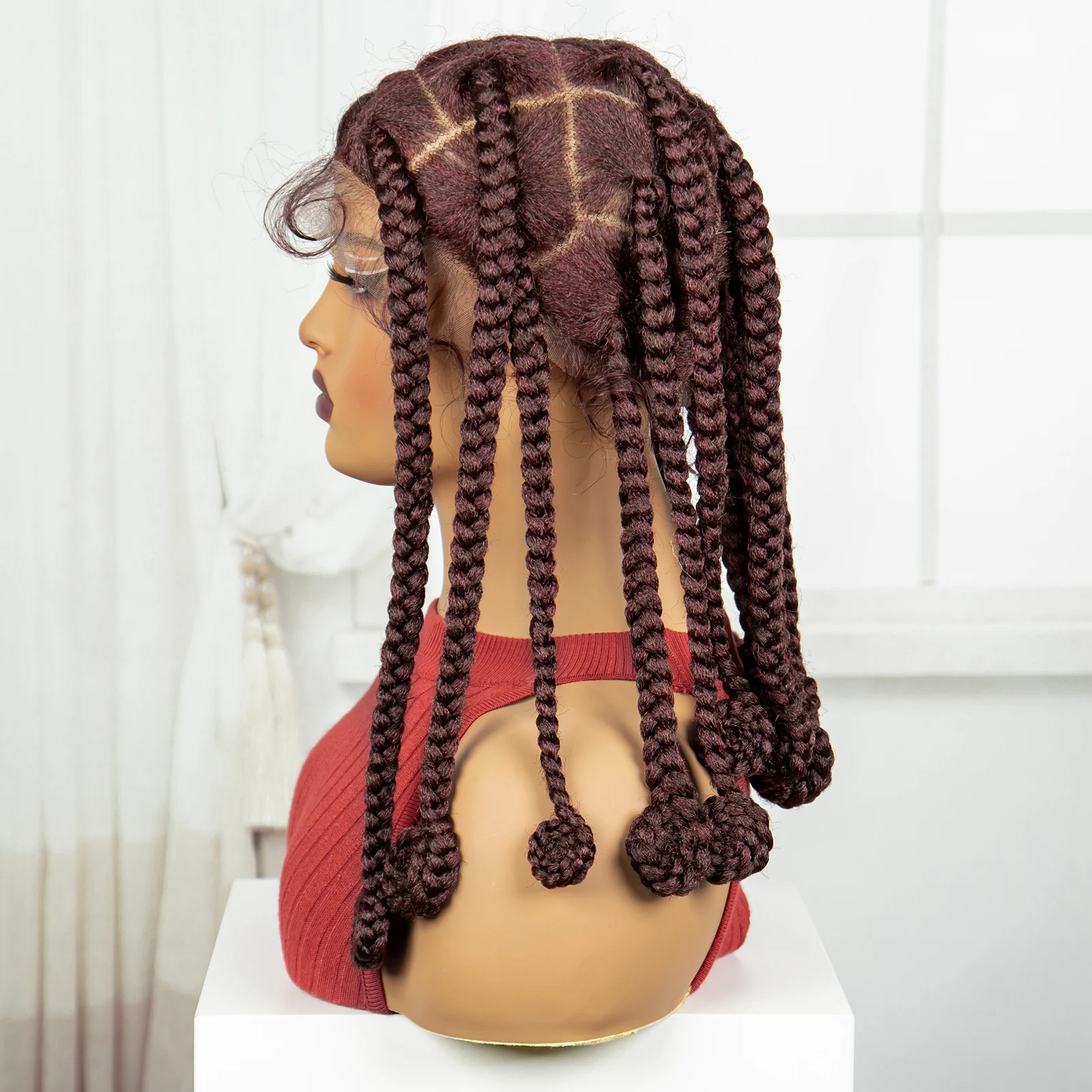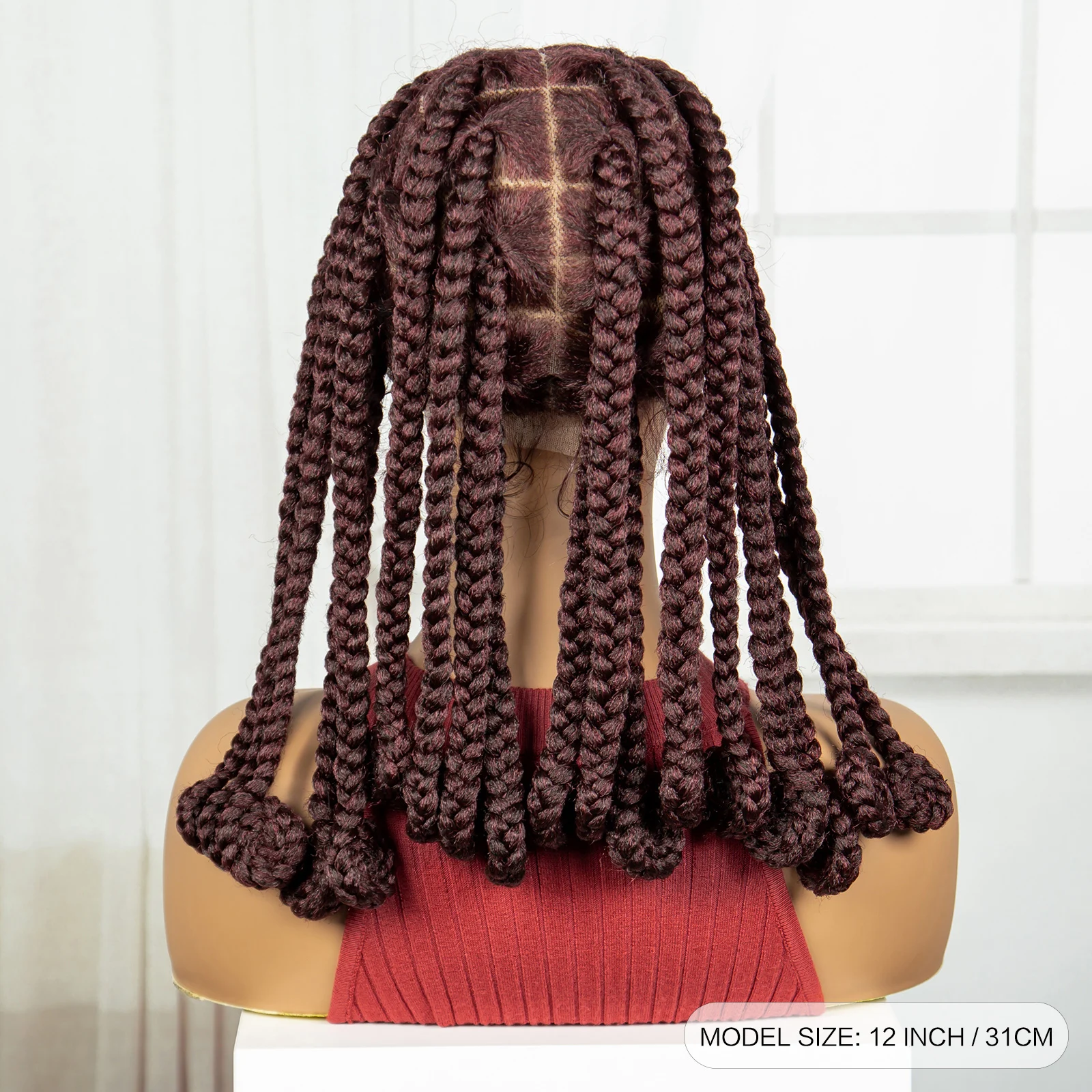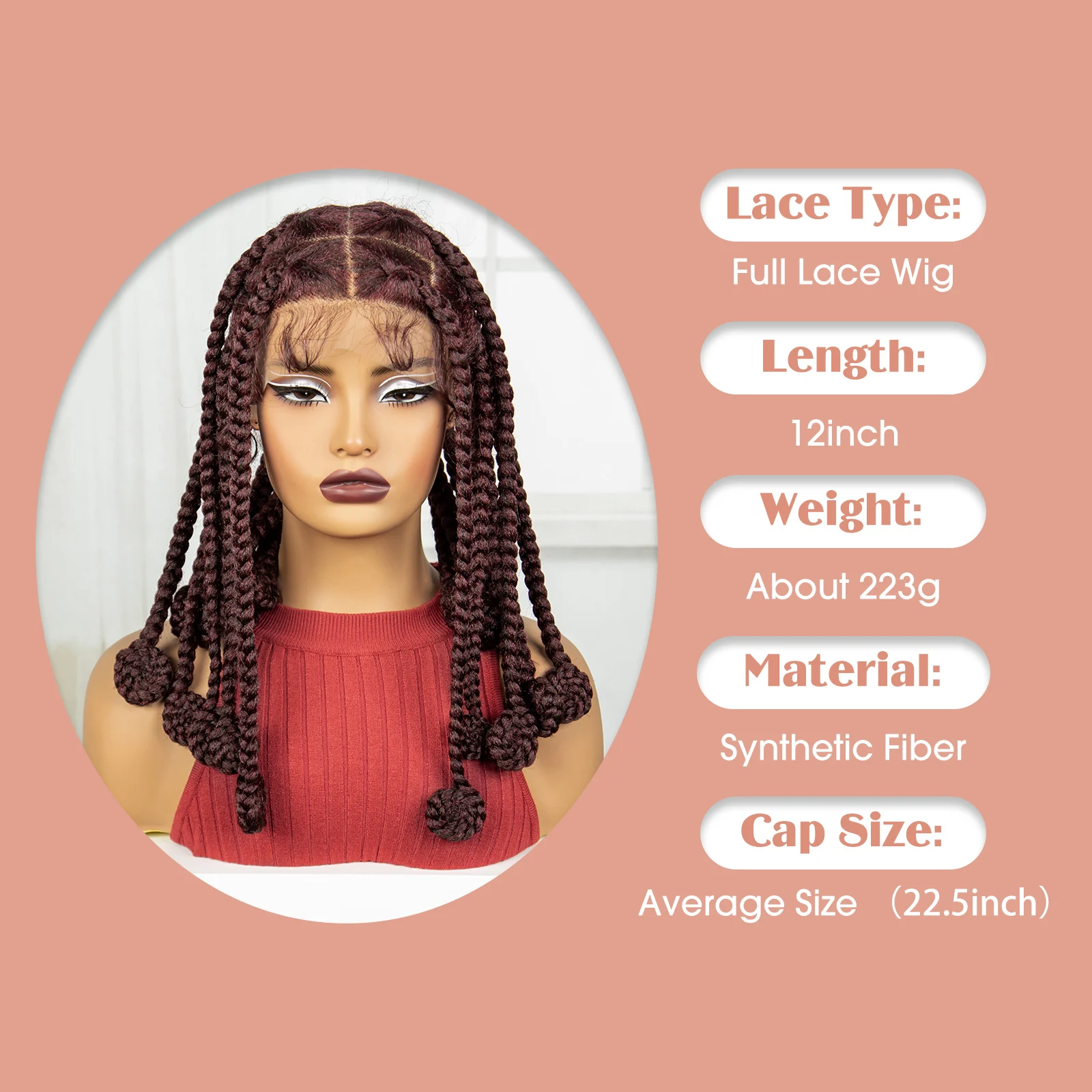 Burgundy 12 Inch Synthetic Braided Wigs Transparent Full Lace Hair Wigs Bantu Knotless Box Braids with Baby Hair for Black Women