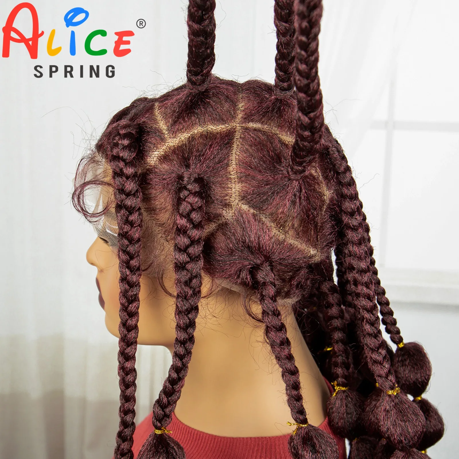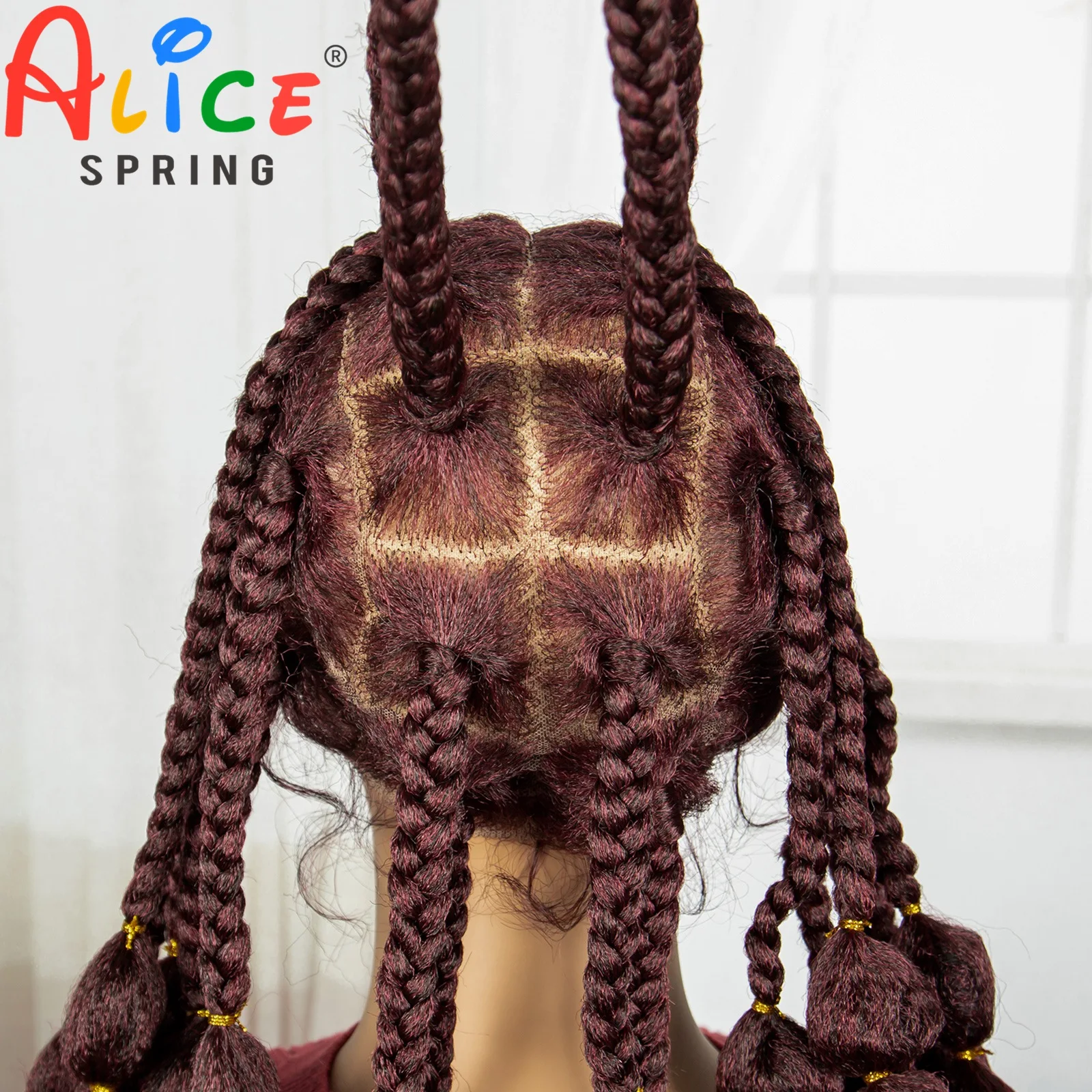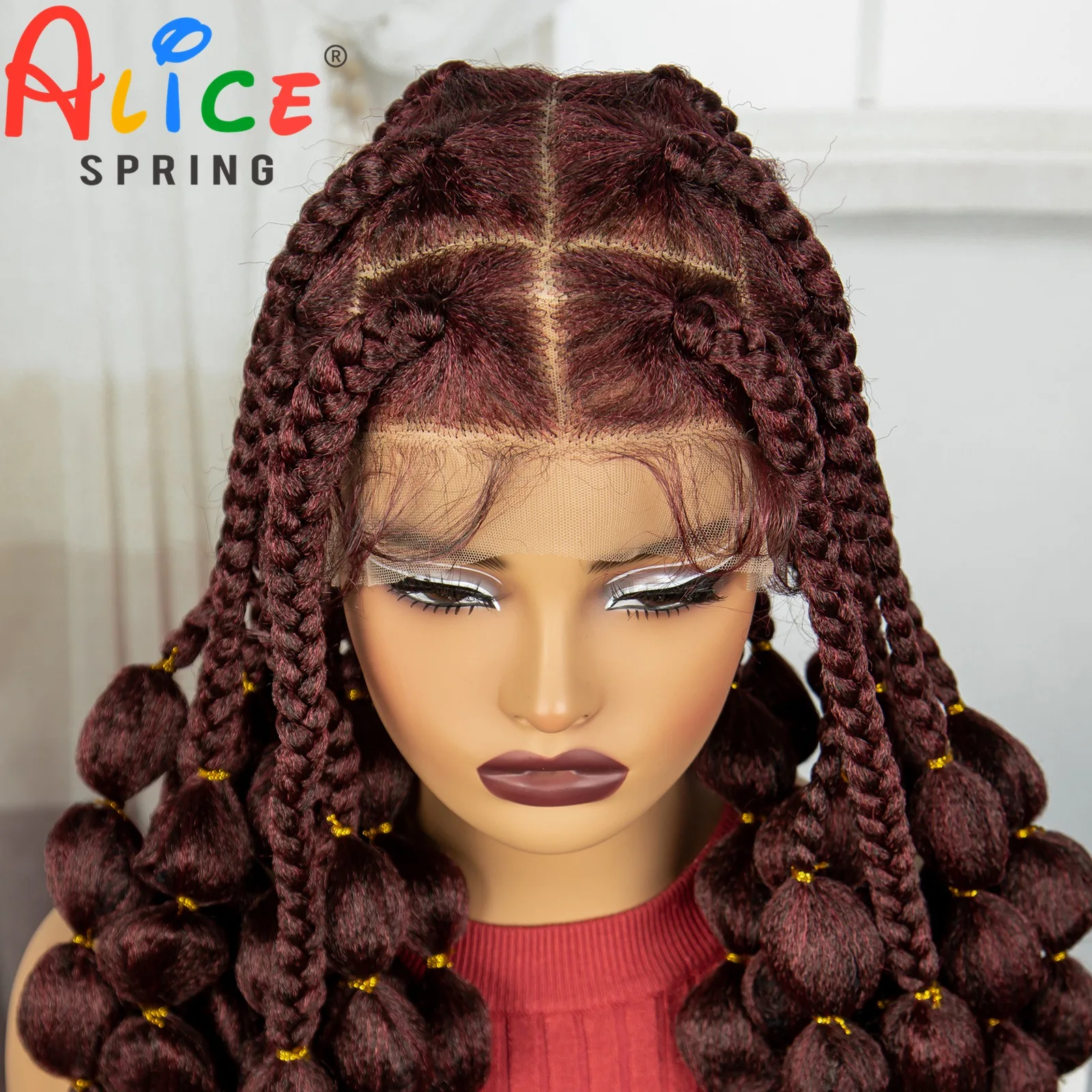 Burgundy 40 Inches Synthetic Full Lace Braided Wigs Synthetic Knotless Handmade Bantu Braids Lace Wig With Baby Hair For Women