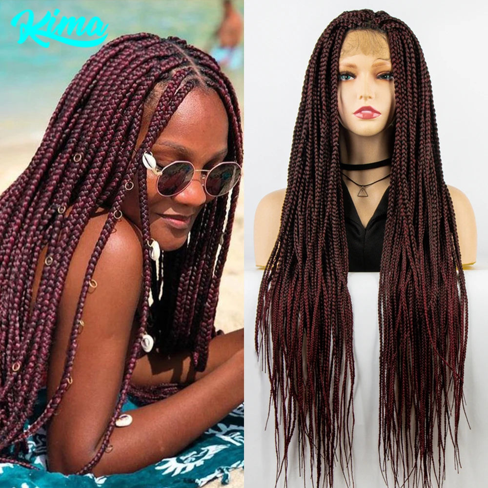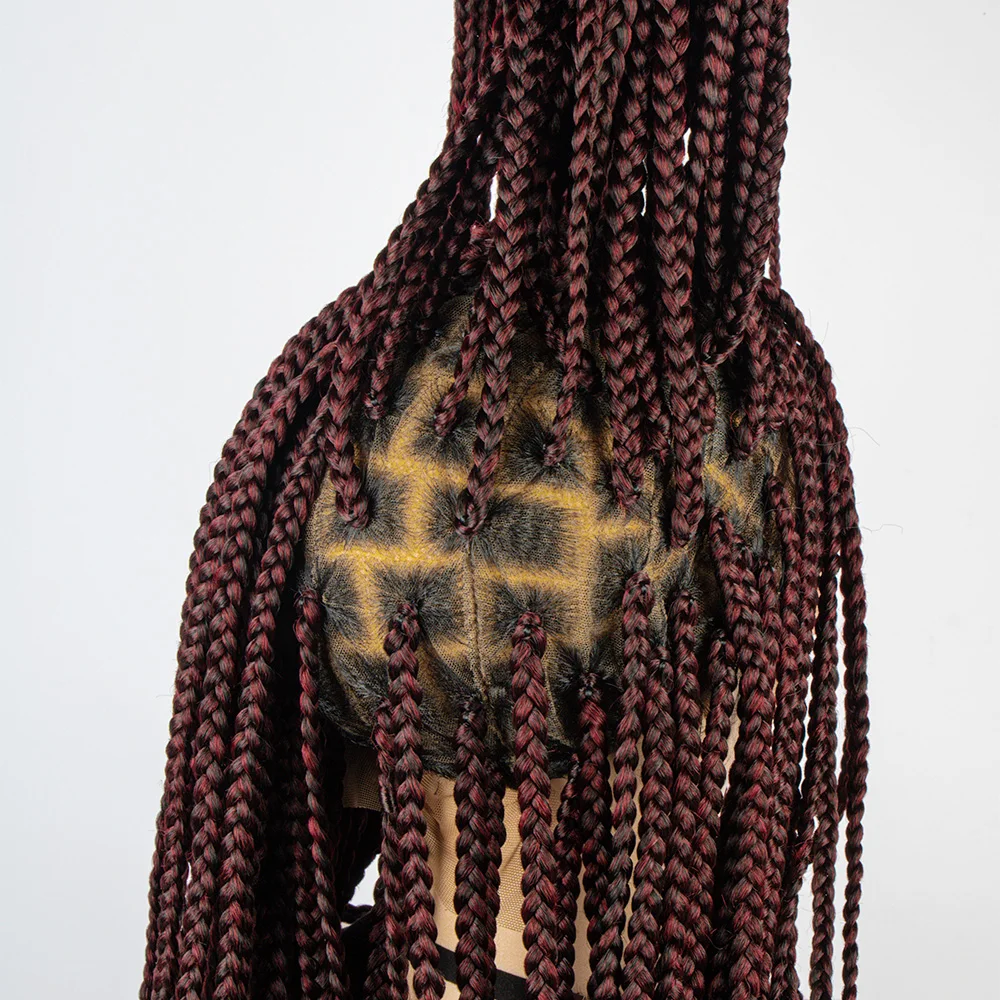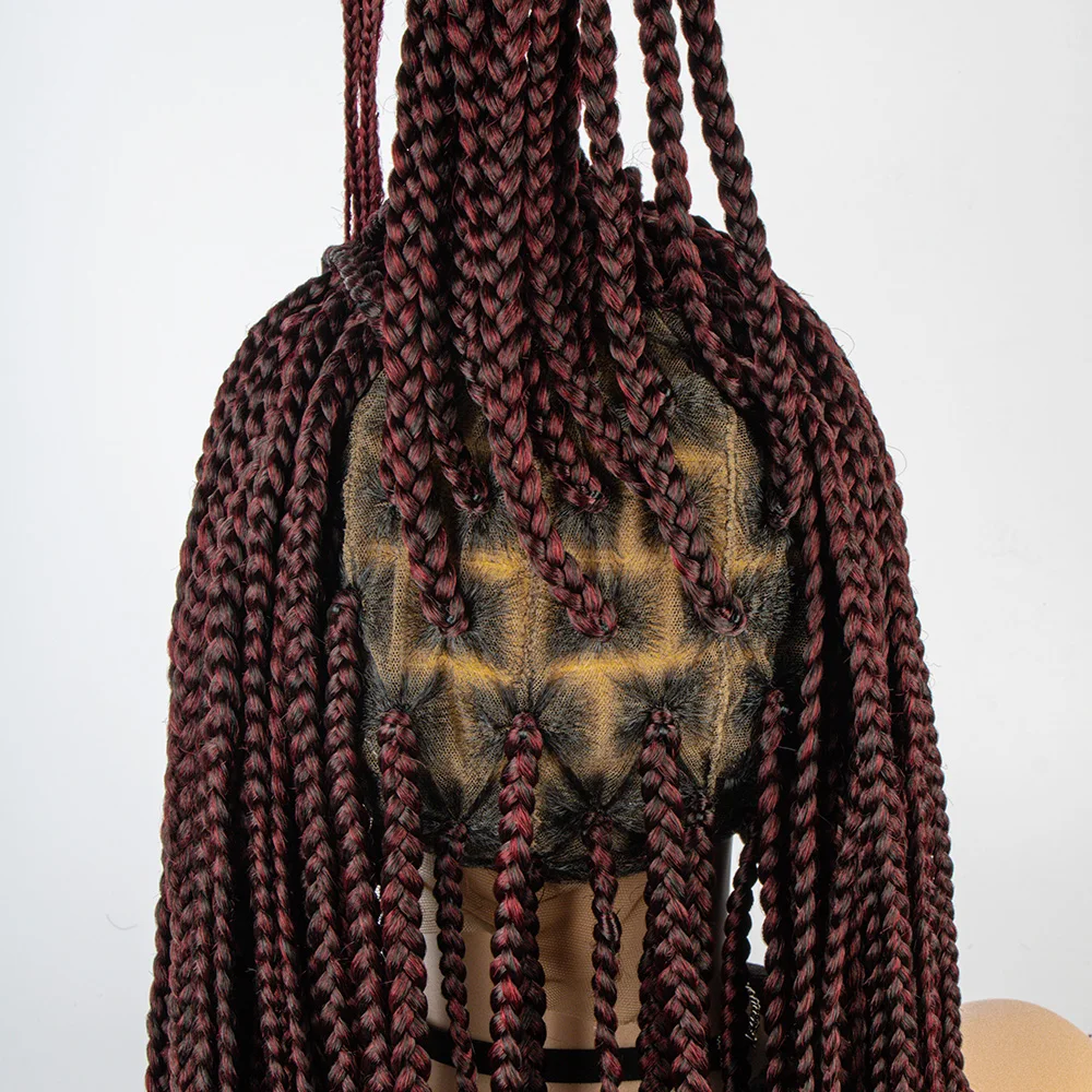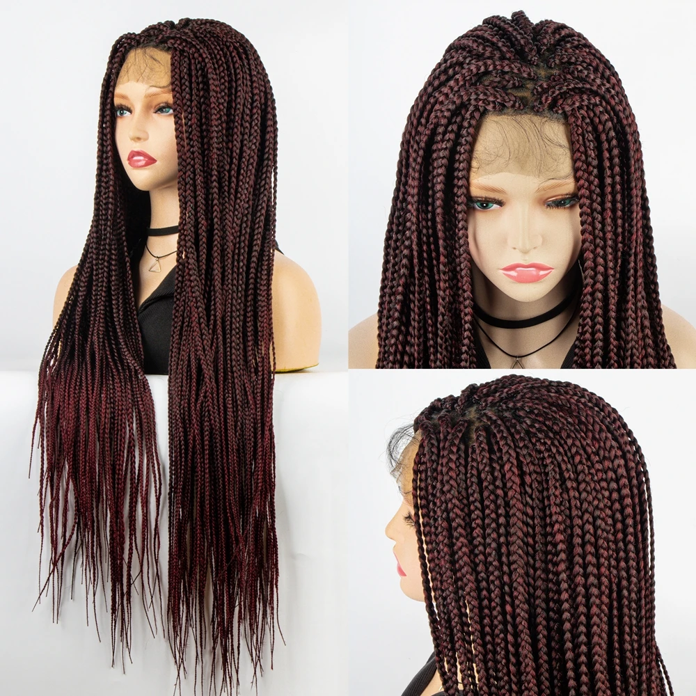 Burgundy Color Synthetic Full Lace Wig Braided Wigs Crochet Box Wig Braid 36 Inches Braiding Hair Knotless Box Braids Wigs