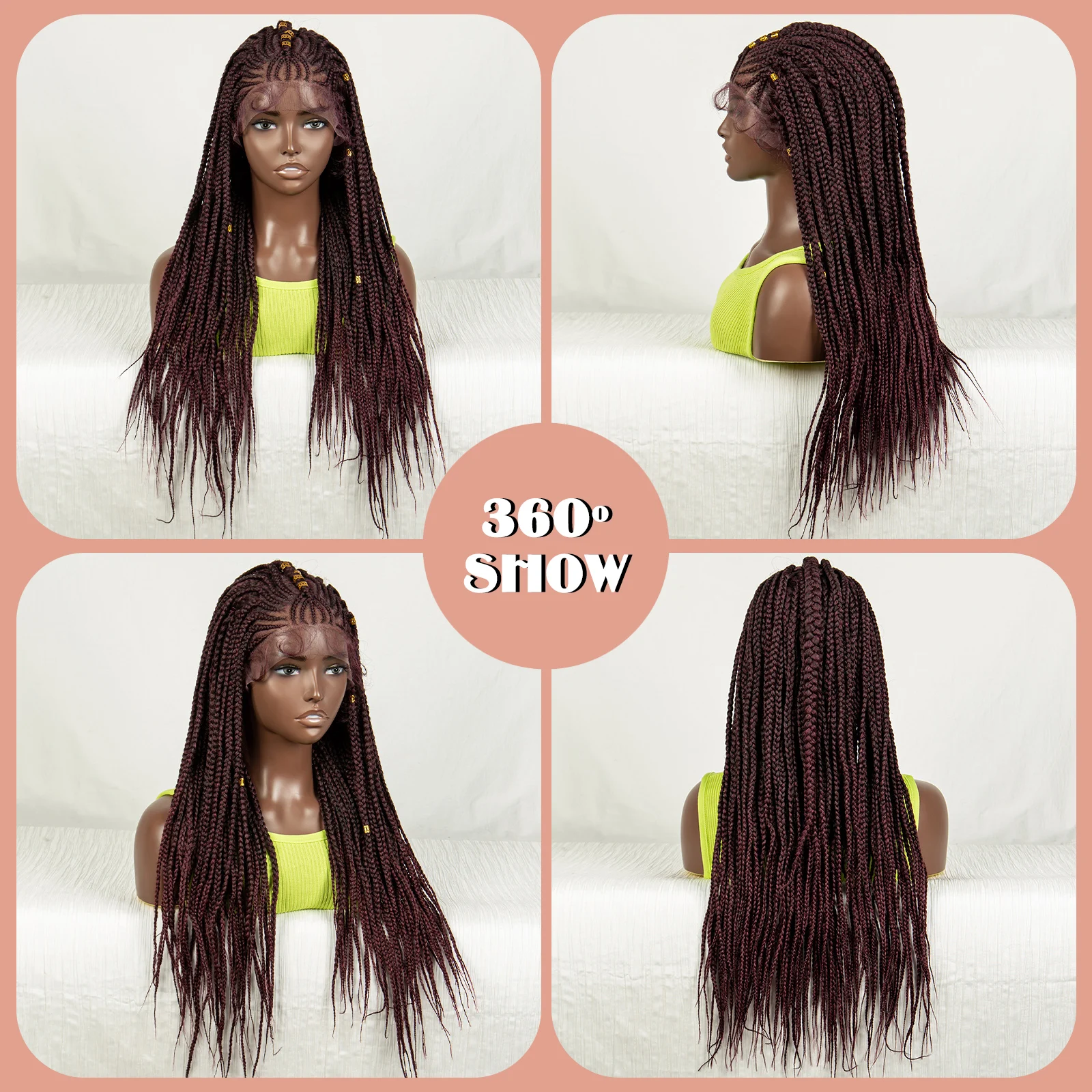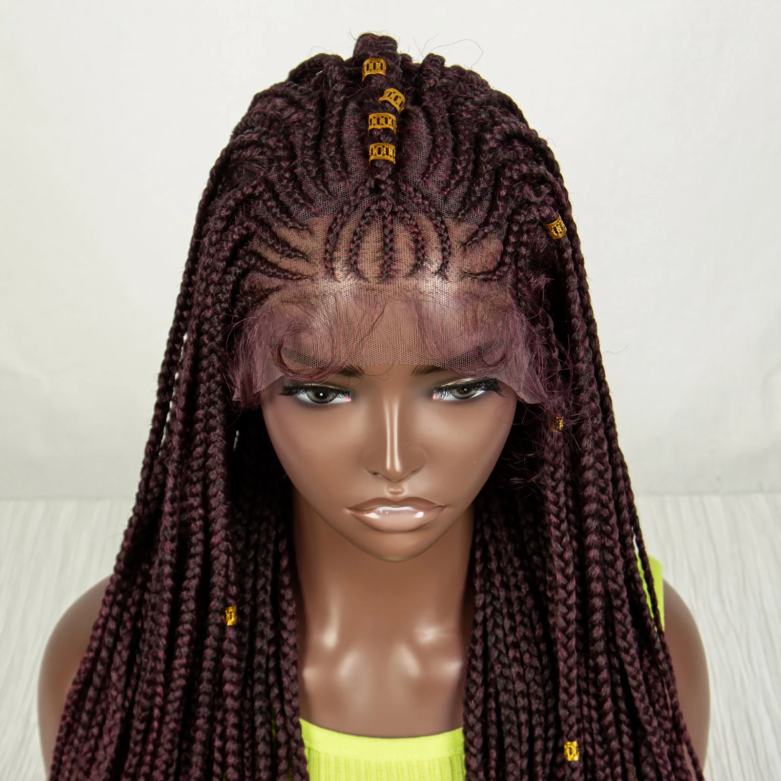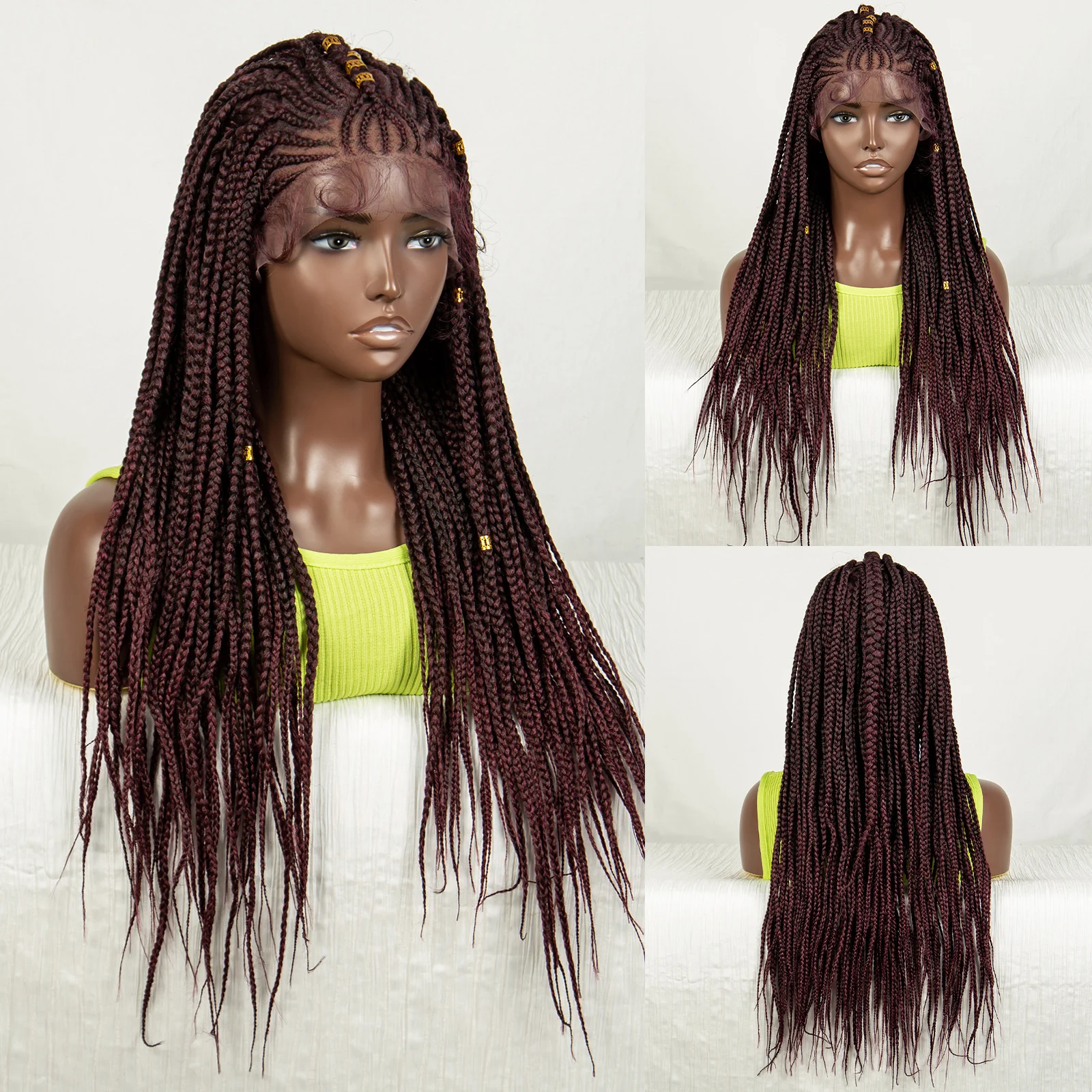 Burgundy Straight Braided Wigs Synthetic Lace Front Braids Wig with Baby Hair Cornrow Knotless Box Braiding Wig for Black Women