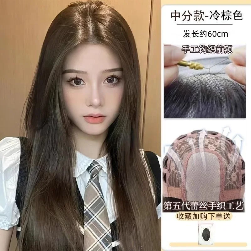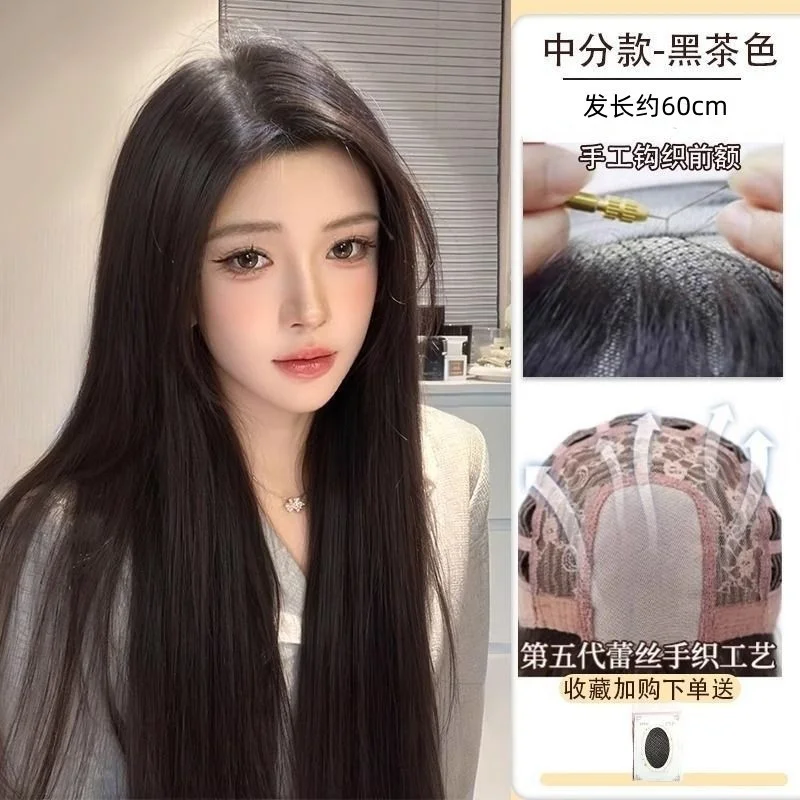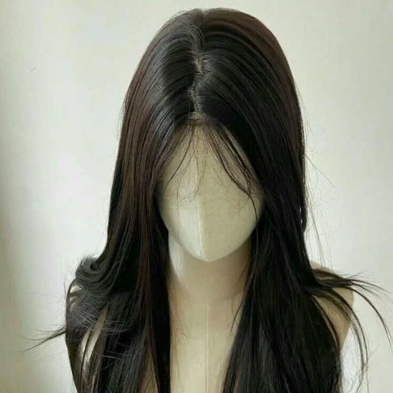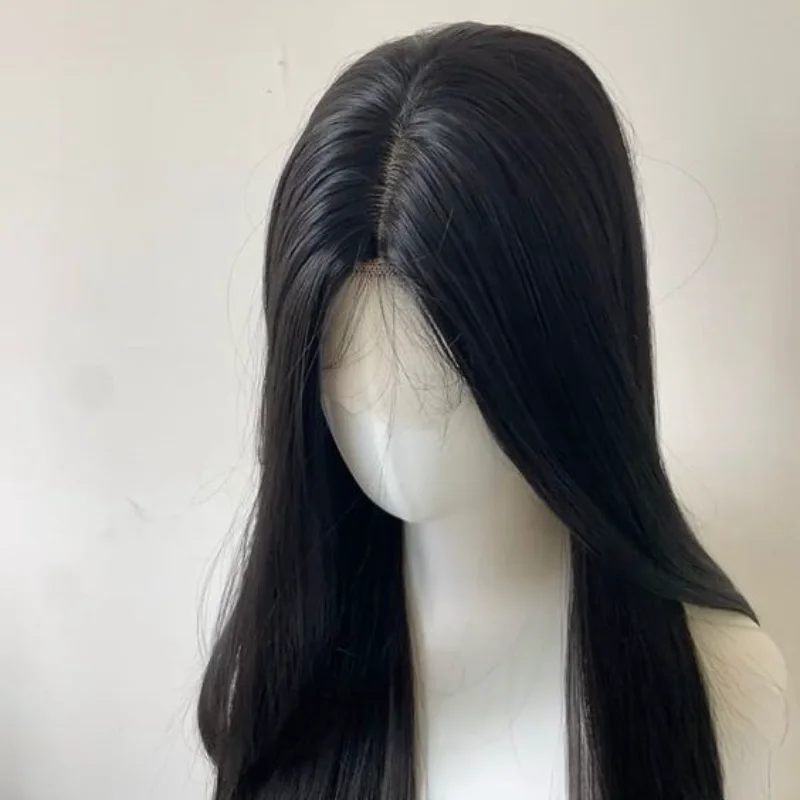 Camllia Black Wig with Bangs Long Straight Black Hair Lolita Wig for Women 24 Inch Headband Wig High Temperature Resistant Hair