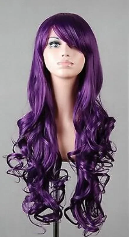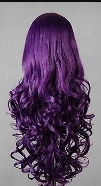 Charm Long Dark Purple Curly Cosplay Hair wig For Women’s Christmas Halloween Costume Party Wigs