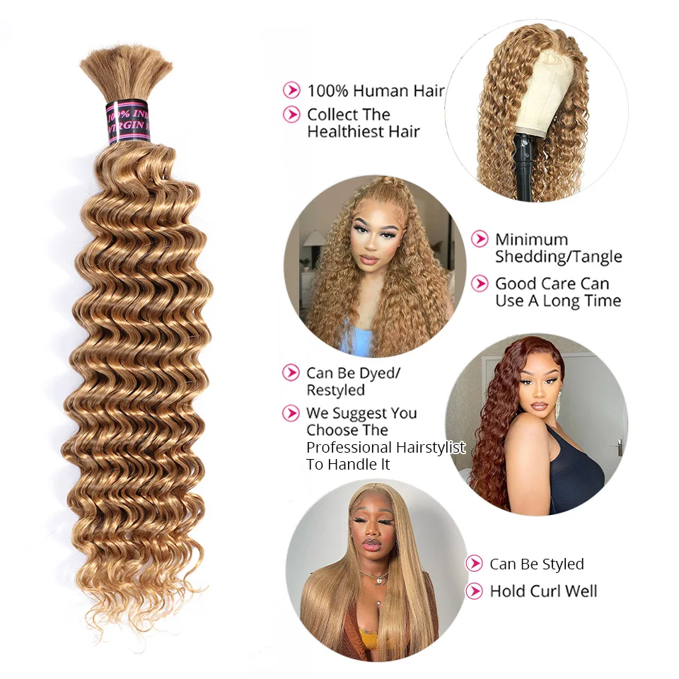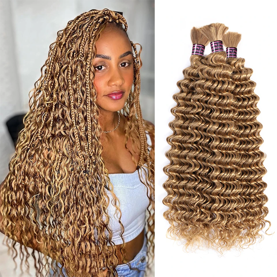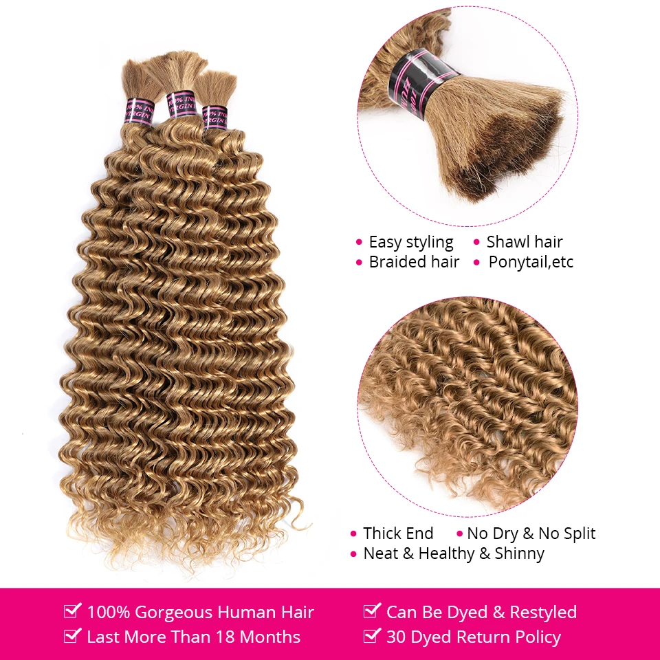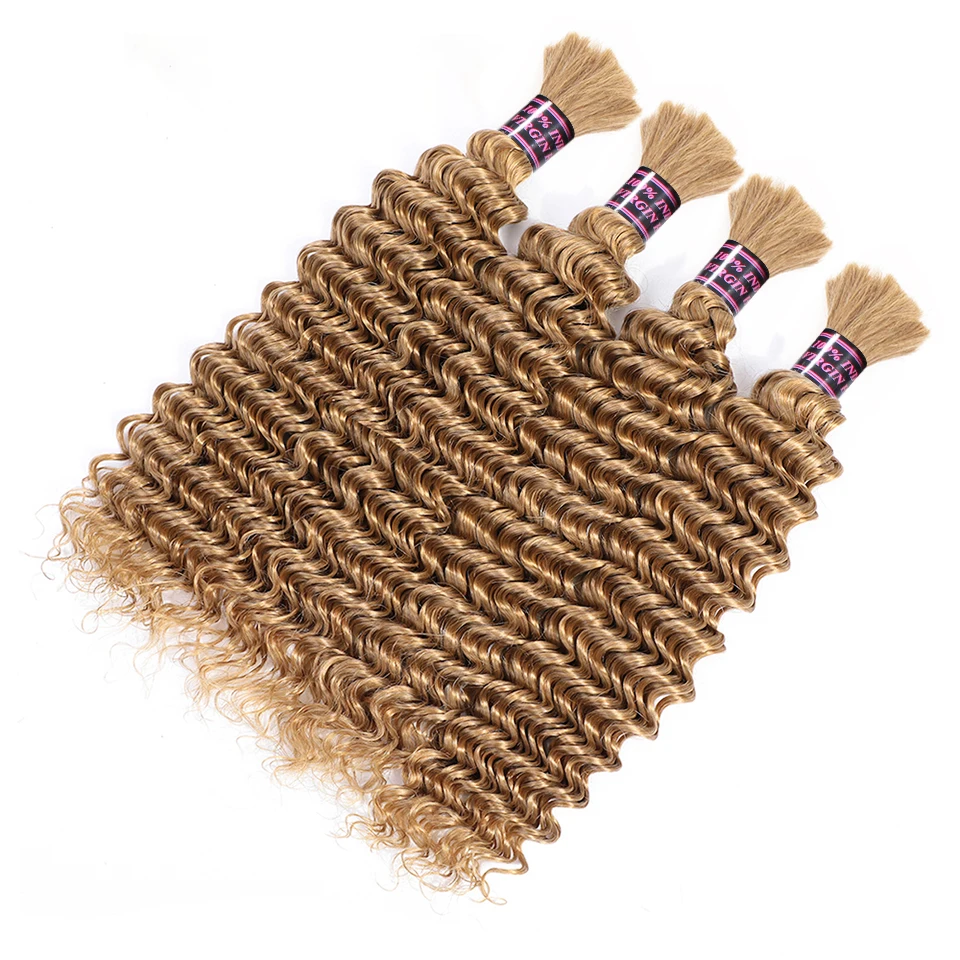 Color 27 Deep Wave Bulk Honey Brown Human Hair For Braiding 100% Unprocessed Remy Human Hair Extensions Brazilian Micro
