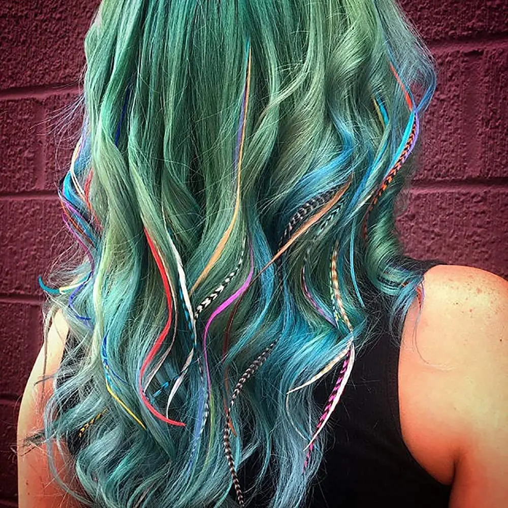 Colored Strands for Hair Feather Extension 10 Pieces I Tip Synthetic Hairpiece Fake Hair Zebra Line Feather Hair Extensions