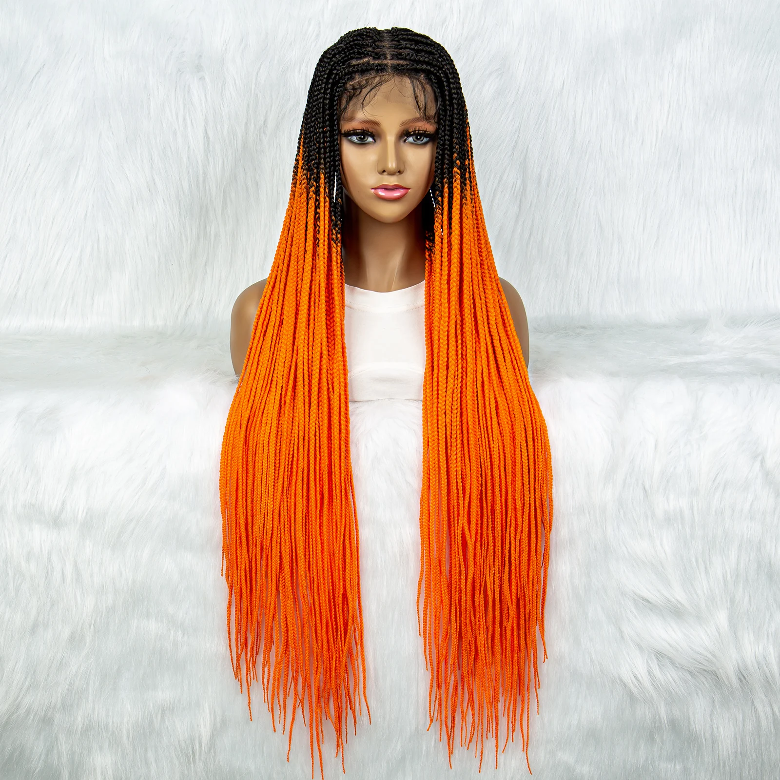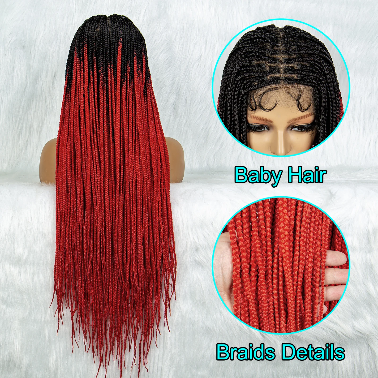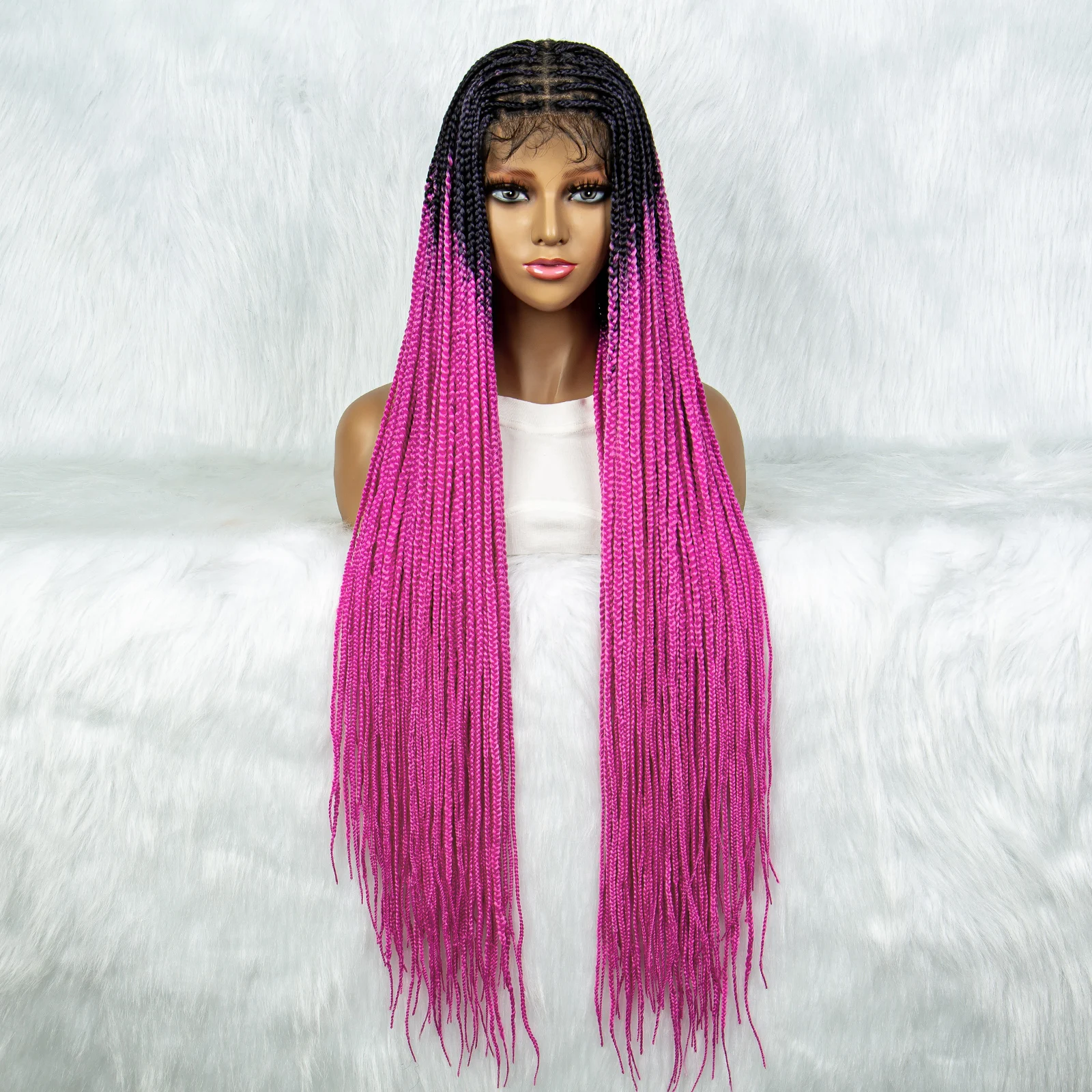 Colorful Synthetic Full Lace Wig Braided Wigs For Black Women 34 Inches Braiding Hair Knotless Box Cornrow Braids Wigs