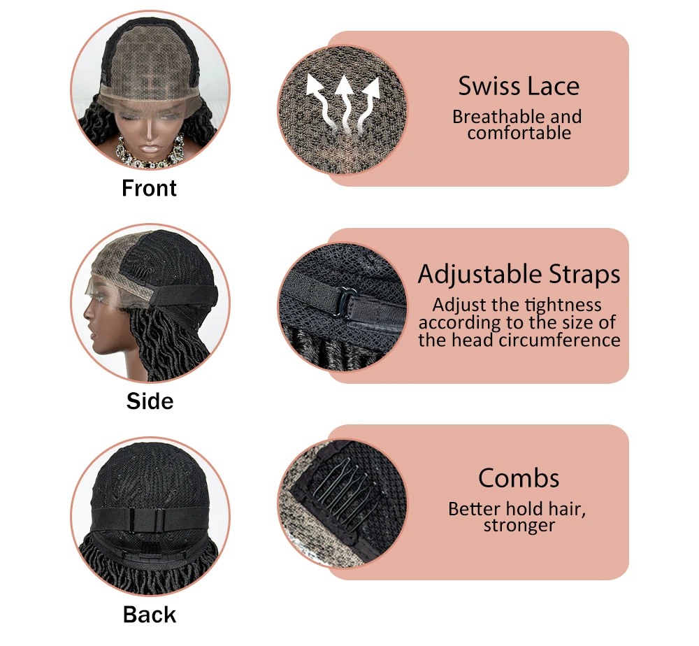 Colorful Synthetic Lace Front Braided Wigs with Baby Hair Dreadlocks Knotless Box Braigding Wigs with Water Wave Hair for Women