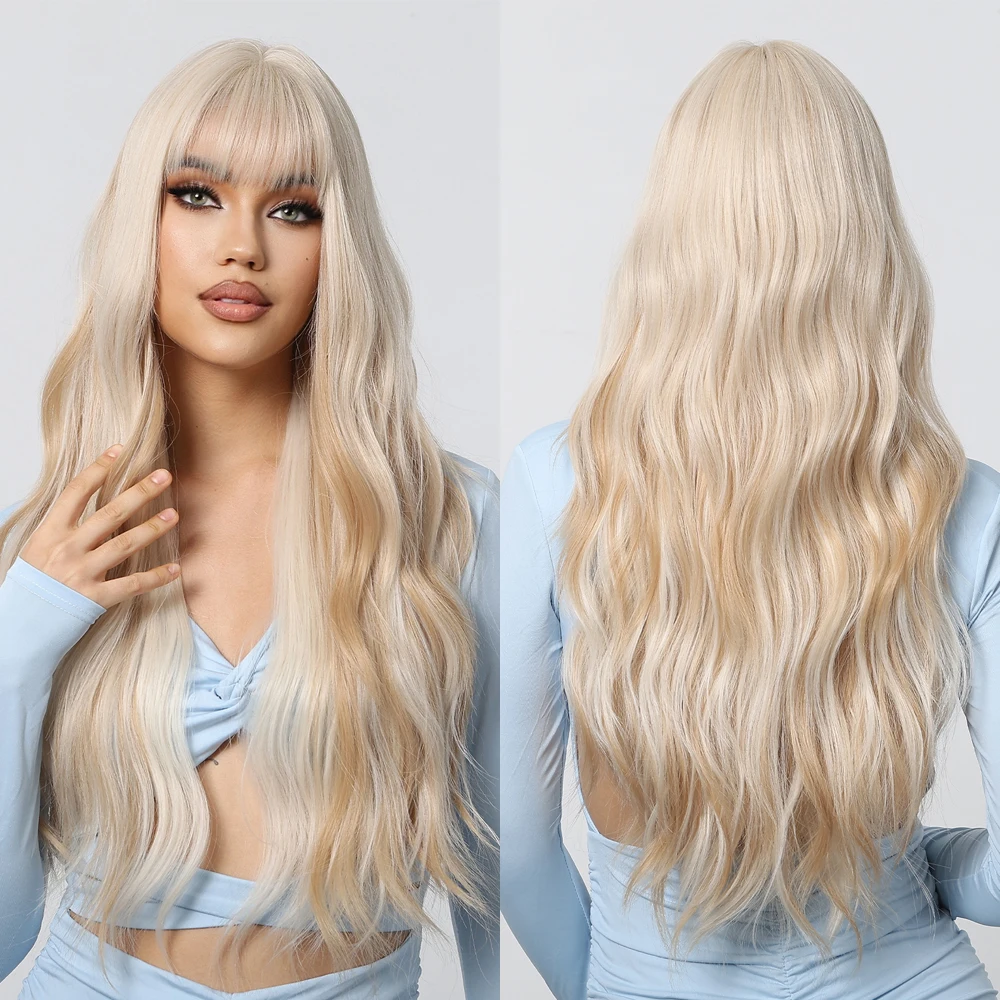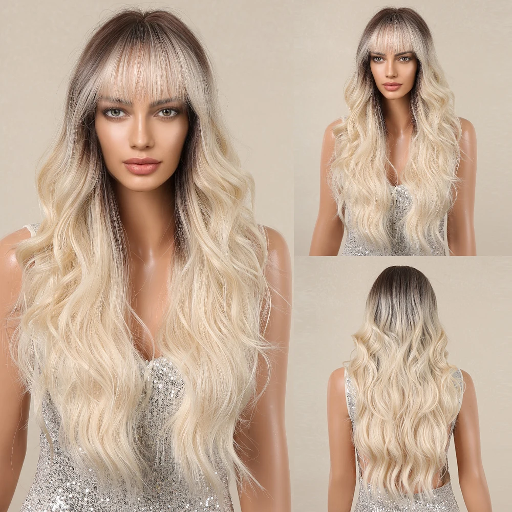 Copper Wigs Ginger Red Brown Long Fluffy Wavy Synthetic Wigs with Bangs Cosplay Hair Wig for Women Daily Natural Heat Resistant