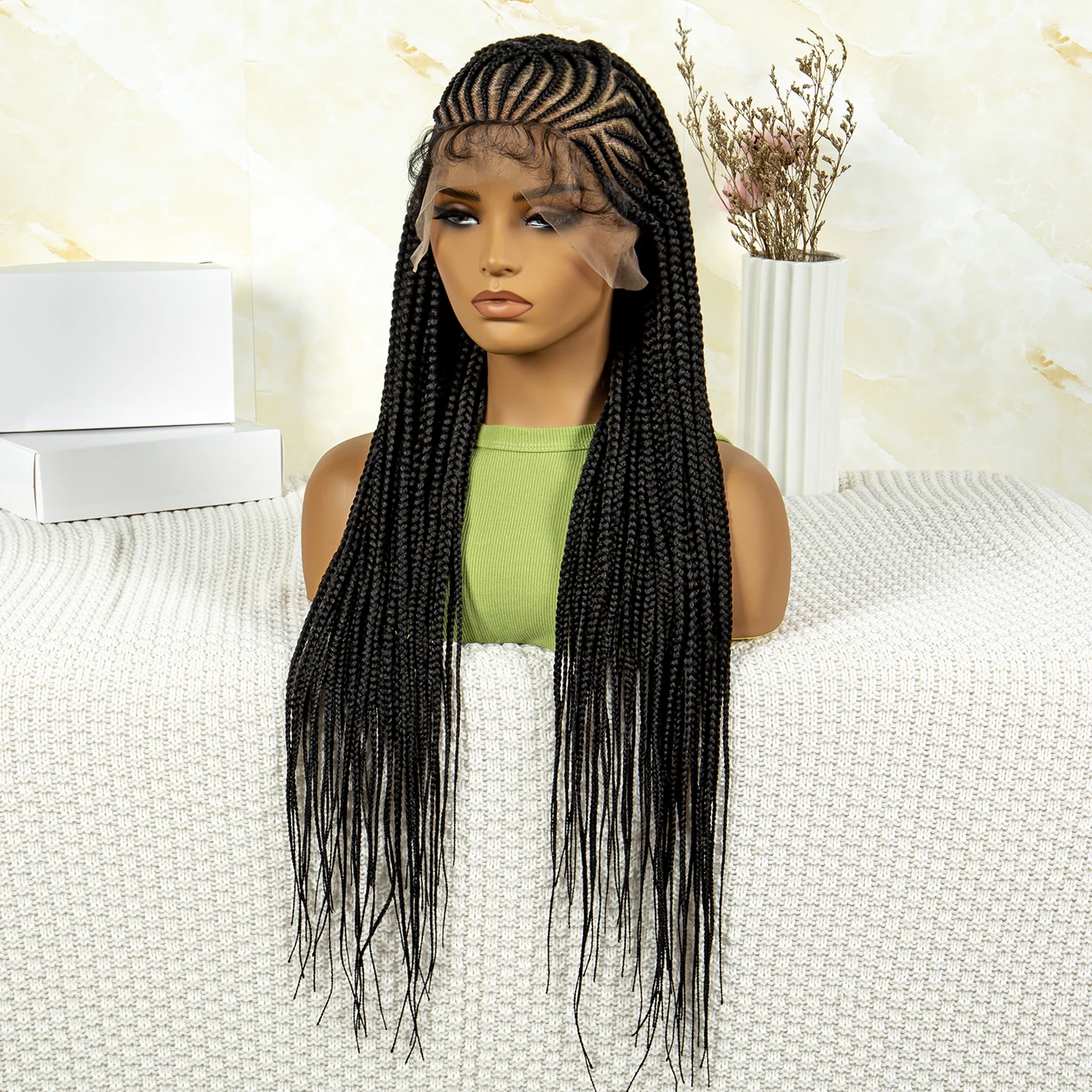 Cornrow Synthetic Braided Wigs Lace Front Braided Wigs Synthetic Braided Wigs for Black Women with Baby Hair HD Transparent Lace