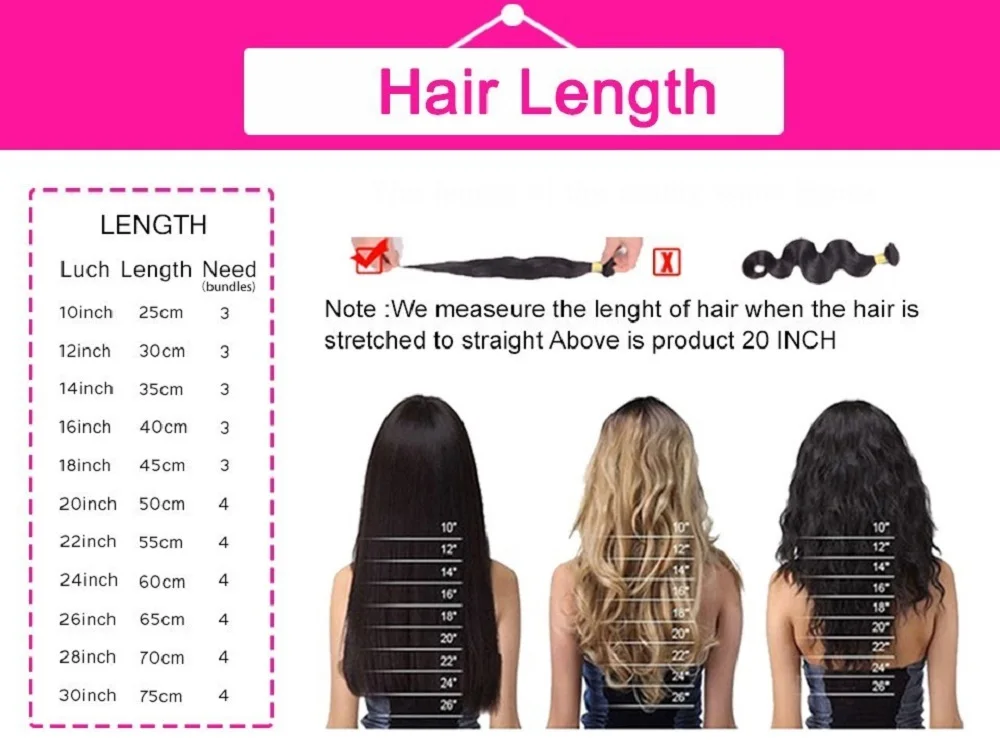 The hair length listed on website is stretched length. Curly and wavy hairs will be shorter on look than straight hair because they are made of straight hairs. When measuring the hair length, make sure you stretch the hair straight and measure it from the roots to the end.