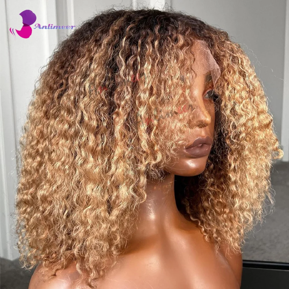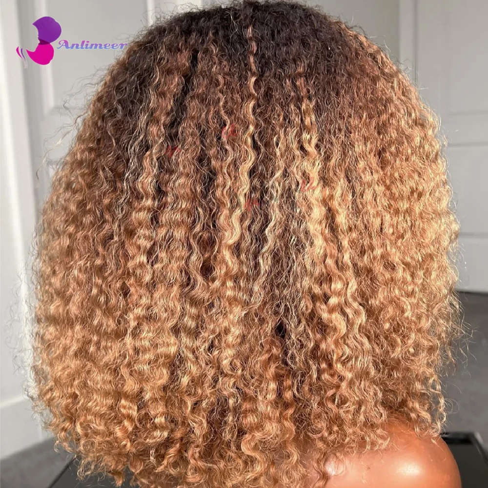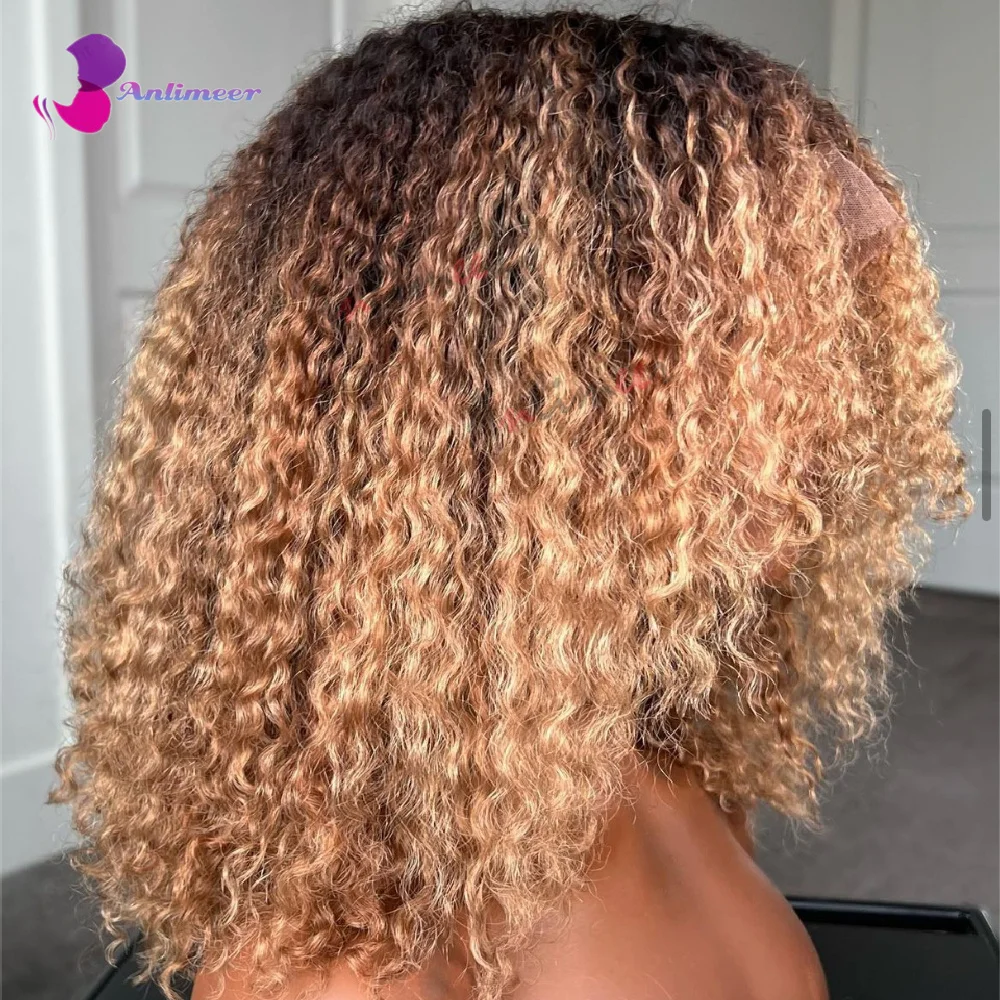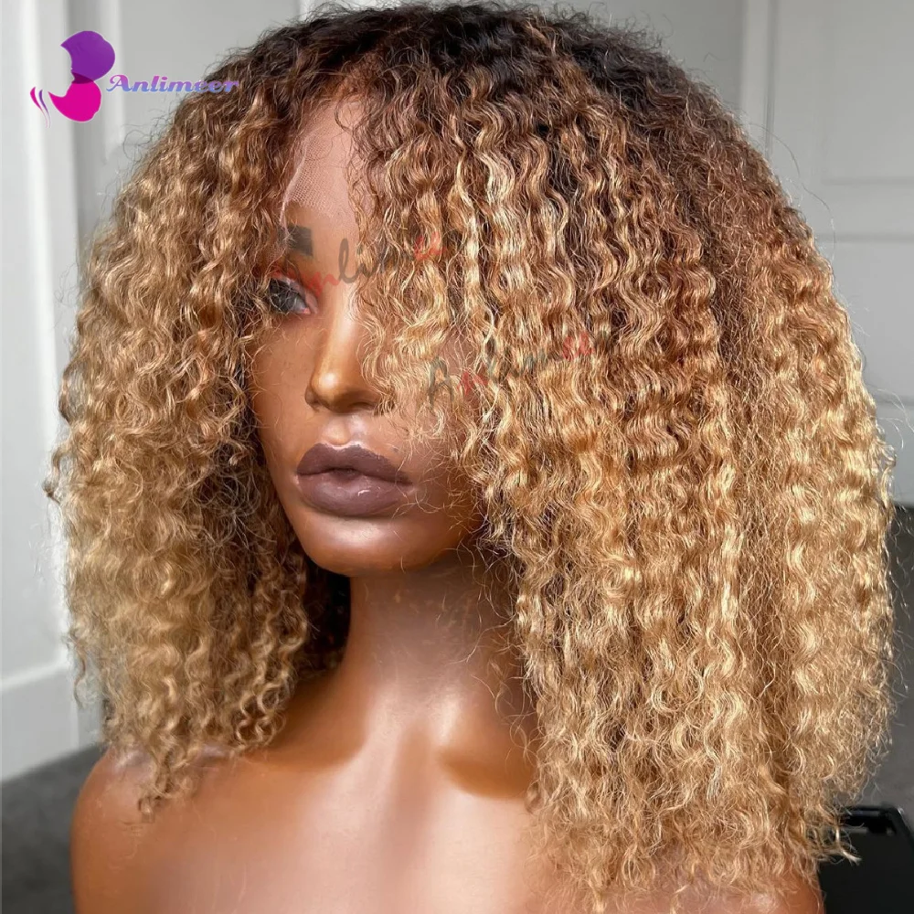 Curly Afro Wig Black Roots Honey Blonde Curly Wig For Black Women Human Hair Afro Kinky Curly Lace Front Wig Frontal Wig 360