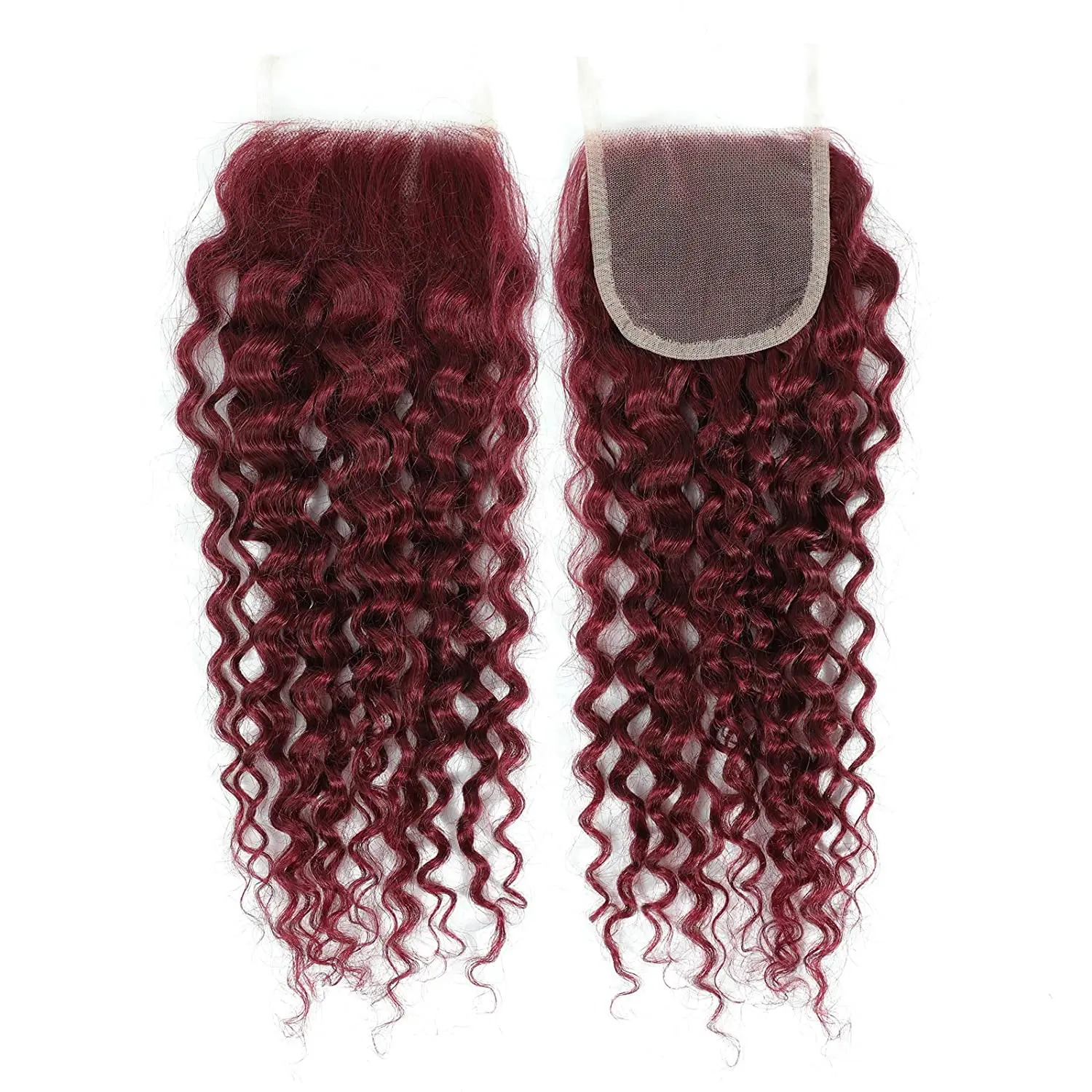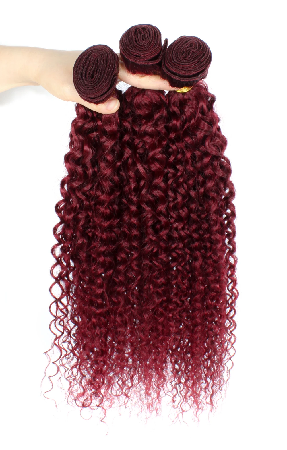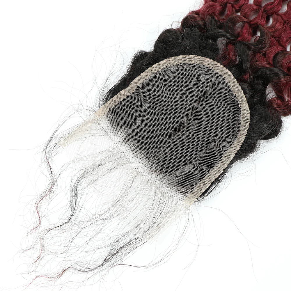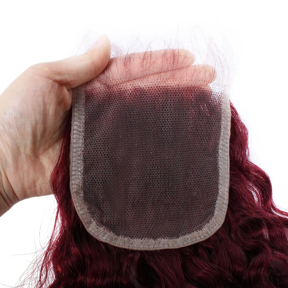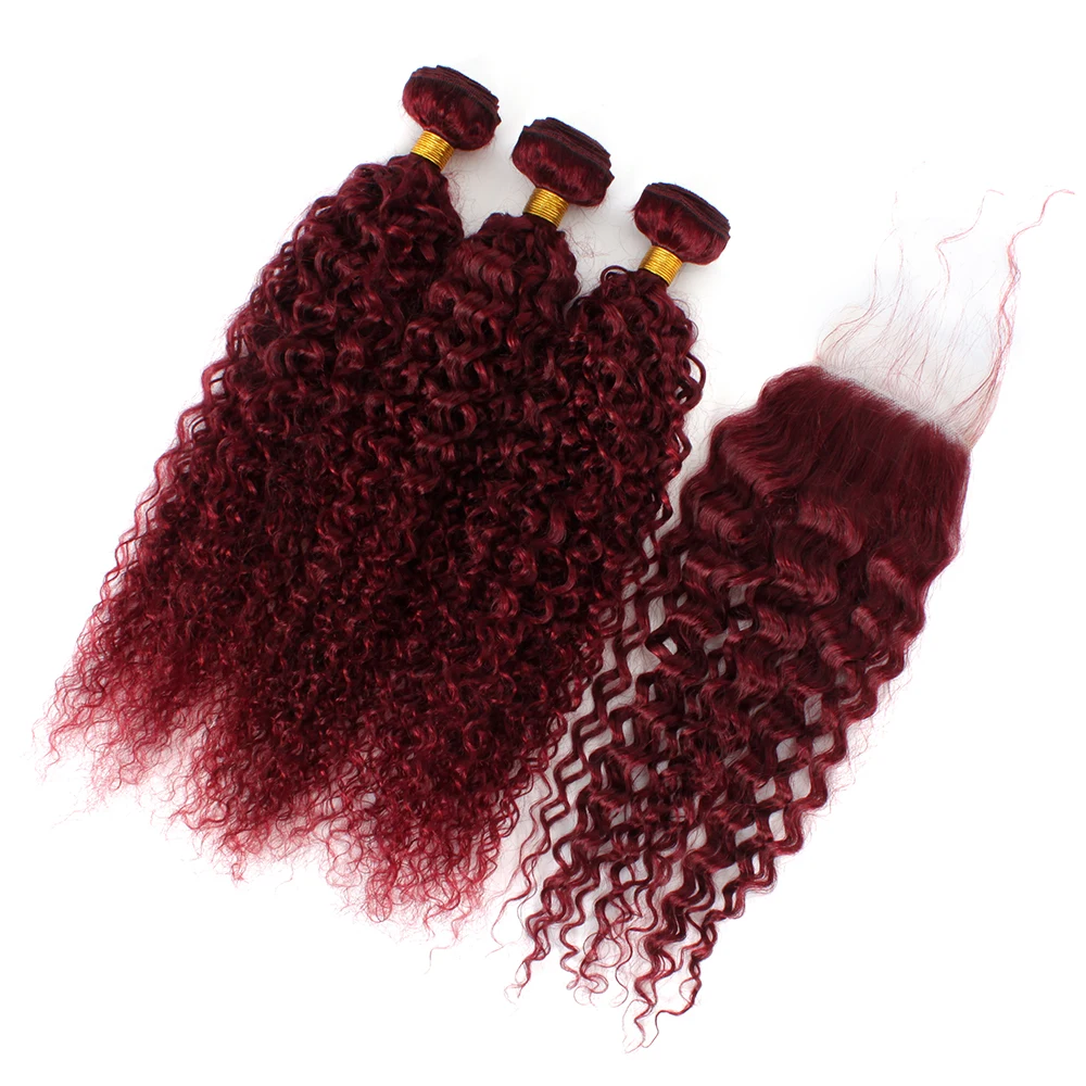 Curly Human Hair Weave Bundles With Closure 99j Red Hair Extensions For Women Girls Brazilian Burgundy 3/4 Bundles With Closure