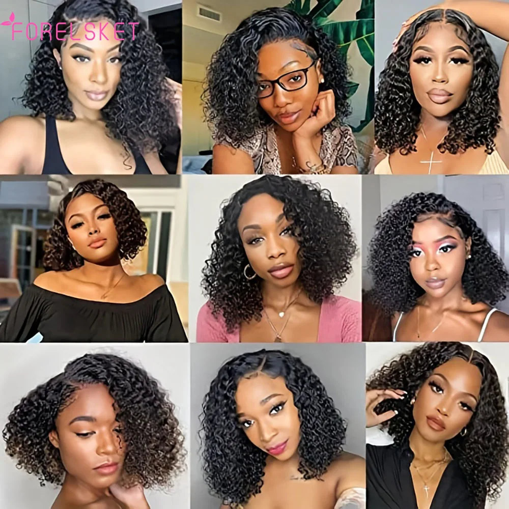 Deep Wave 180% Density Pre-Plucked Side Part Short Bob 13*5*1 Lace Frontal Brazilian Virgin Human Hair Wigs For Black Woman