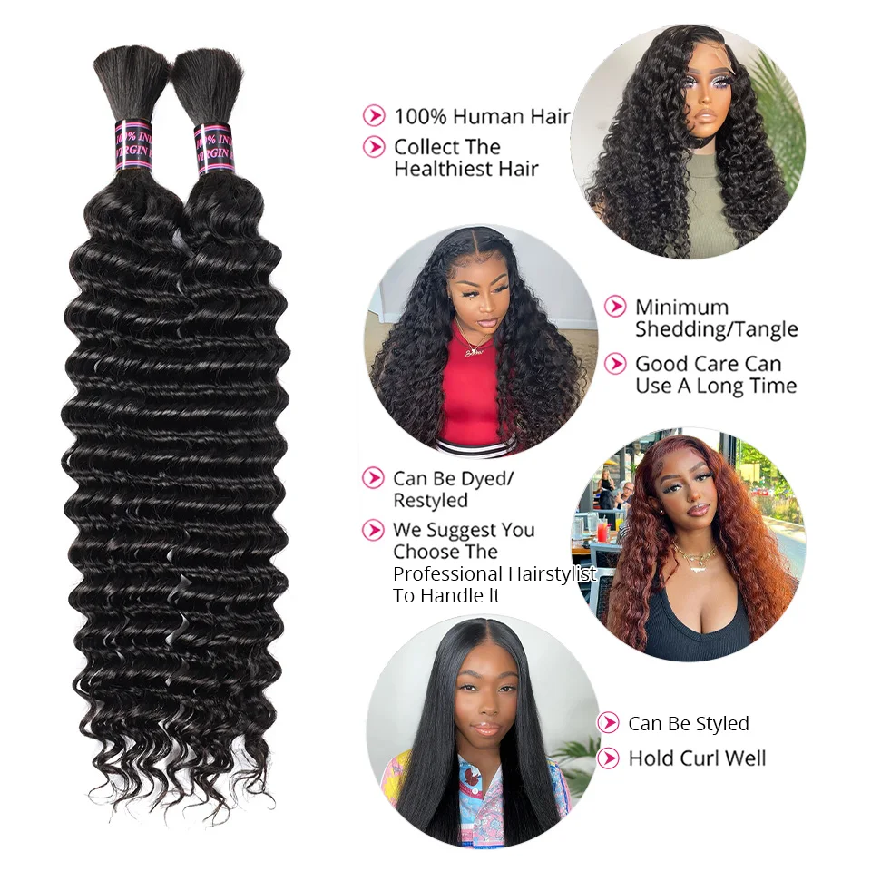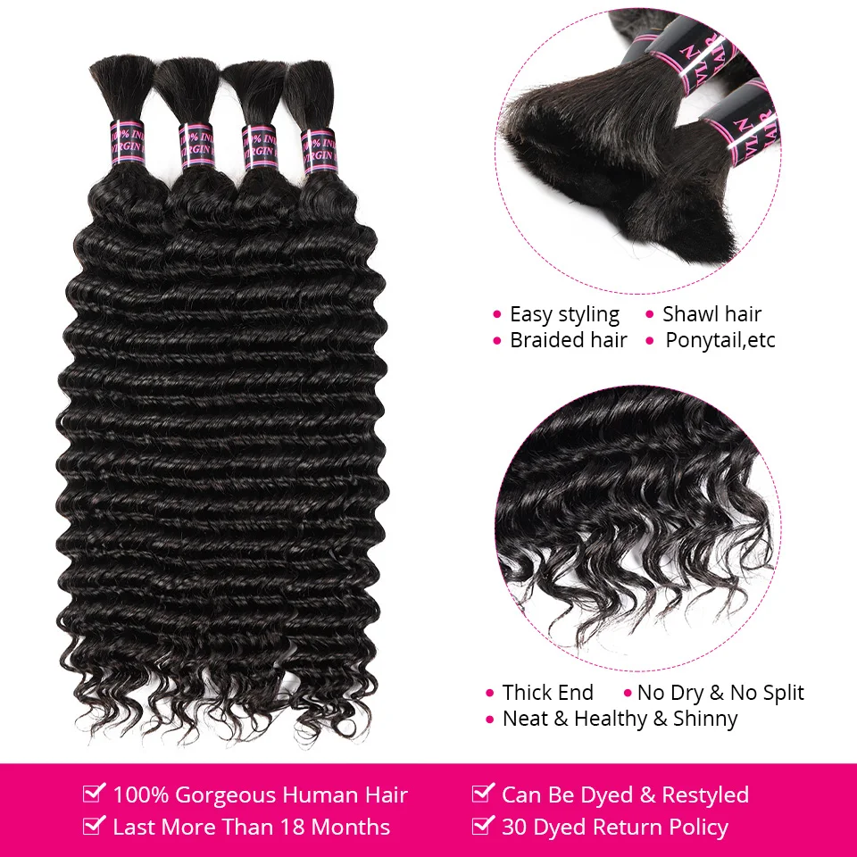 Deep Wave Bulk Human Hair For Braiding 100% Unprocessed Remy Human Hair Extensions Brazilian Micro Braiding Hair Human Bulk