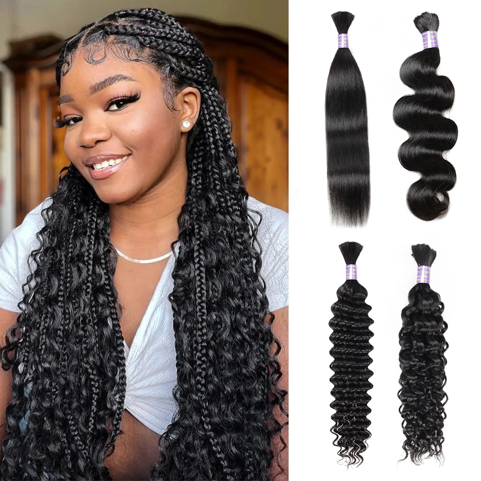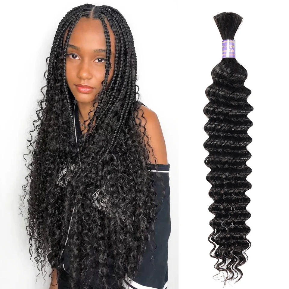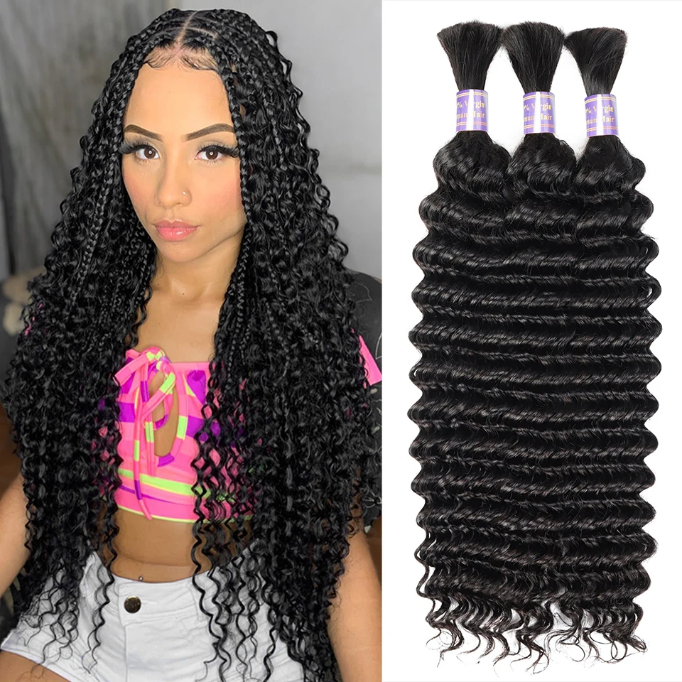 Deep Wave Bulk Human Hair For Braiding Body Wave 100% Unprocessed Bulk Extensions No Weft Water Curly Human Hair For Braiding