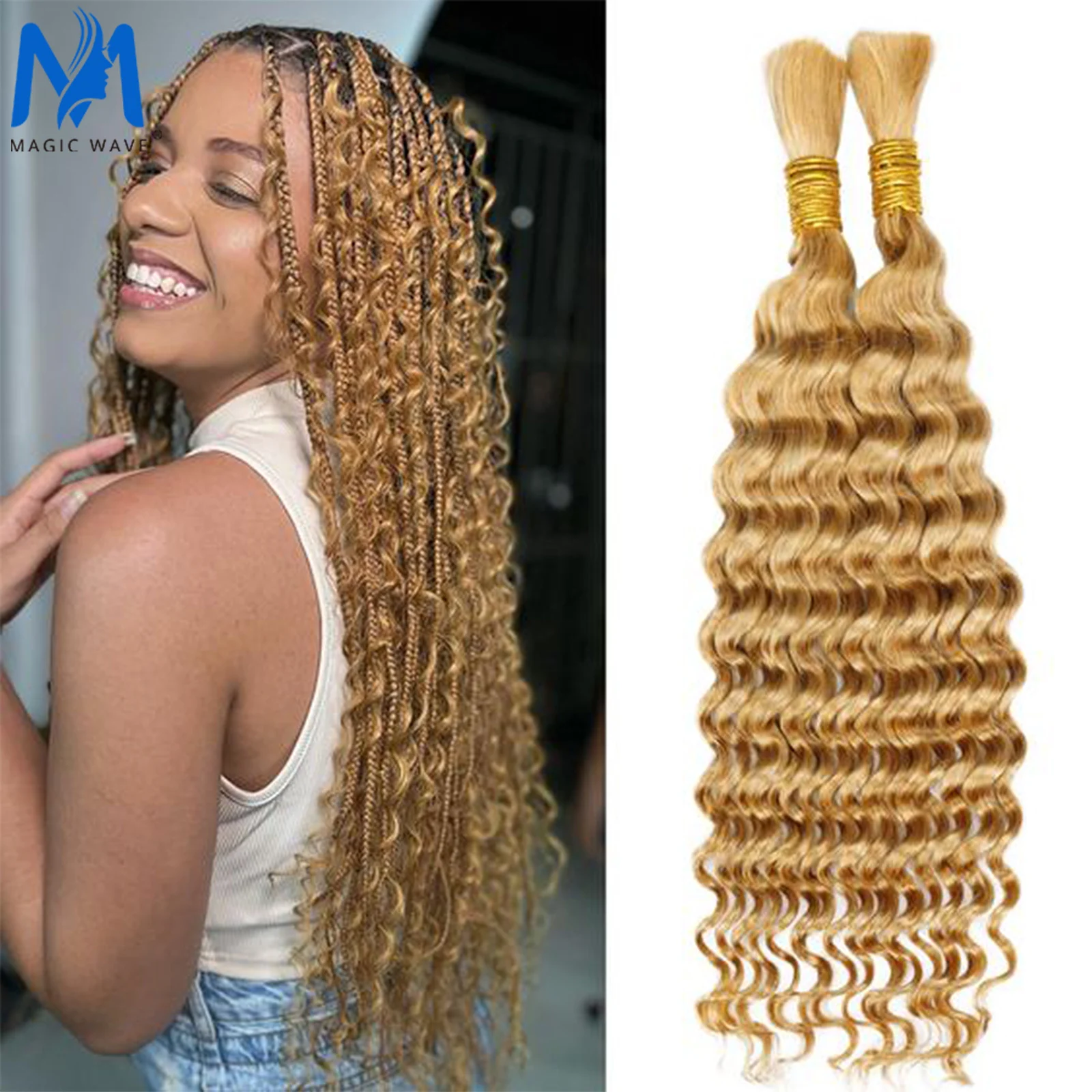 Deep Wave Human Hair Bulk for Braiding Highlight Honey Blonde Curly Brazilian Human Hair Bulk No Weft Extension Crochet Braids